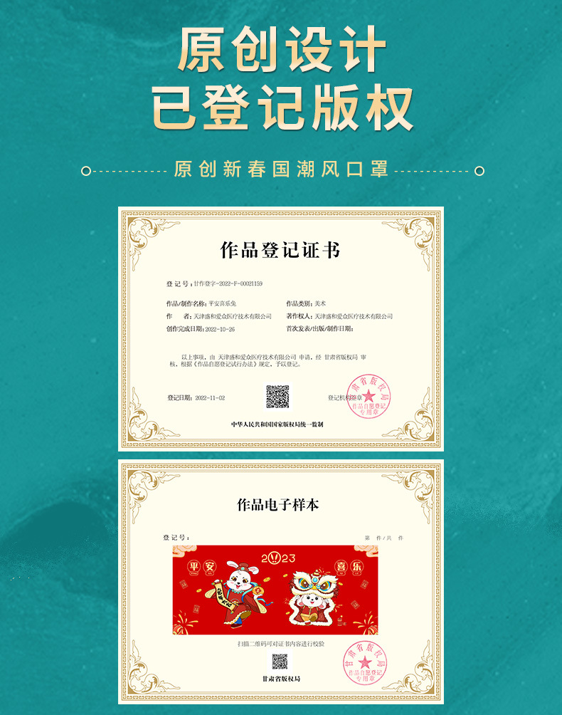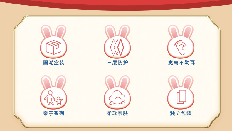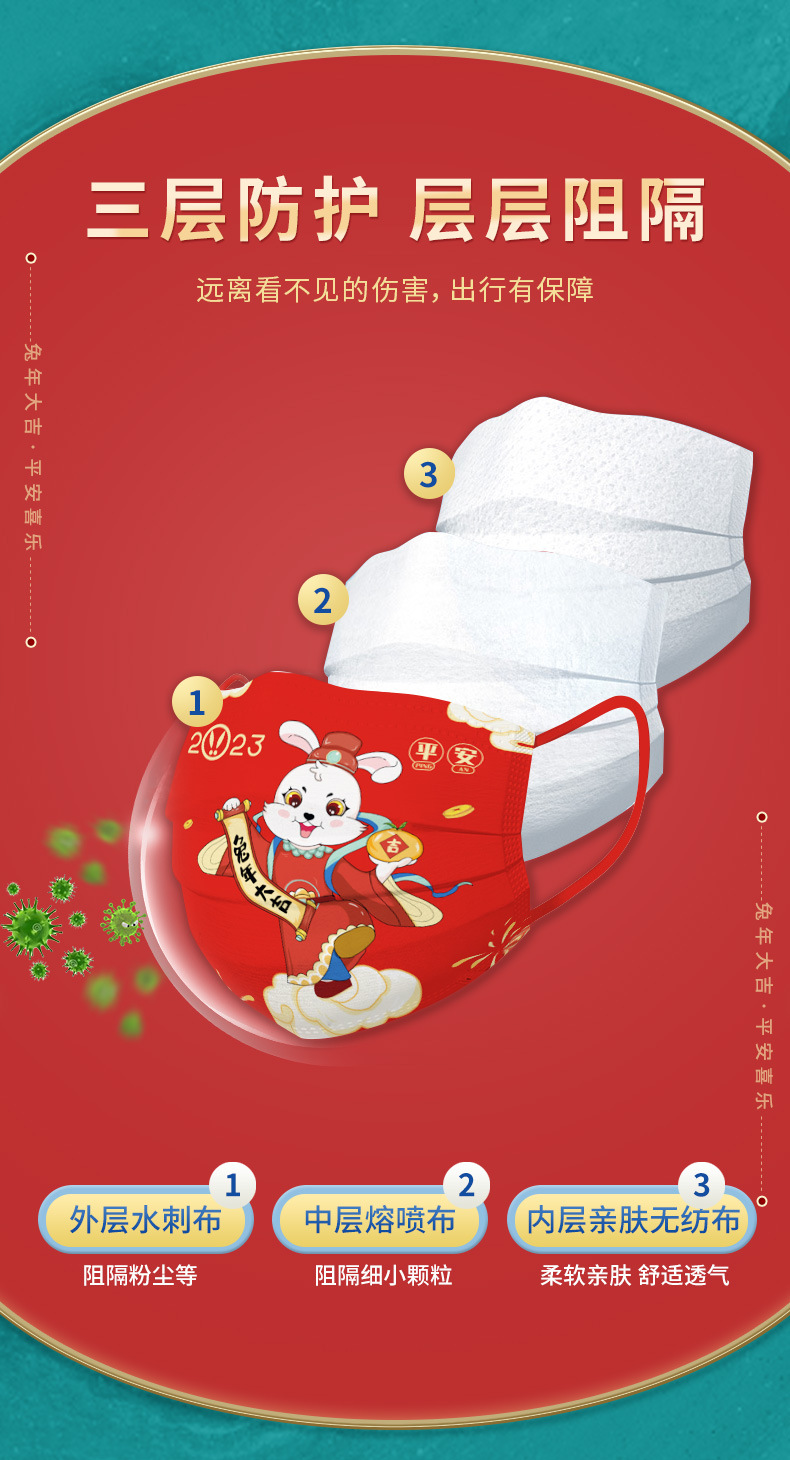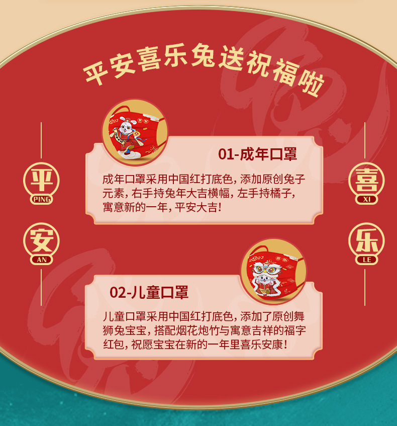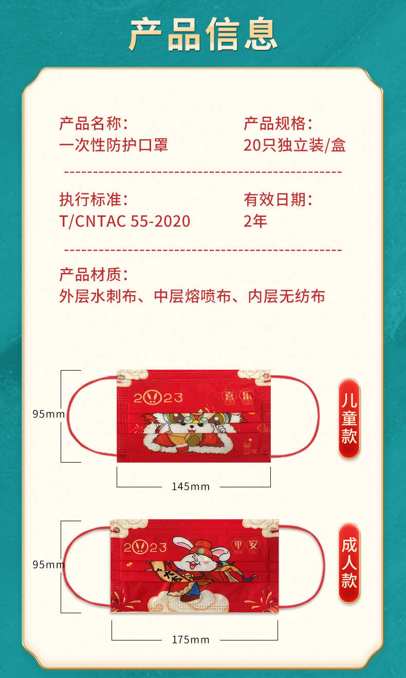 【独立包装 ,大容量价】兔年国潮印花160个大容量三层防护舒适透气卡通图案成人儿童新年口罩