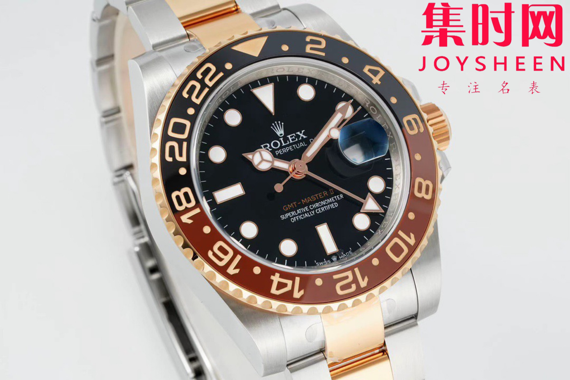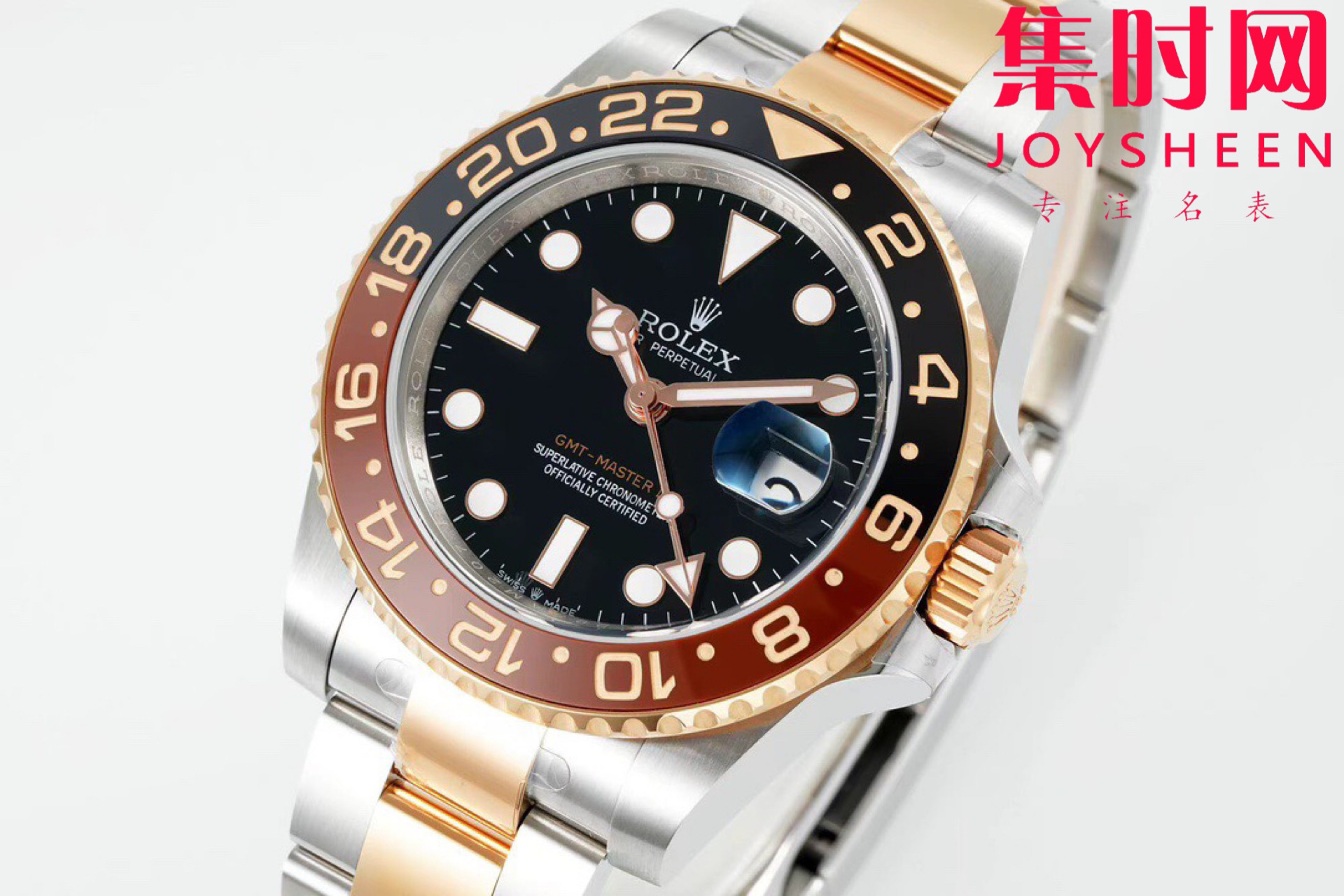 劳力士EWE格林尼治型系列“沙士圈”间玫金格林尼治GMT 3285机 三珠带 板带 男士腕表
