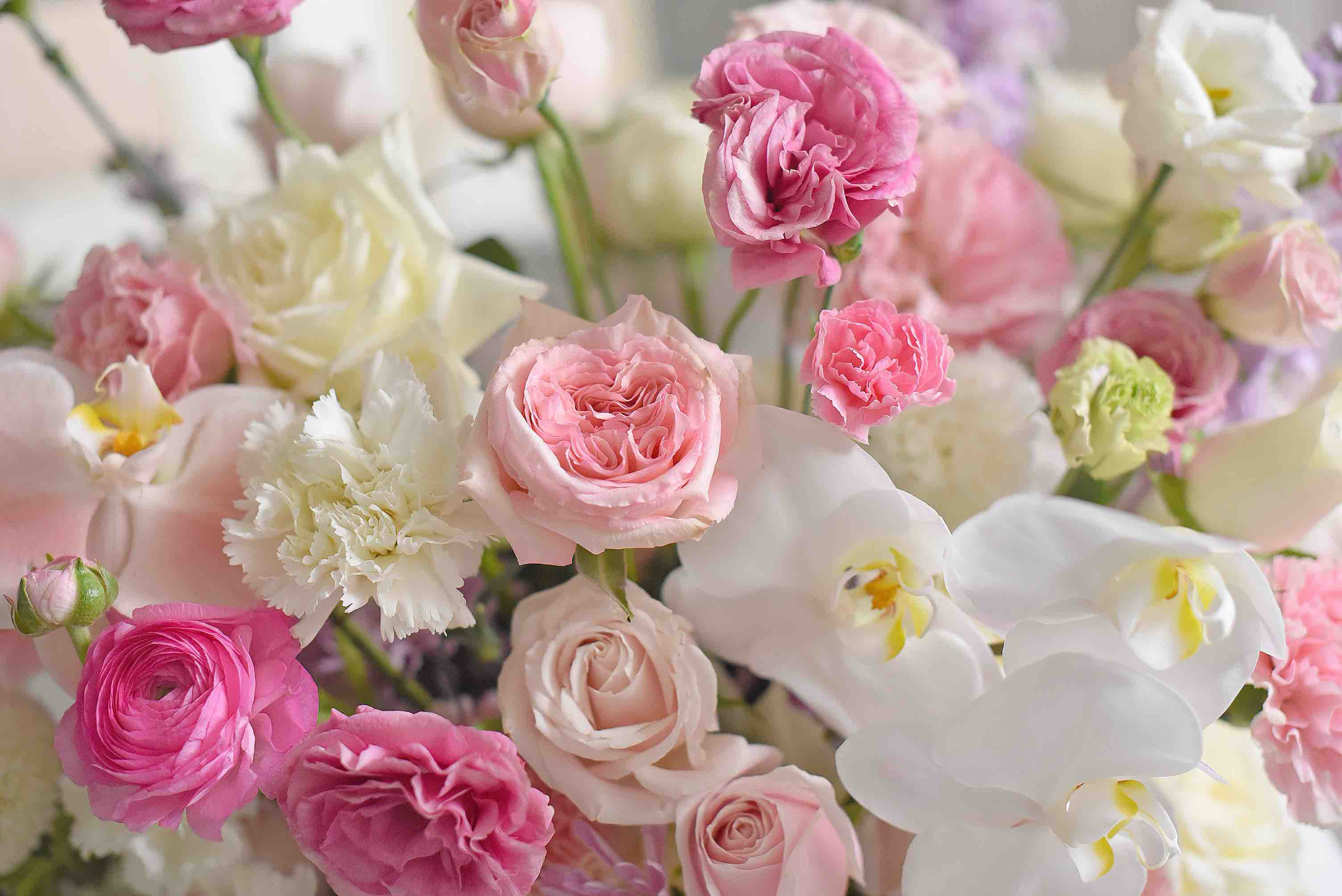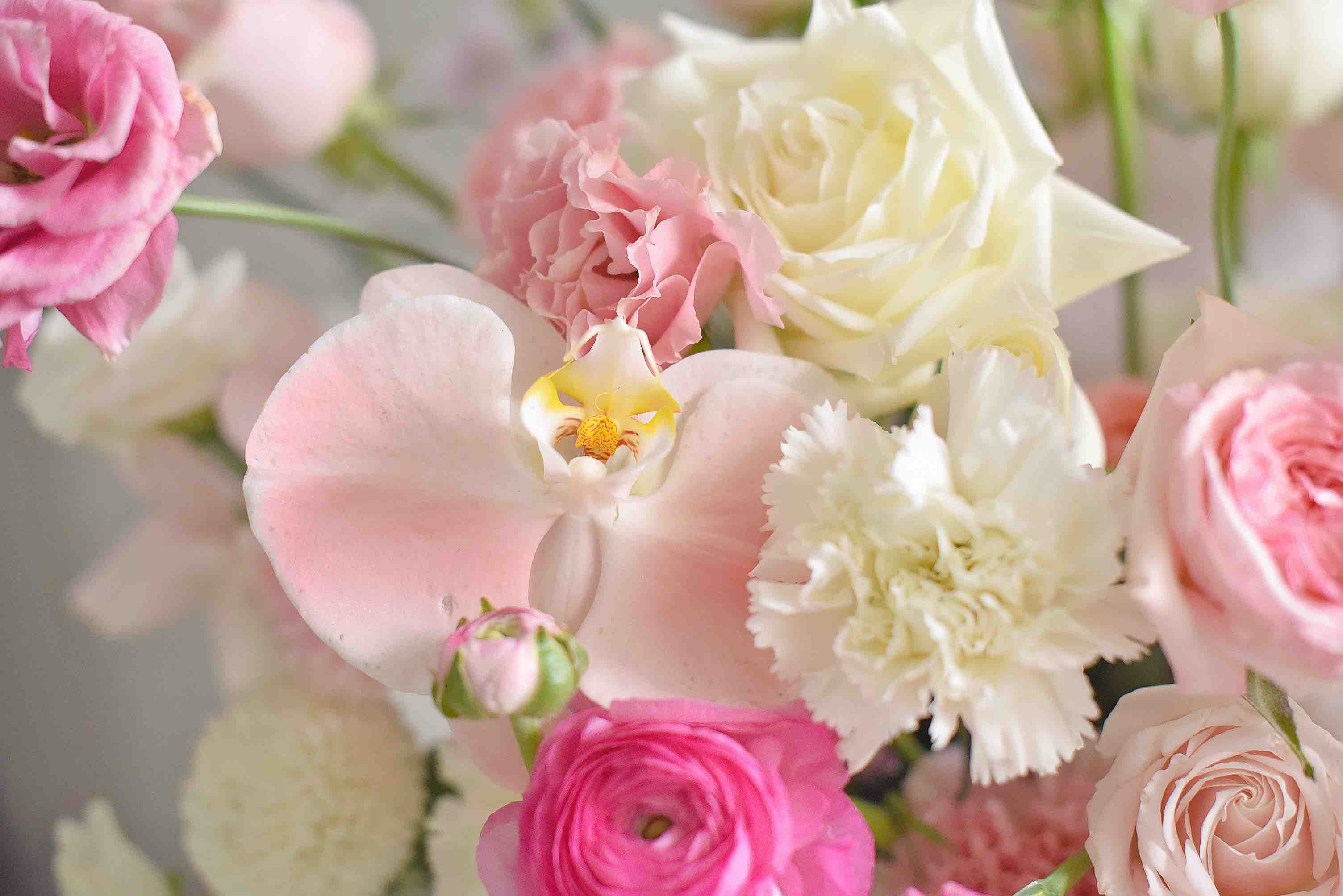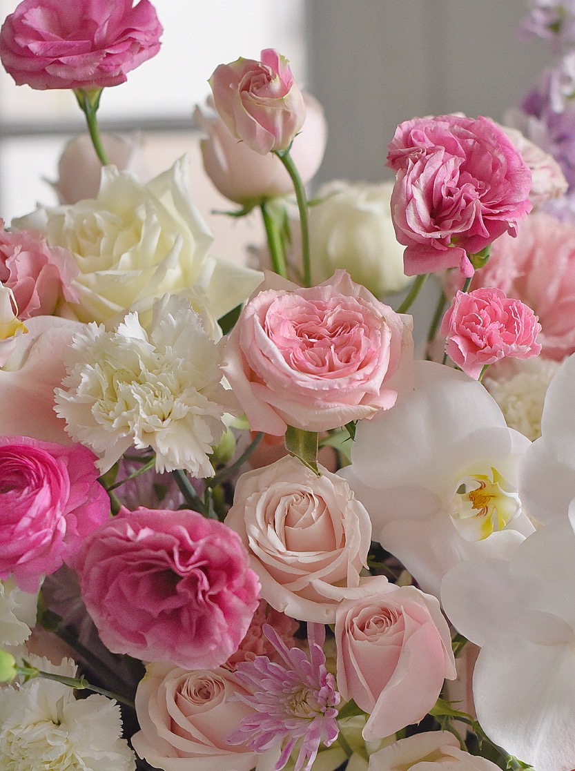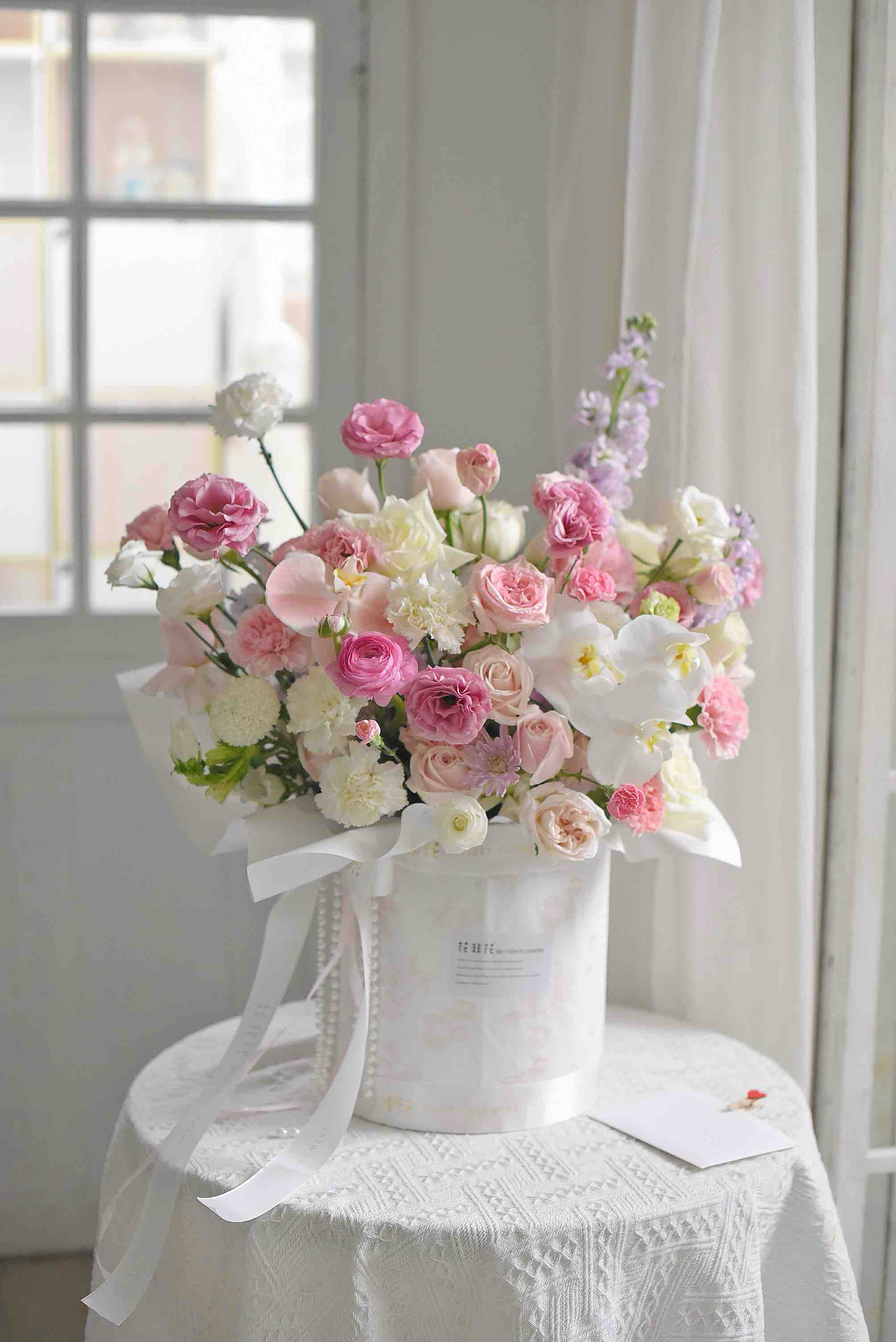 《春之梦境》蝴蝶兰粉雪山玫瑰粉白色系大号抱抱桶