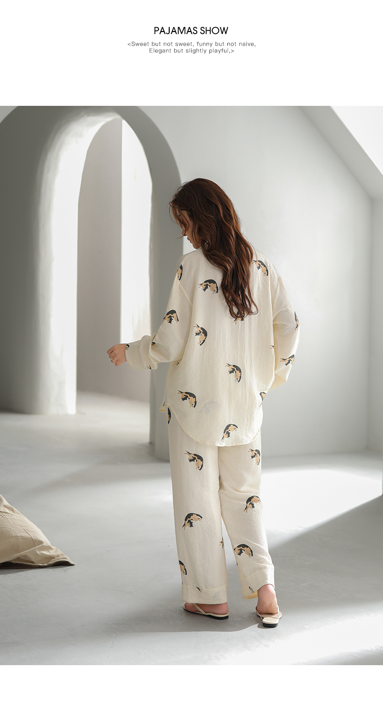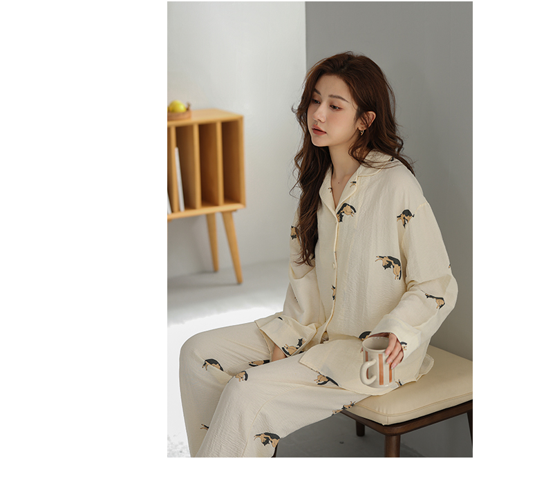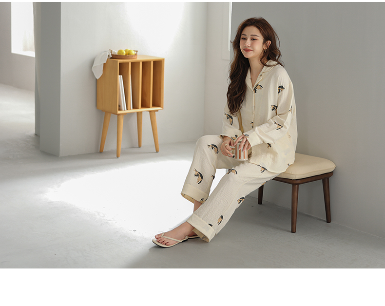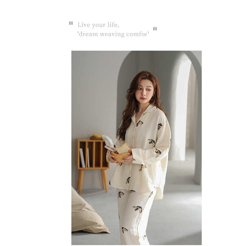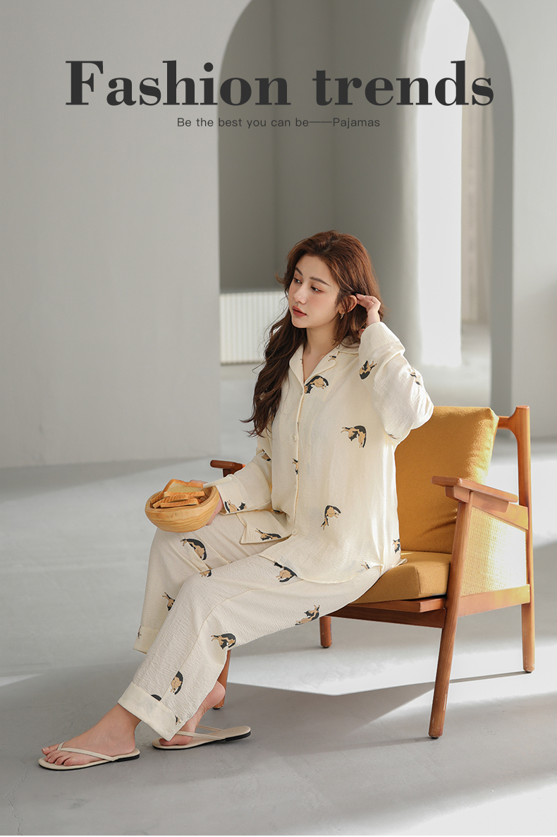可人儿小众设计师新款奥力绵女士睡衣春秋长袖时尚可外出家居服