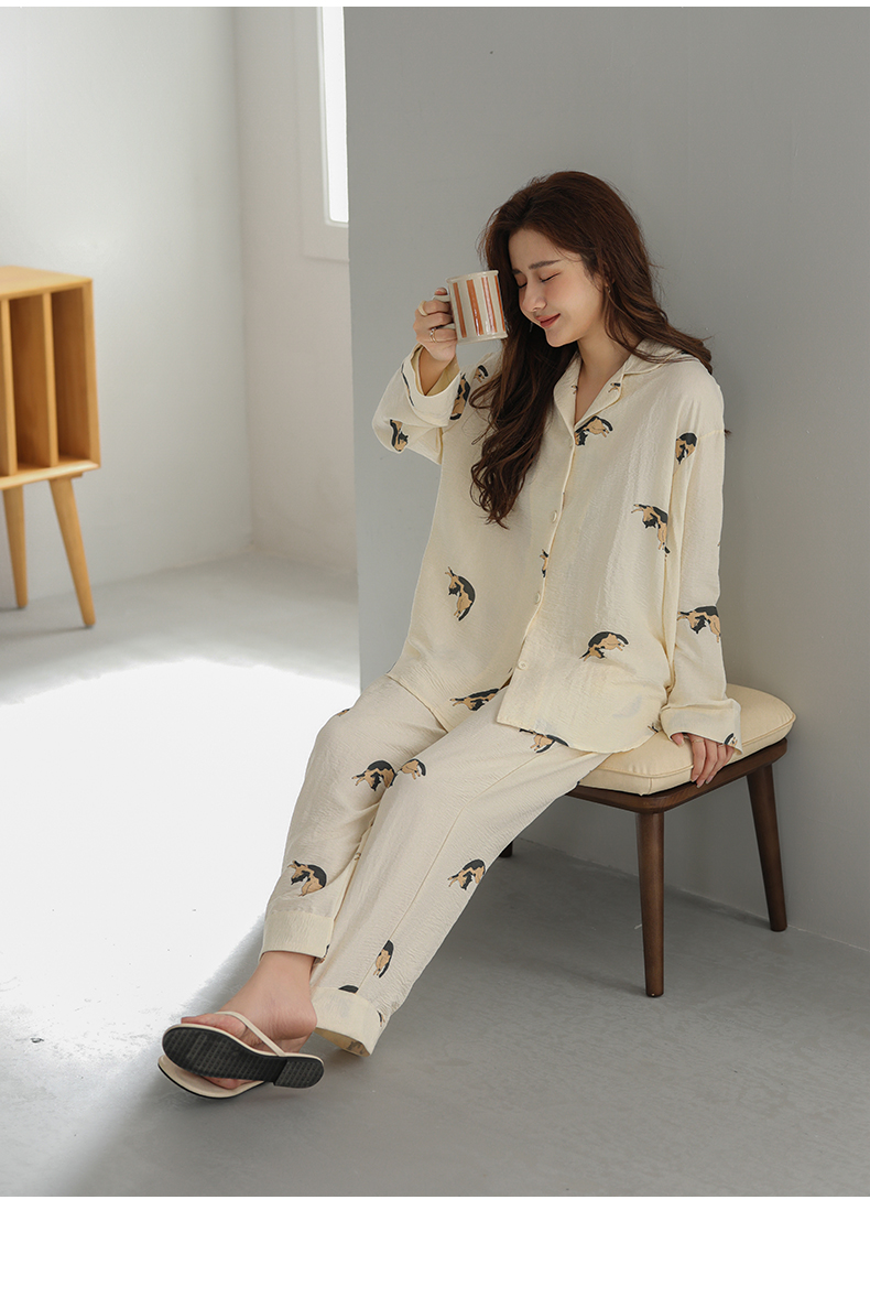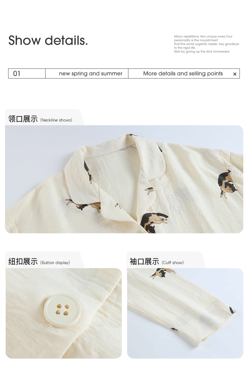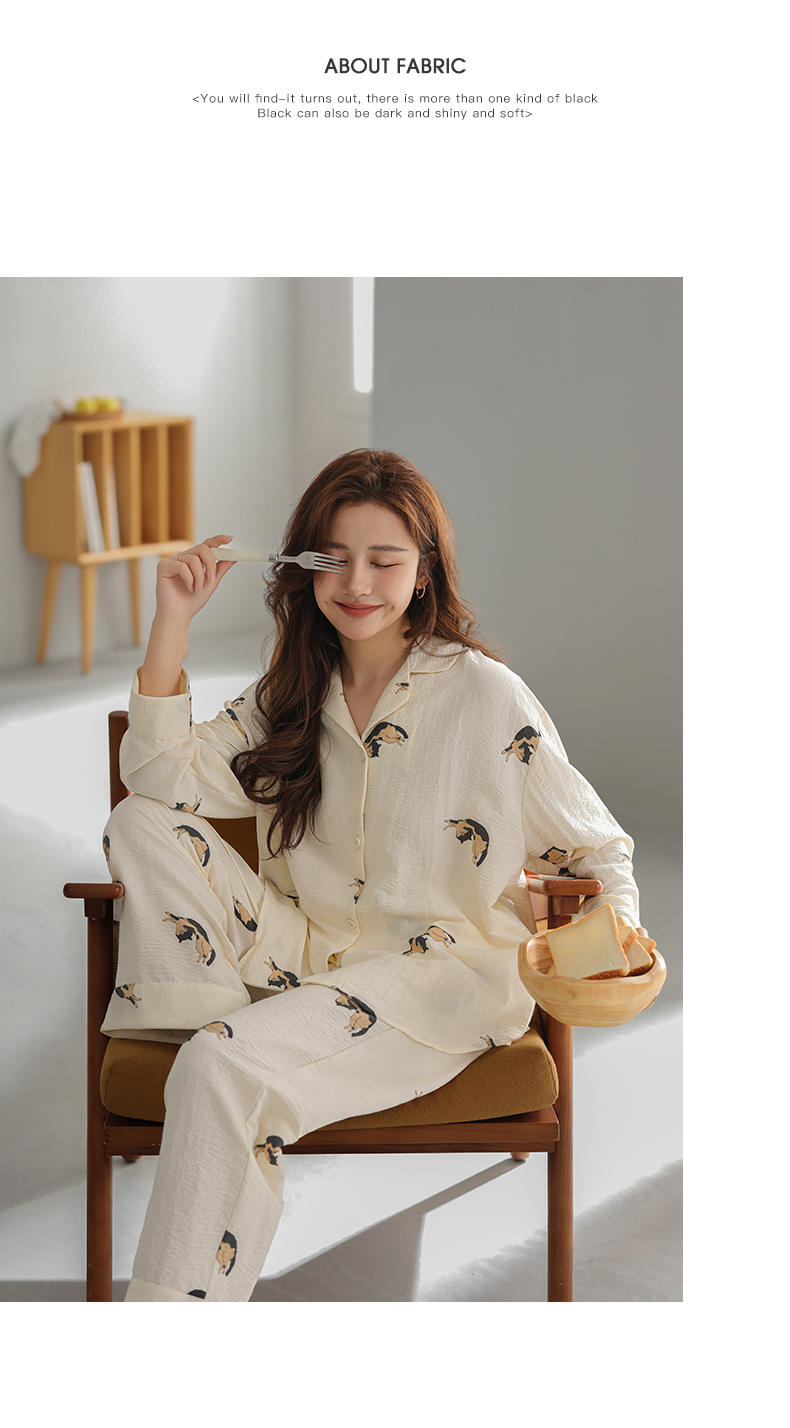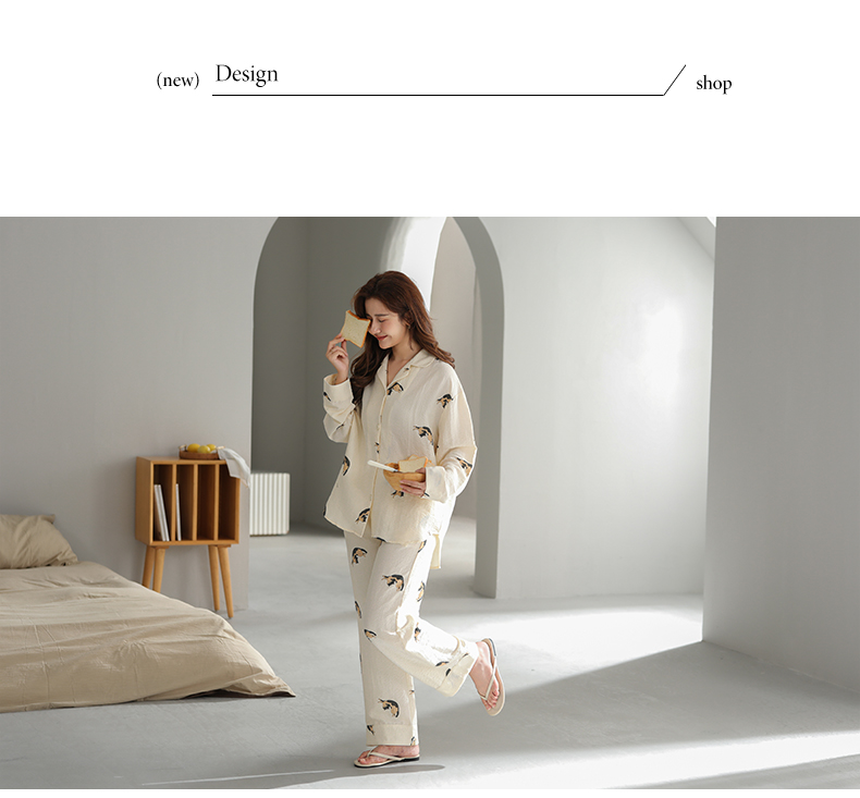 可人儿小众设计师新款奥力绵女士睡衣春秋长袖时尚可外出家居服