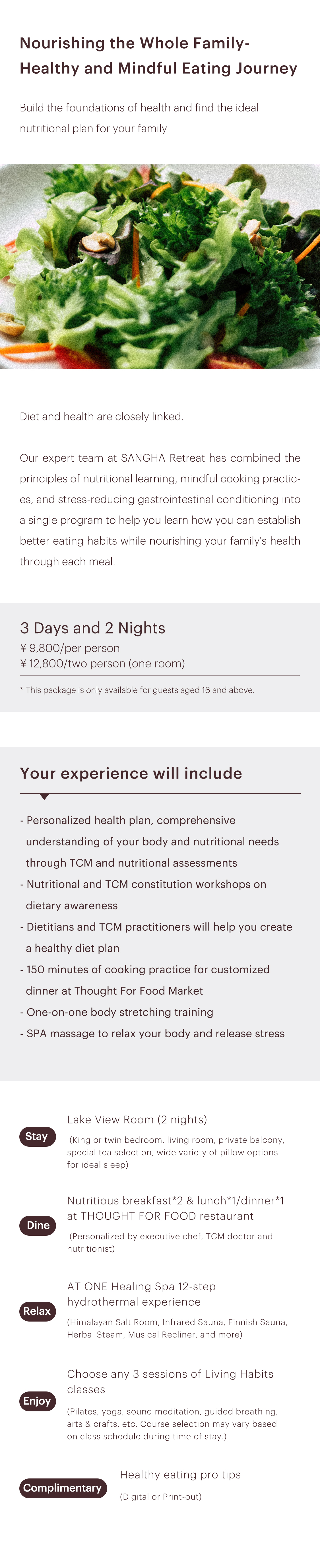 - AT ONE Retreat welcomes guests aged 16 and above; while THE VILLAGE is open to guests of all ages.