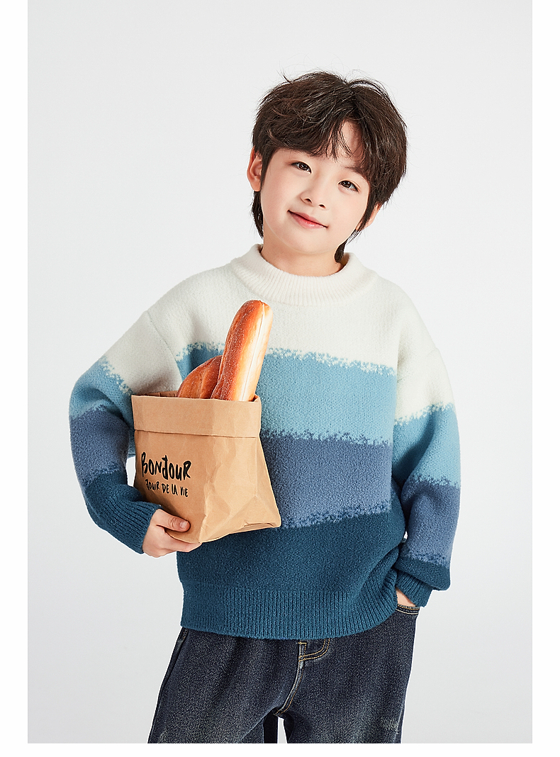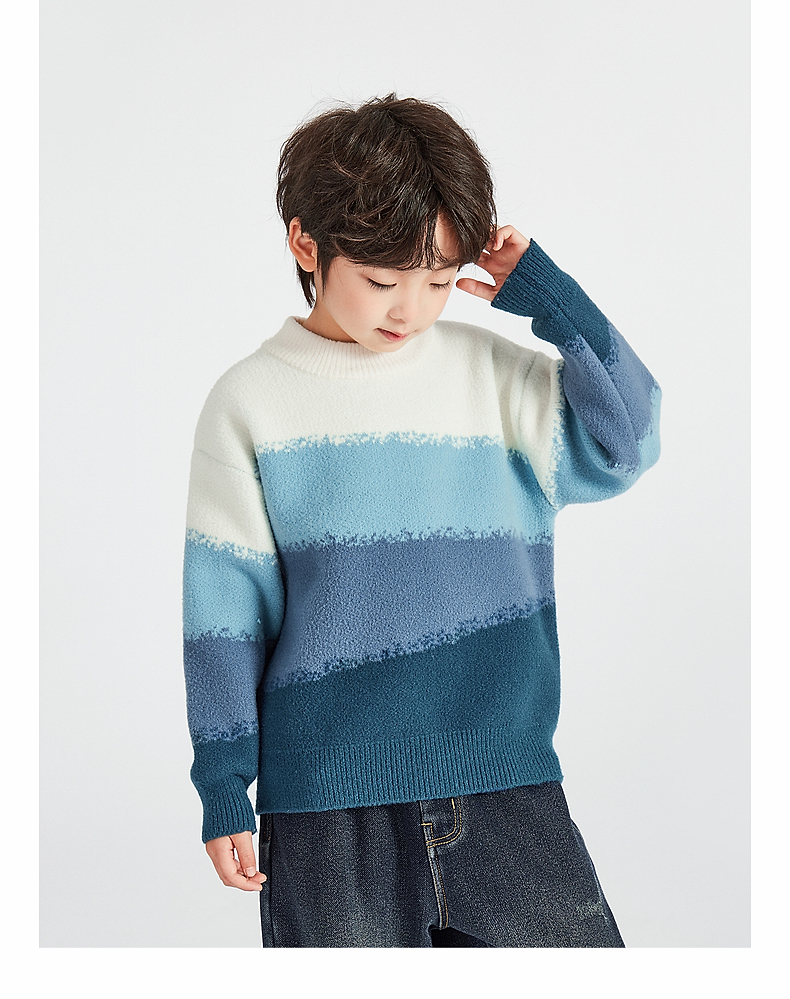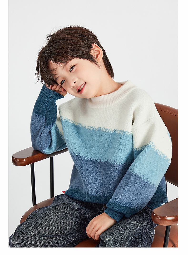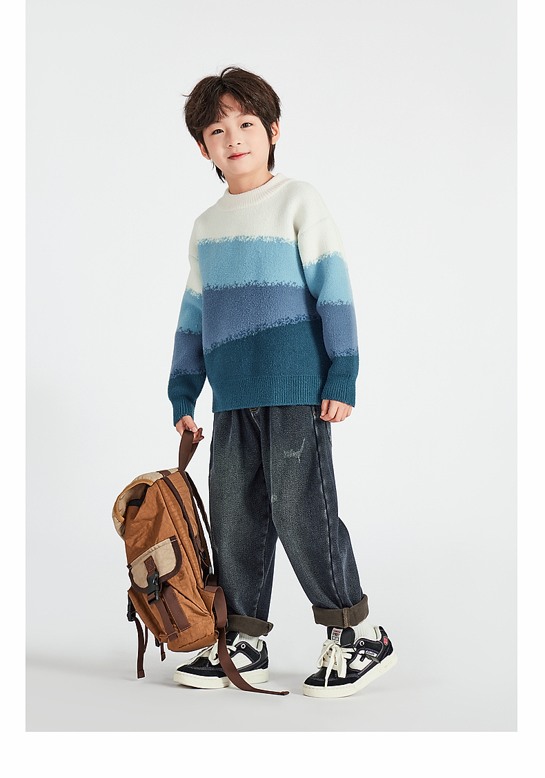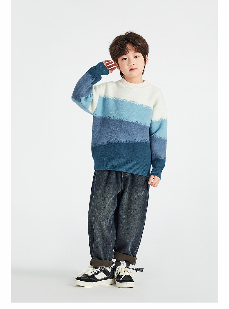 【团购价76.9】多多家男童毛衣儿童针织衫秋冬季2024新款中大童渐变保暖上衣冬装9761