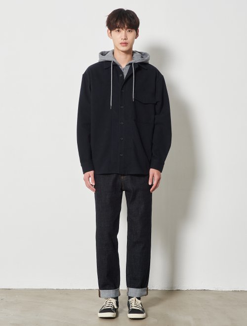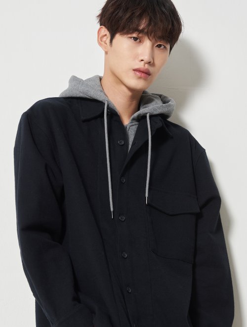 8 seconds 男款黑色连帽针织分层格纹衬衫JPY带授权招加盟代理