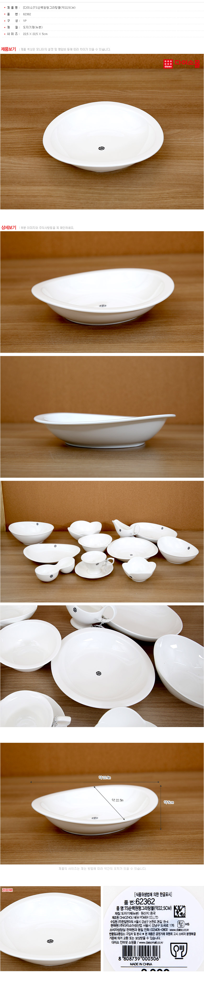 大创餐碗 Daiso bowl TS纯白色圆形陶瓷碗(约22.5CM)-62362JPY带授权招加盟代理