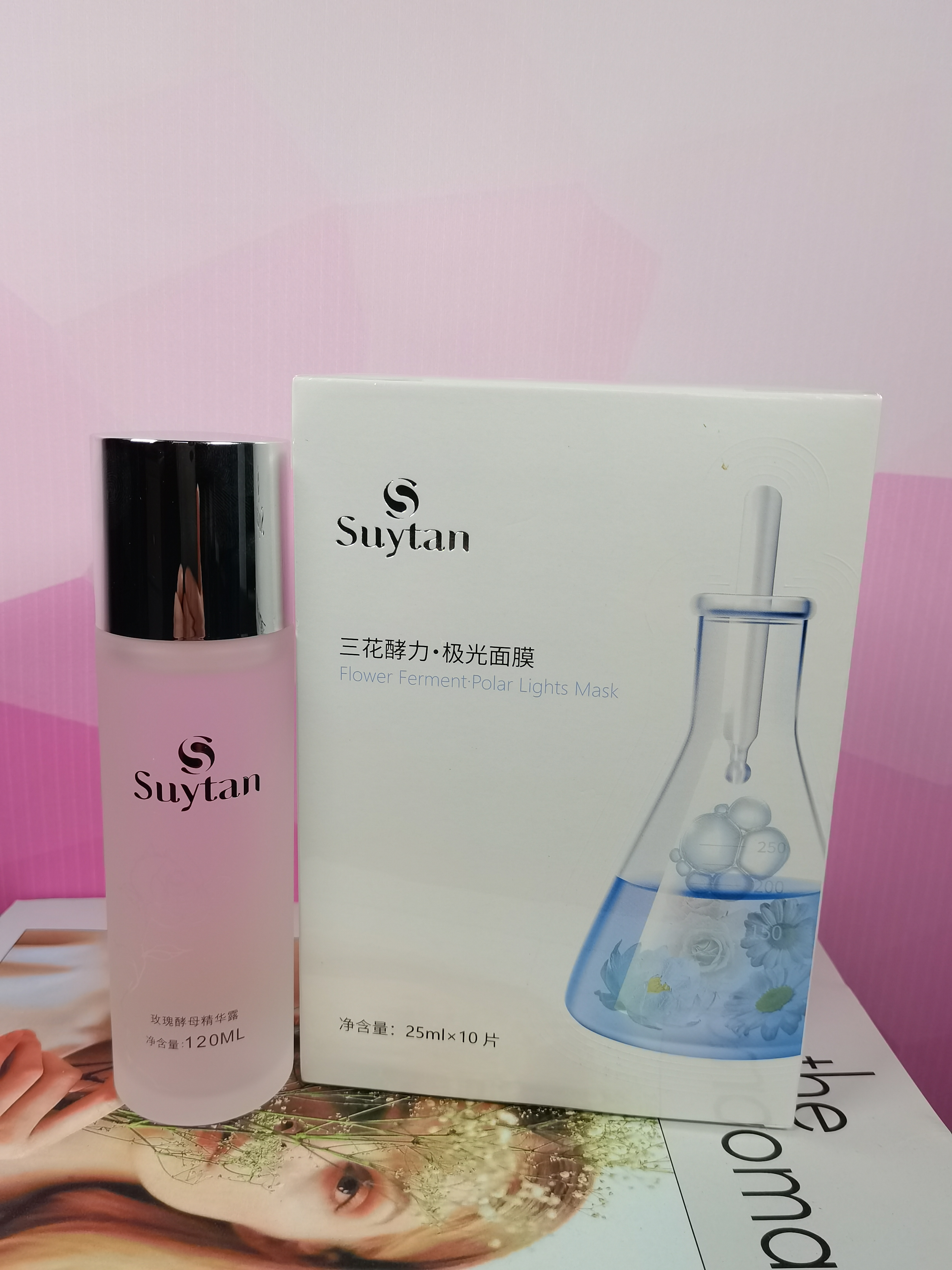 秀媛堂玫瑰酵母精华露+三花酵力极光面膜贴 120ml+10片 深层补水、精华滋润