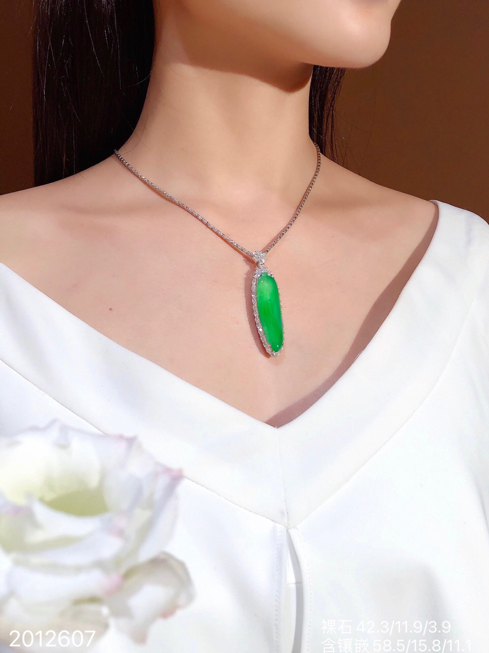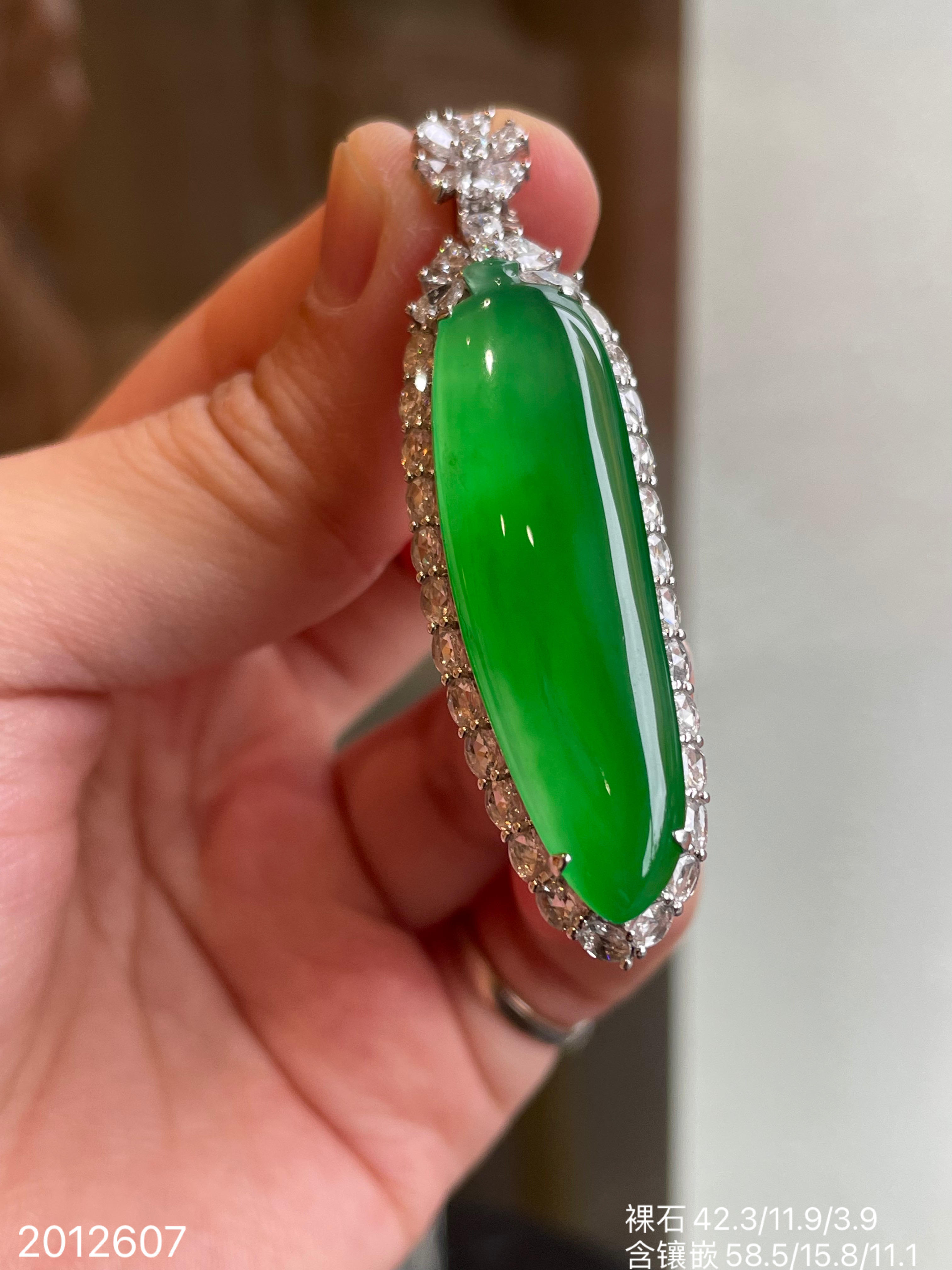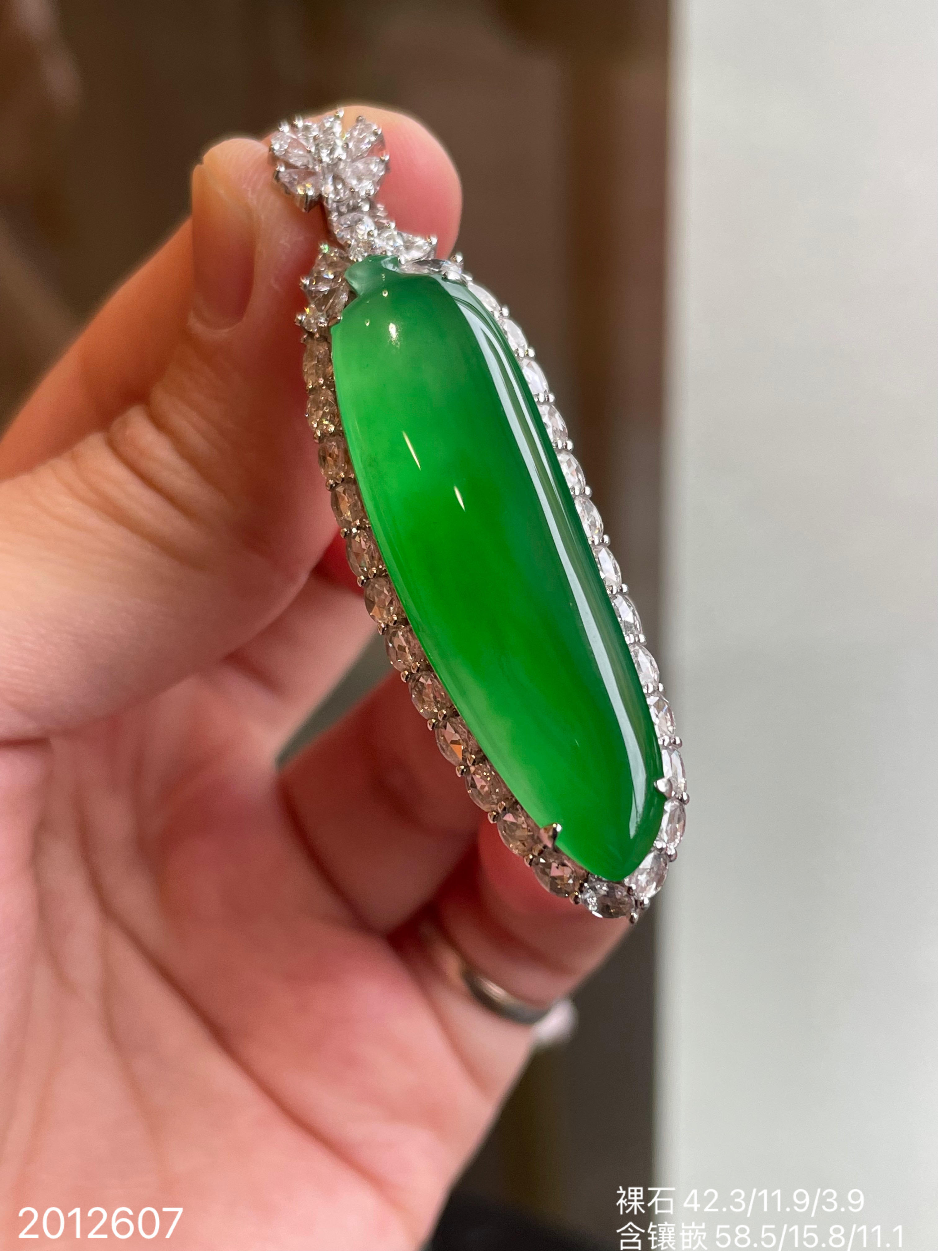 高冰艳绿福瓜吊坠【2012607】具体价格微信咨询