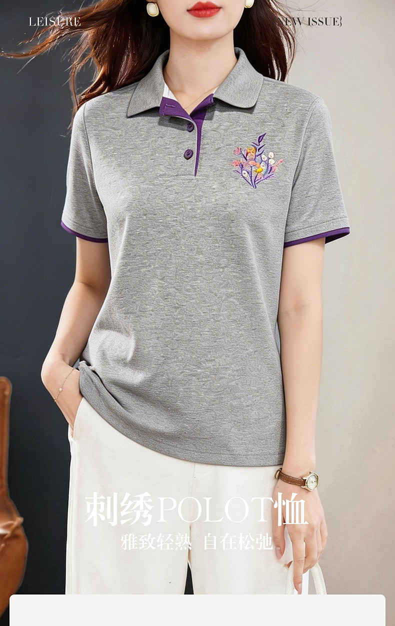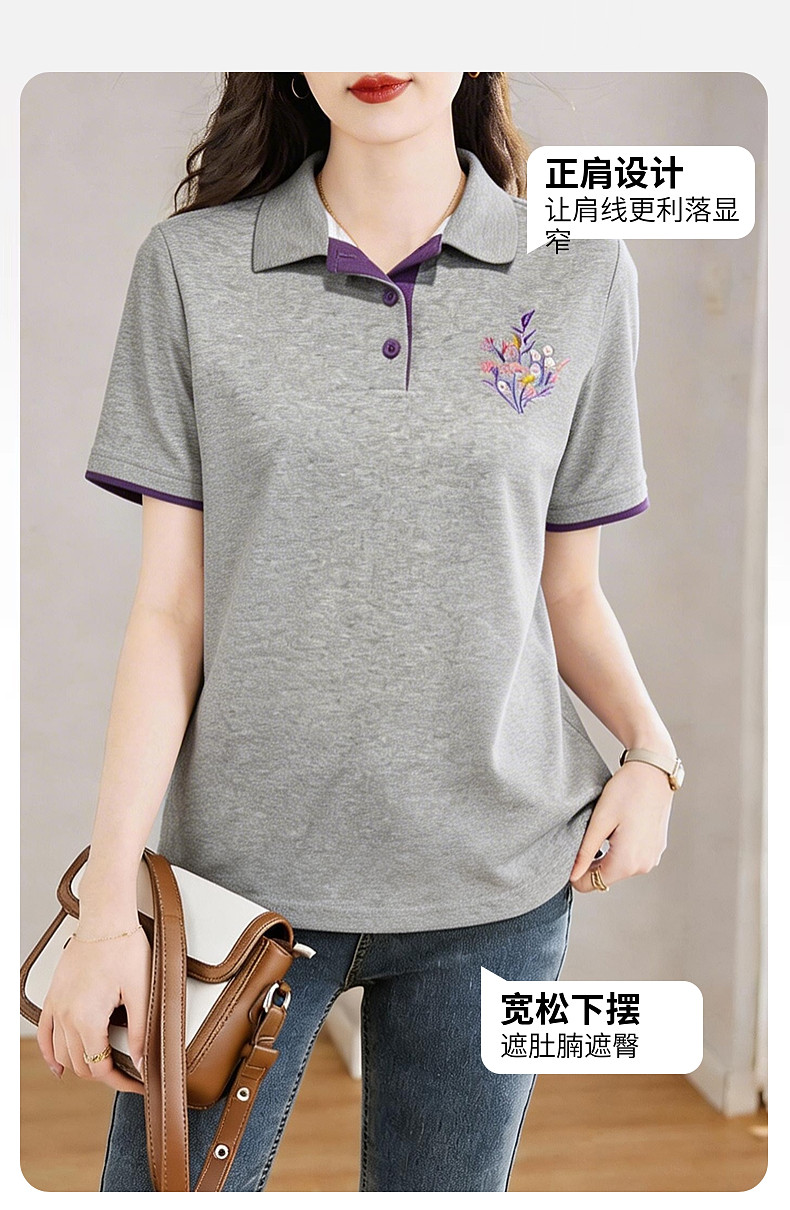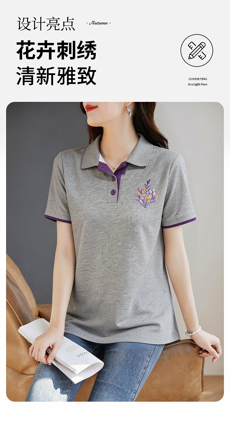 Polo领短袖T恤女士夏新款遮肉显瘦气质大码上衣简约休闲百搭胖mm