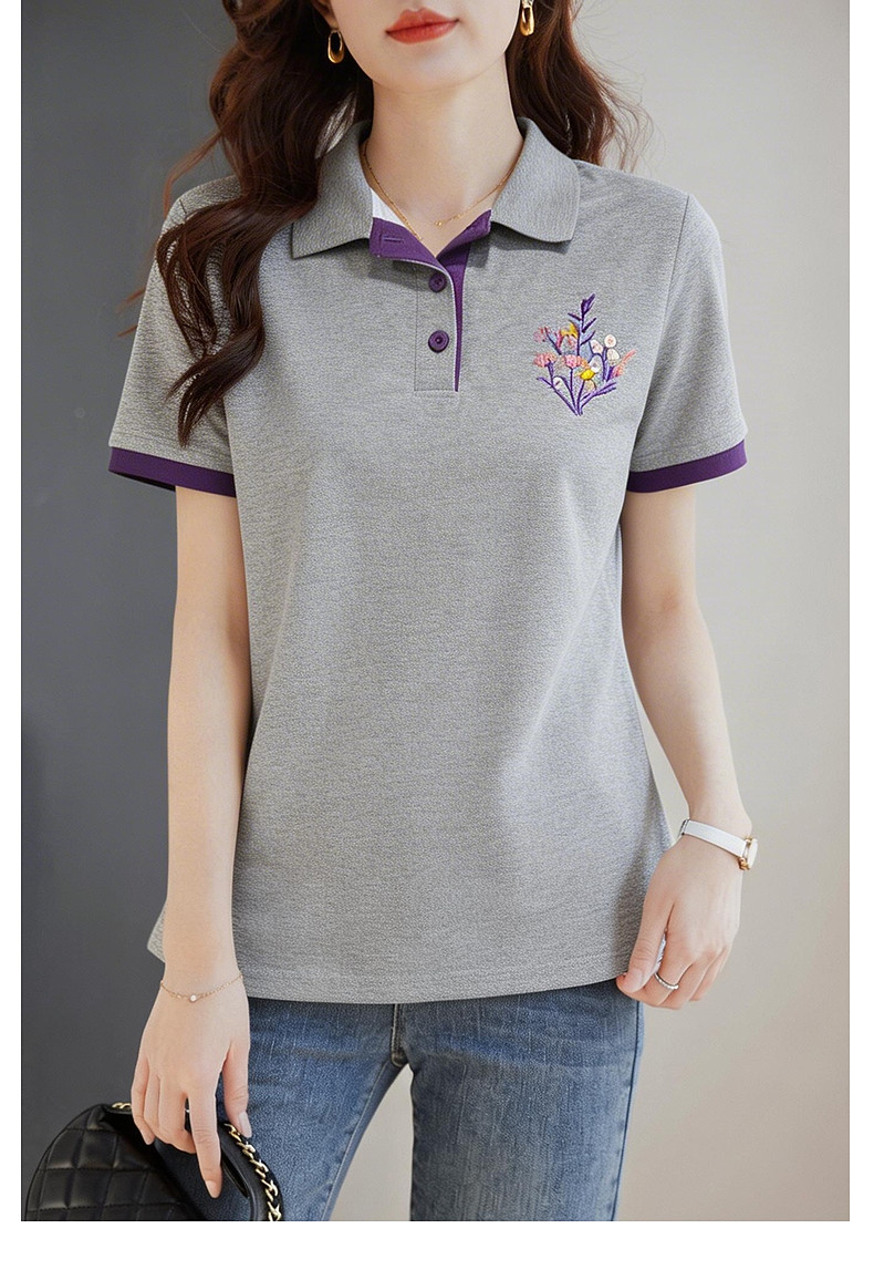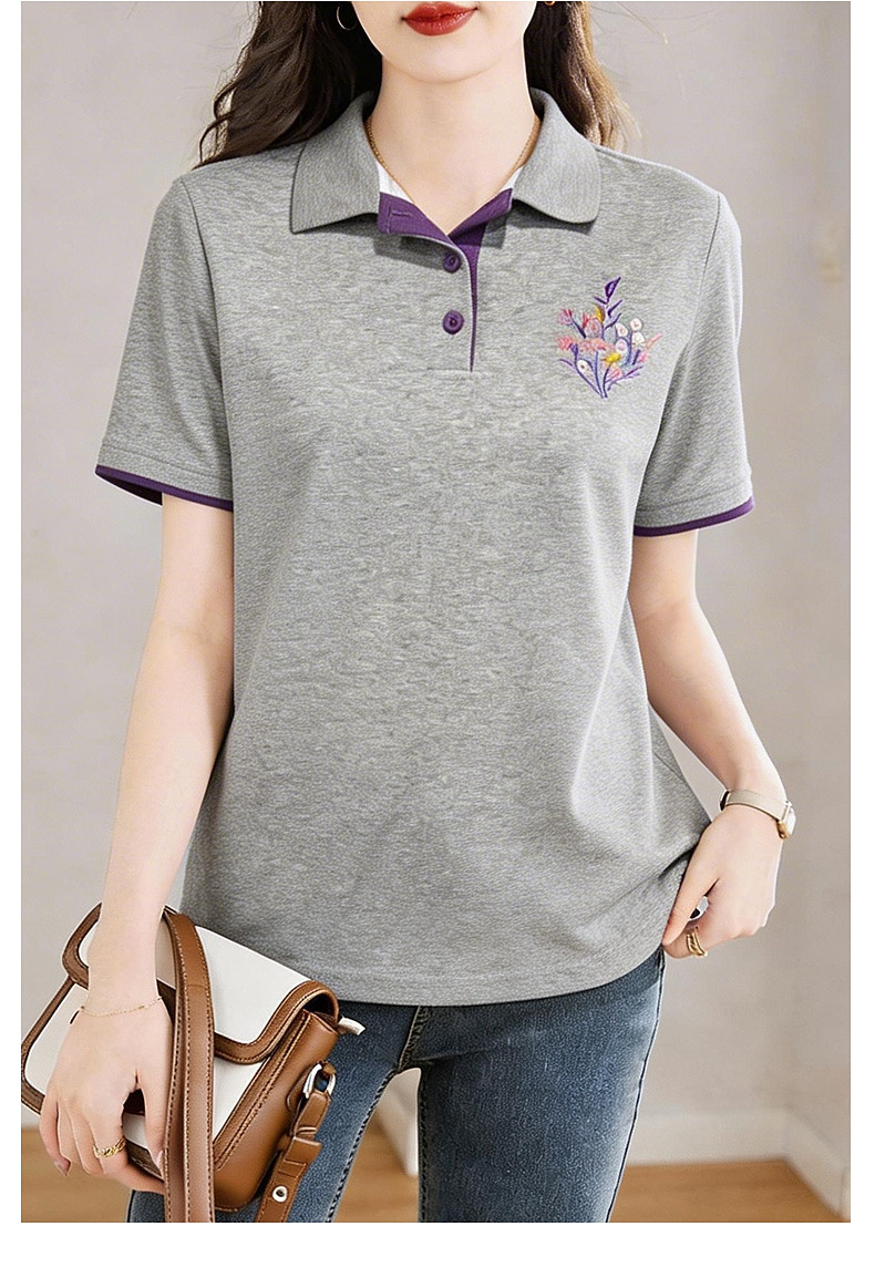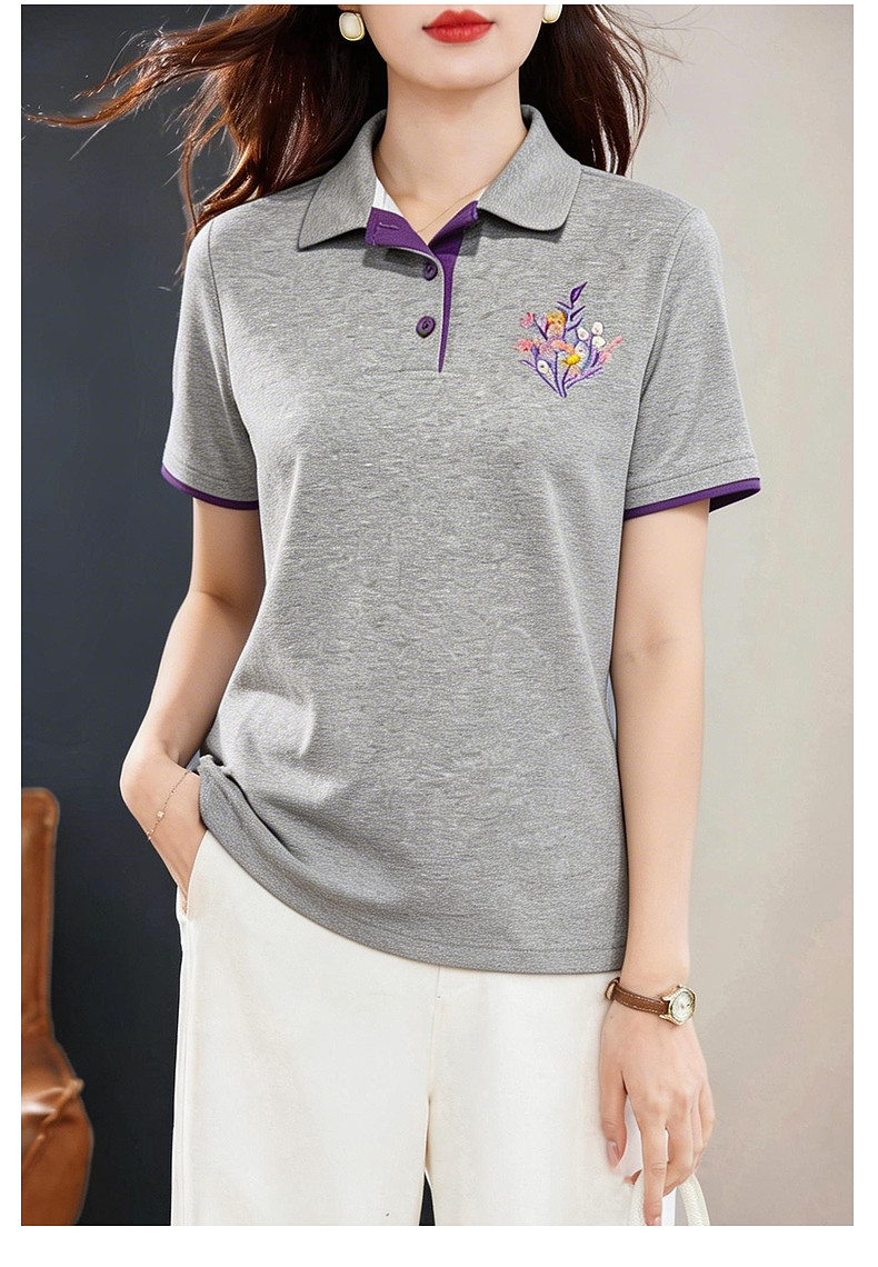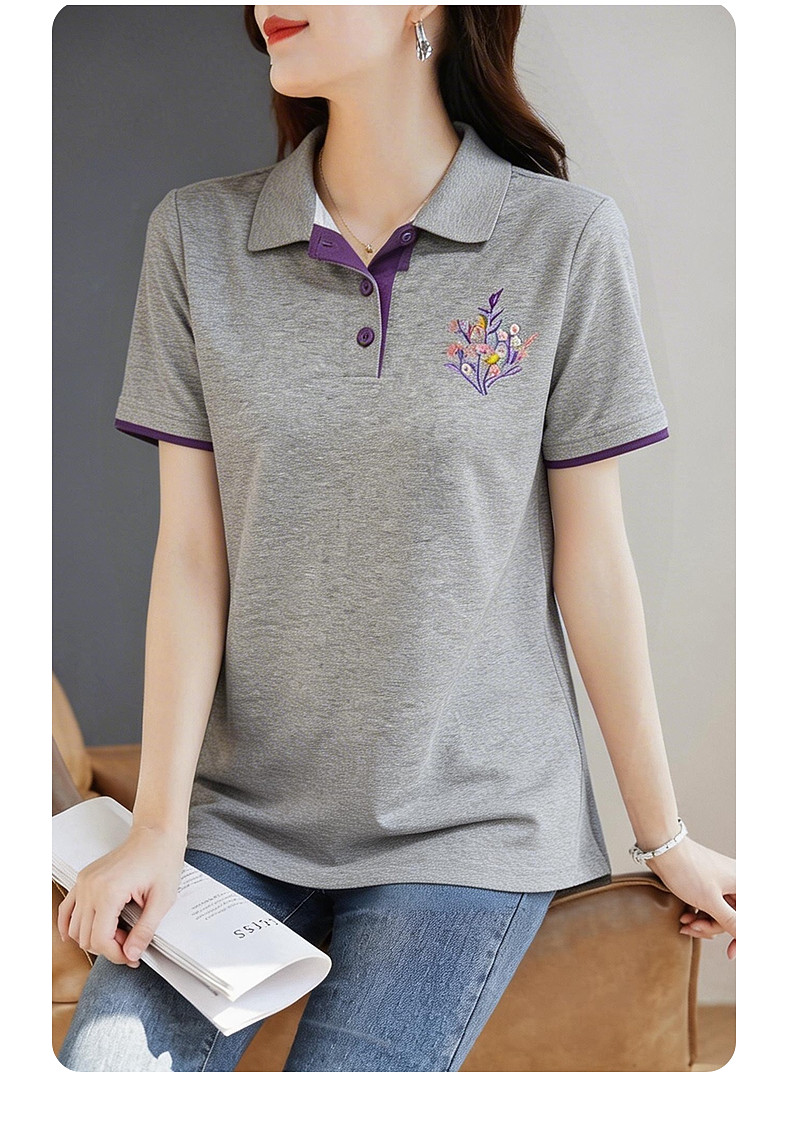 Polo领短袖T恤女士夏新款遮肉显瘦气质大码上衣简约休闲百搭胖mm