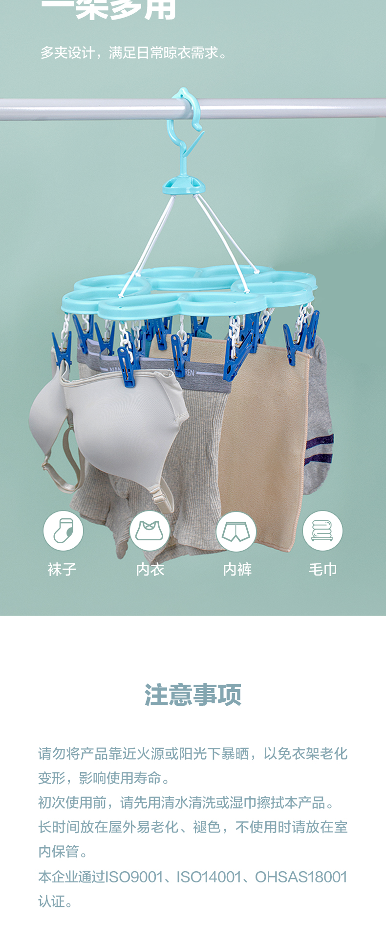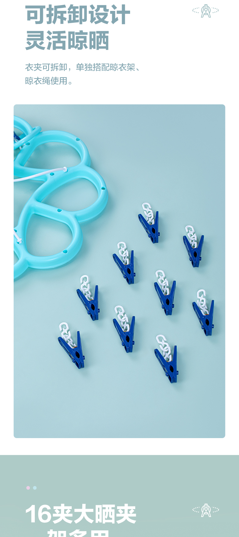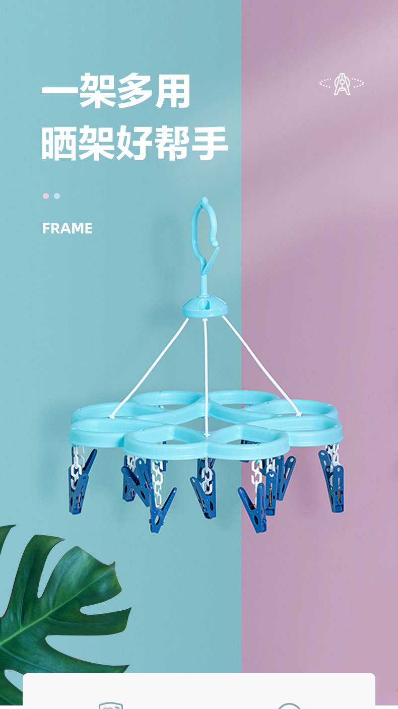 茶花 晾衣夹 衣架带夹子圆形晾衣架 晒袜子架(16夹子)袜架挂架 1只07021T