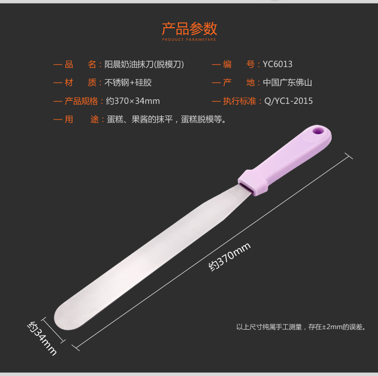 阳晨 不锈钢直抹刀 奶油蛋糕裱花刮平刀 吻刀 脱模刀 YC6013