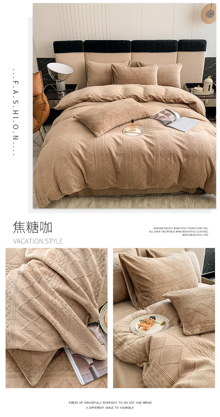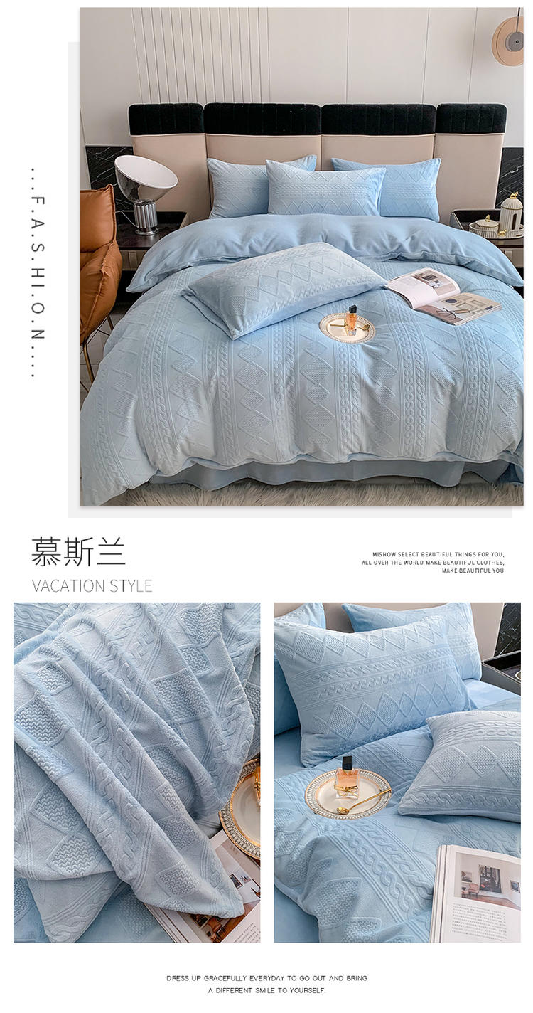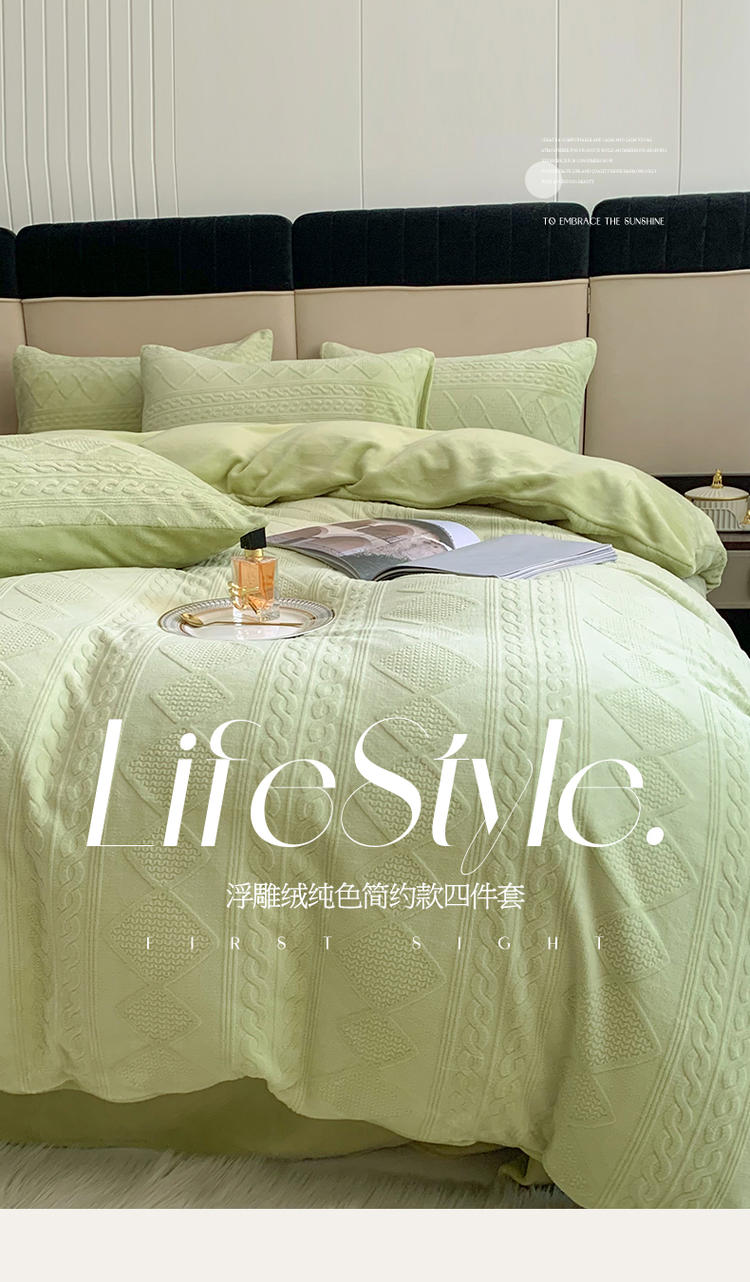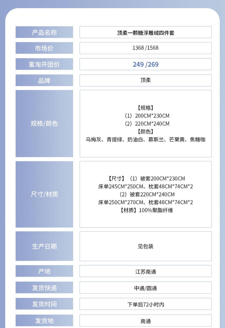 园园亲选南通家纺顶柔一颗糖浮雕绒四件套!细腻温柔舒爽不静电格调满满
