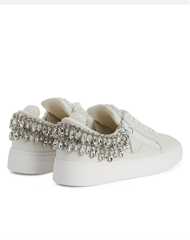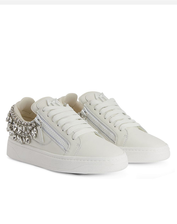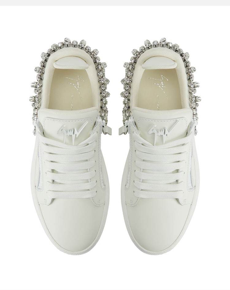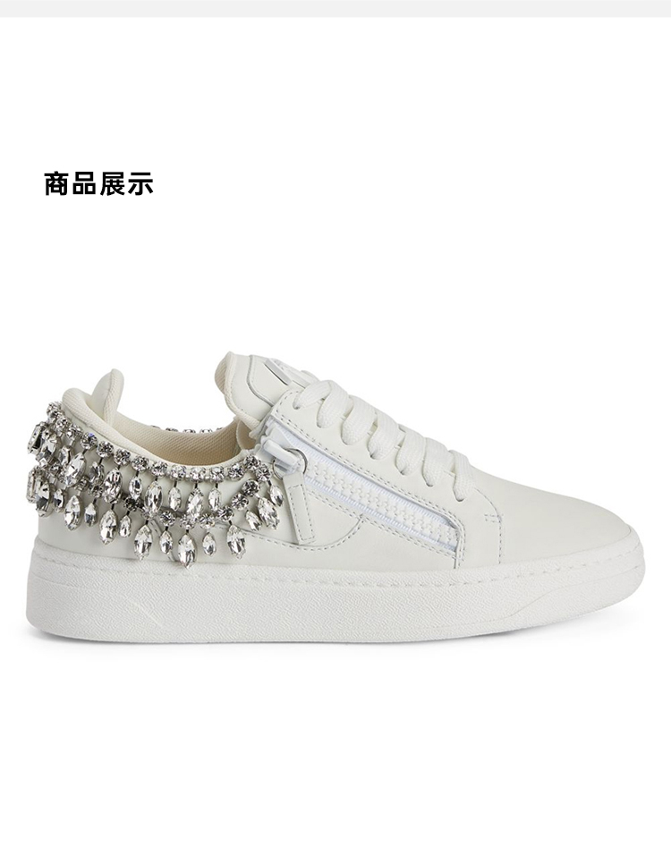 Giuseppe Zanotti 女士金属签名徽标 GZ94 金属配件,镶有水晶水钻低帮休闲运动鞋 白色 RW30009001