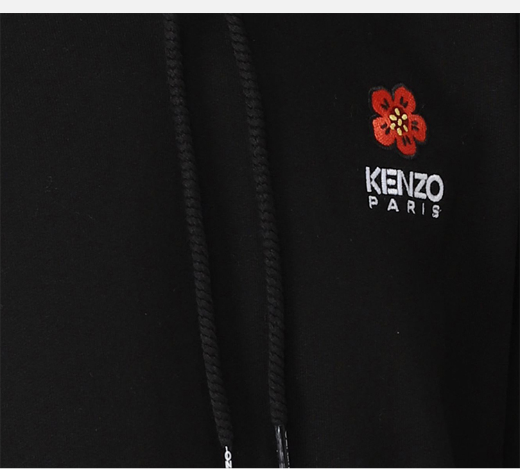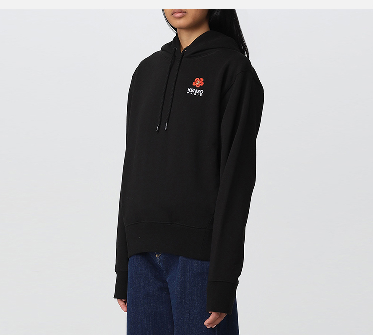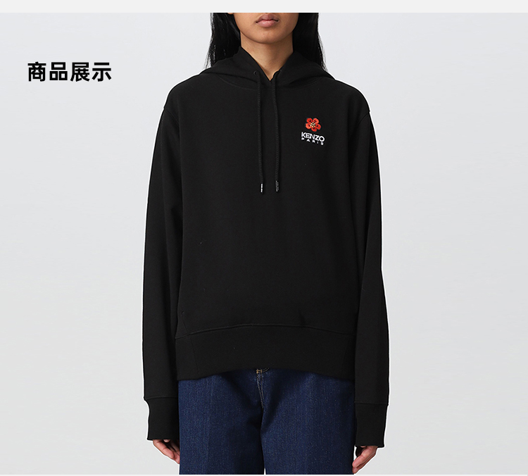 KENZO 高田贤三 女士棉质字母花刺绣徽标抽绳连帽长袖卫衣 黑色 FC62 SW015 4MF 99J