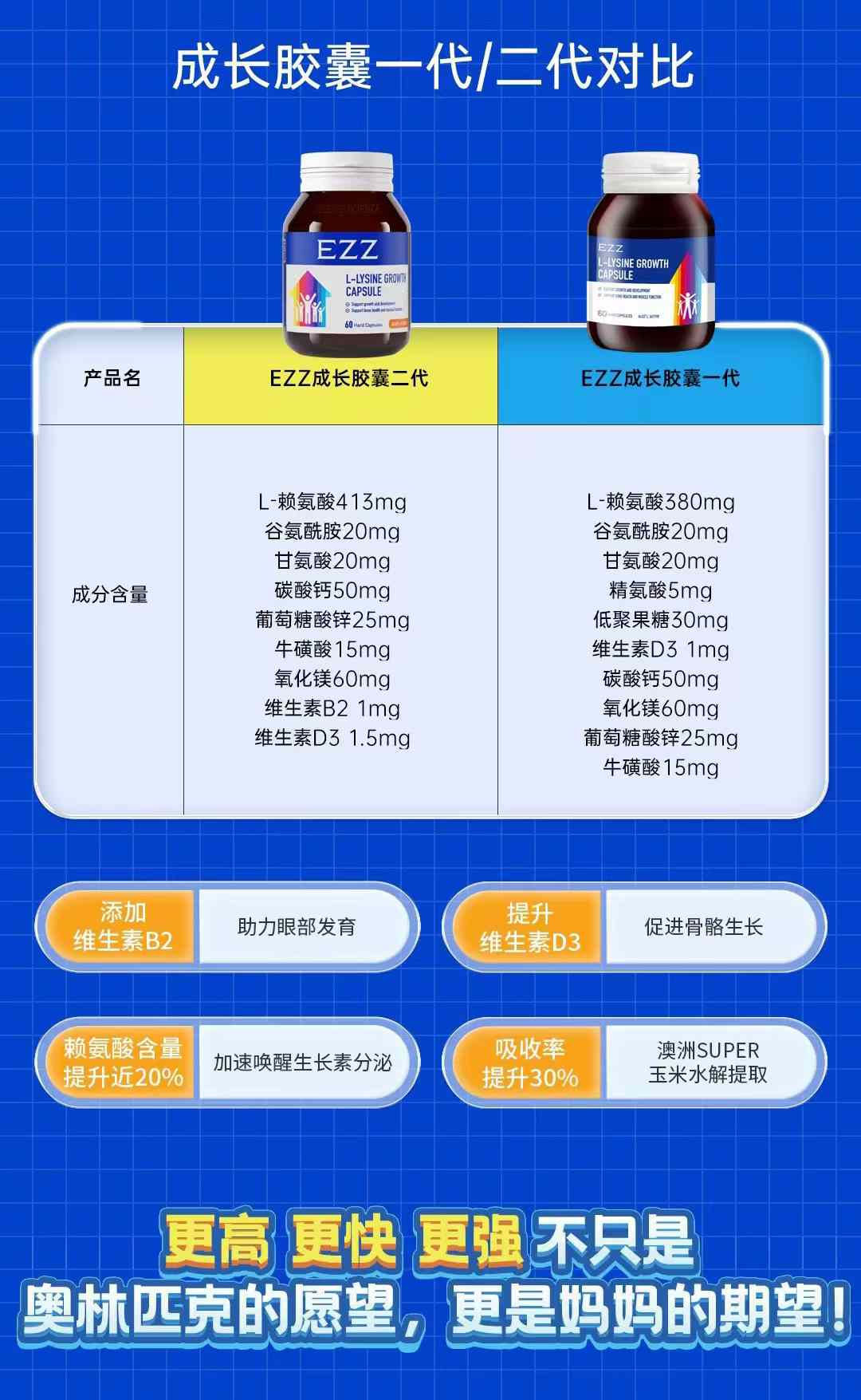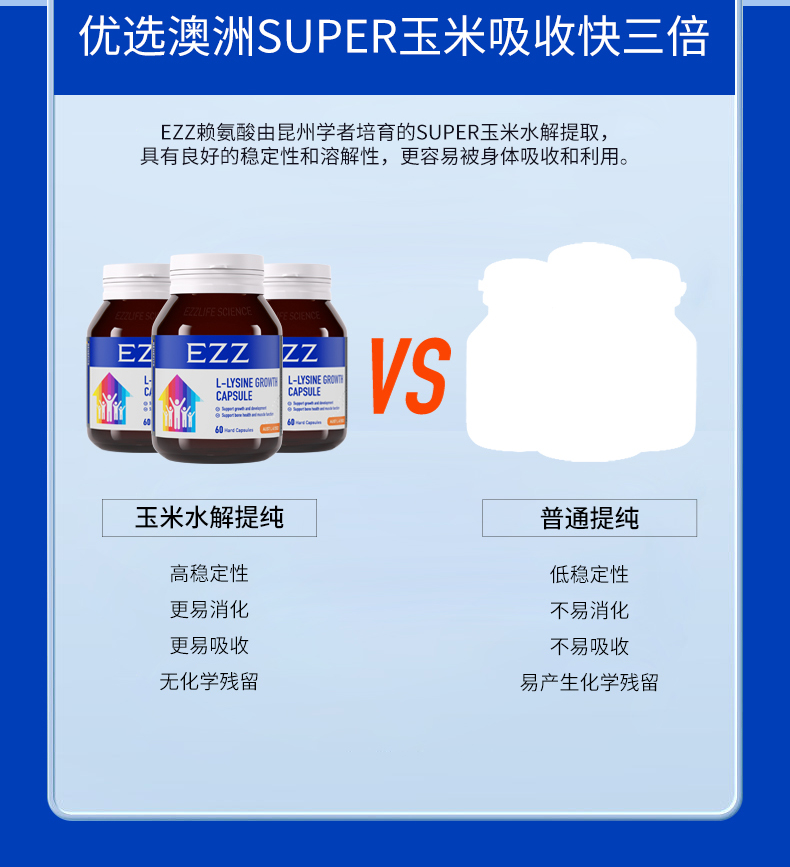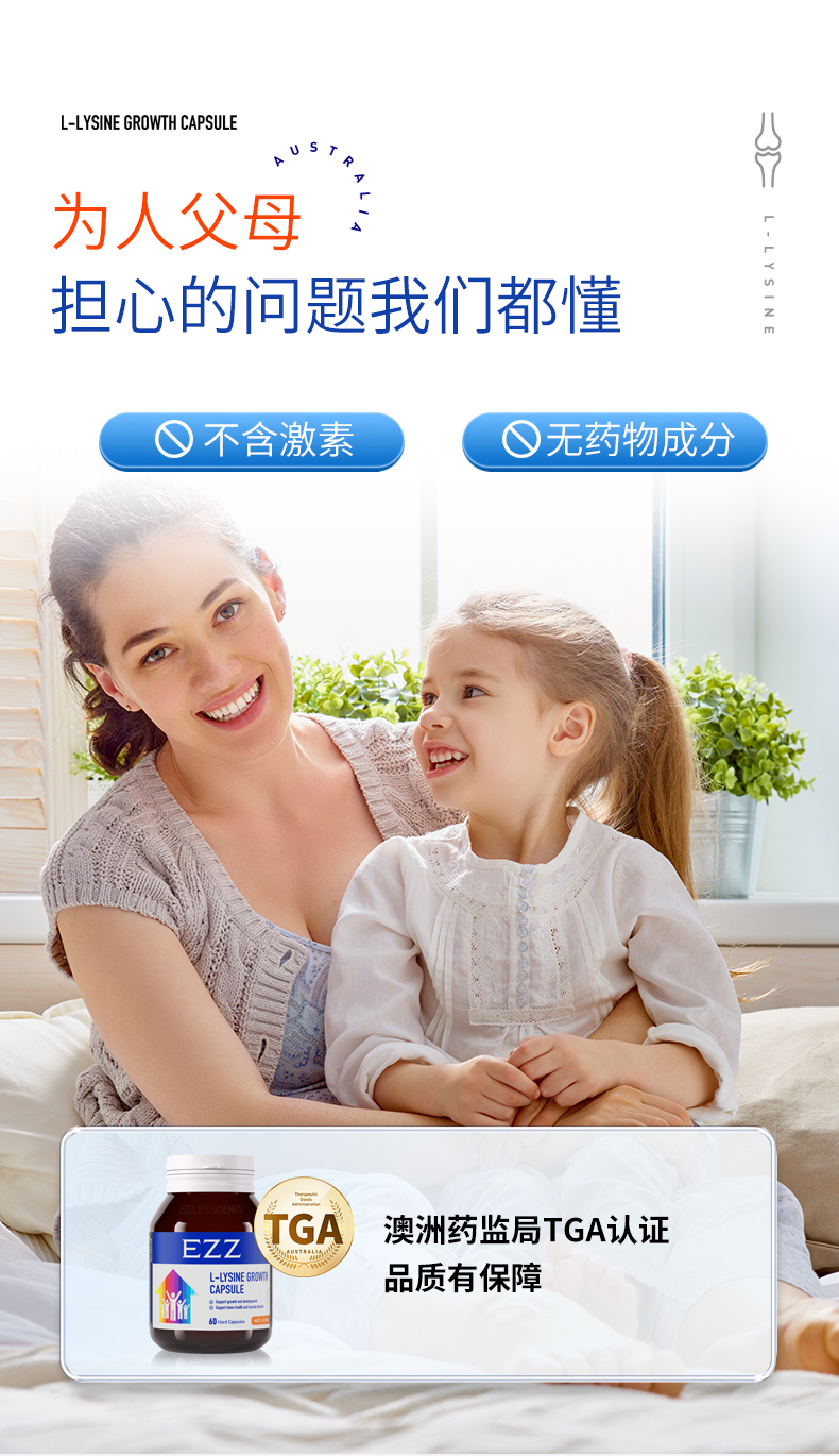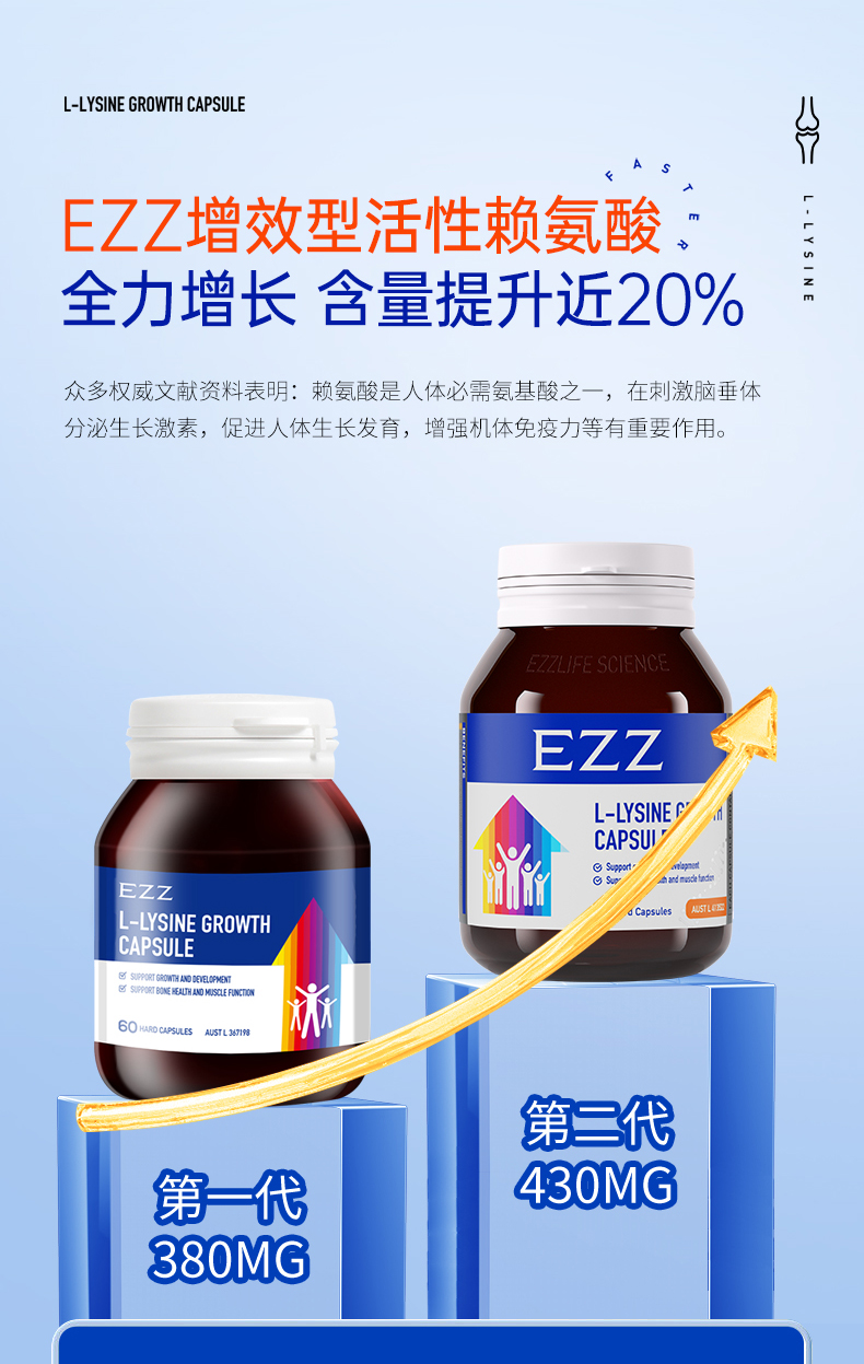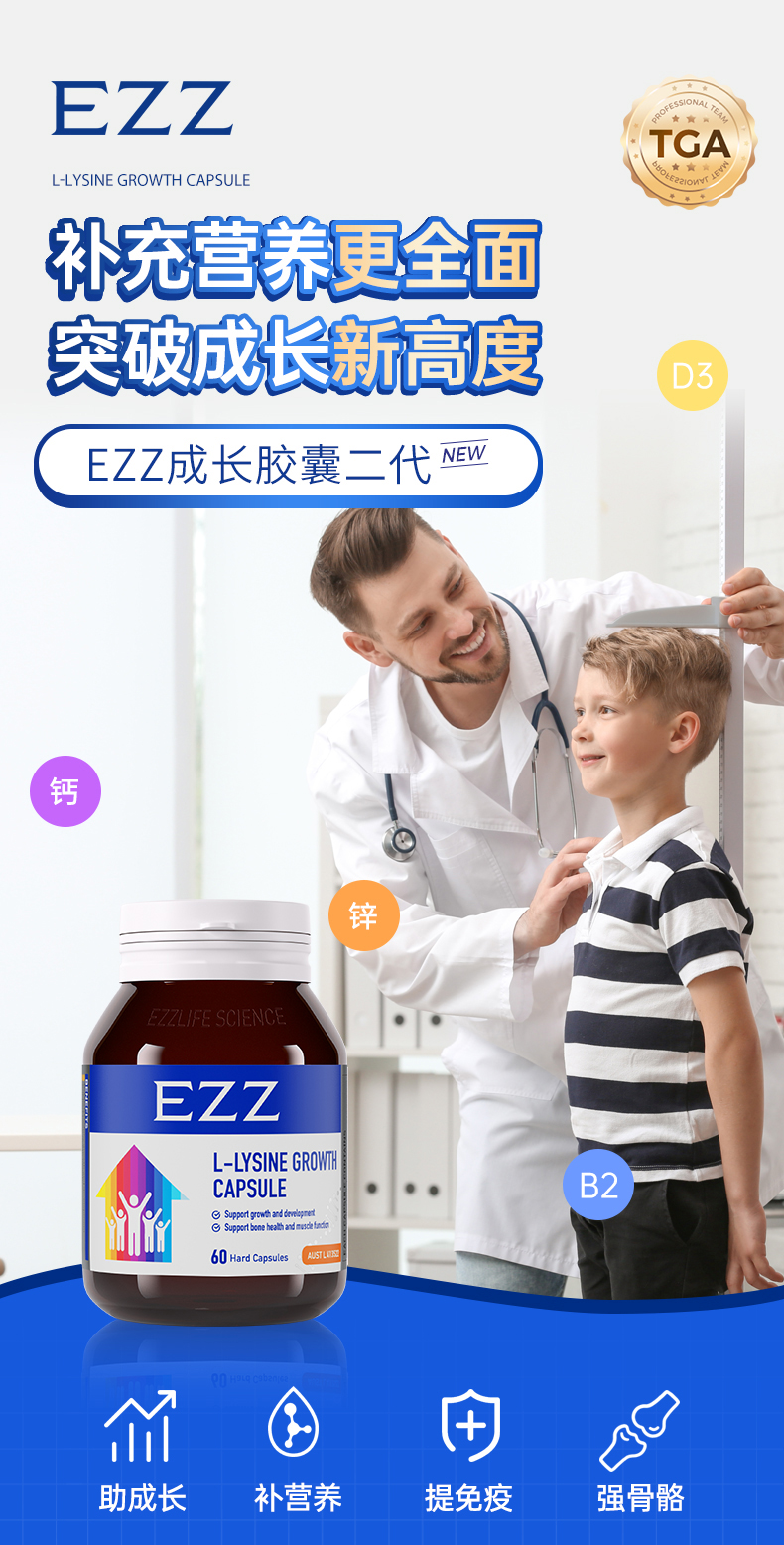 【直降200元 多妈团购正品EZZ成长胶囊】澳洲EZZ二代成长胶囊 赖氨酸含量更高,刺激脑垂体分泌生长激素、抓住成长关键期 正品保证 澳洲原装进口