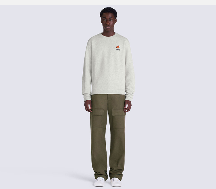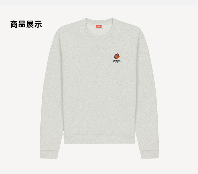 【一】KENZO 高田贤三 男士棉质字母花图案刺绣徽标圆领长袖卫衣 灰色 FC65 SW412 4MF 93