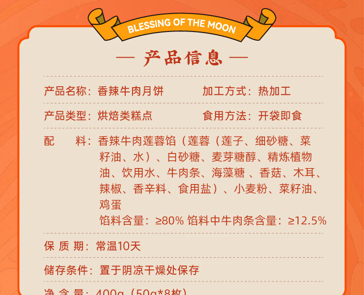 2025年中秋月饼哥哥 香辣牛肉月饼 50g*8个/盒手工月饼保质期10-15天