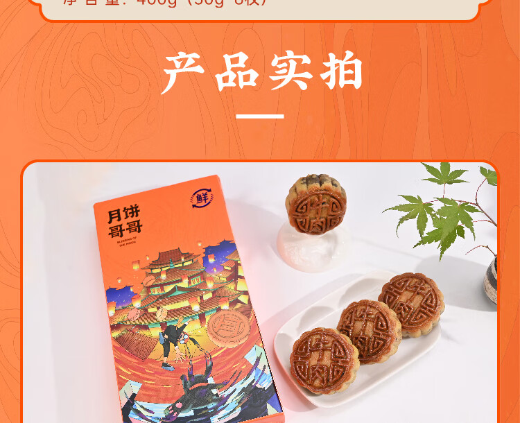2025年中秋月饼哥哥 莲蓉蛋黄月饼/豆沙蛋黄月饼 60g*8个/盒手工月饼保质期10-15天