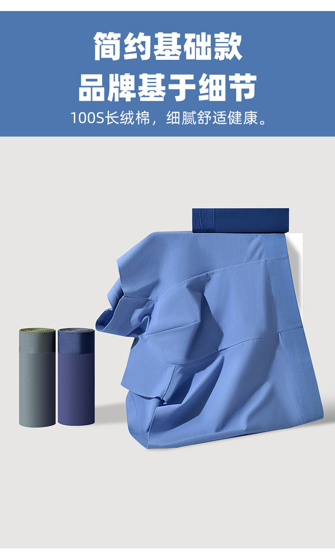 新款男士100支新疆棉净色细腻舒爽无痕净色平角内裤舒适透气四角裤3077