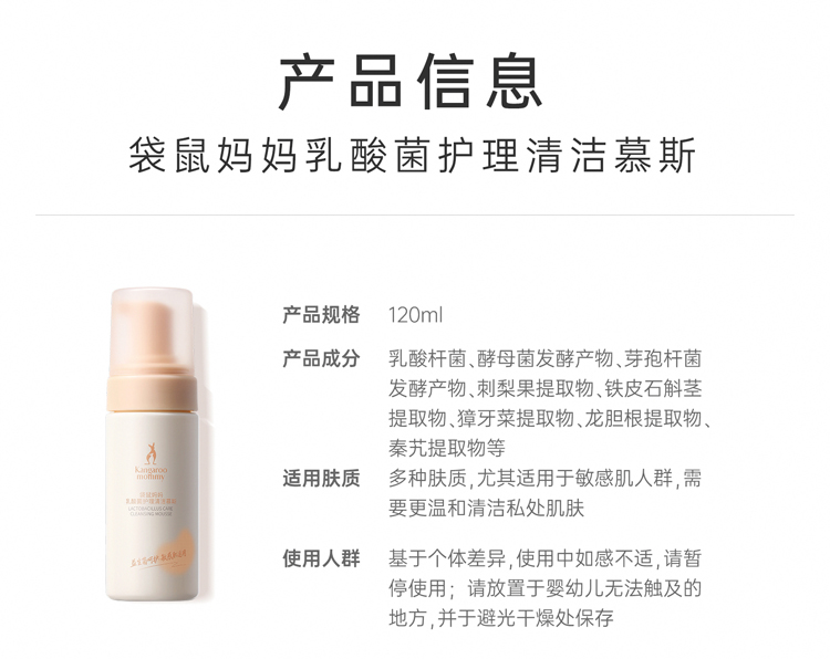 【乳酸菌清洁慕斯】双专利益生菌 平衡菌群舒痒净味不粘腻 袋鼠妈妈乳酸菌护理清洁慕斯120ml