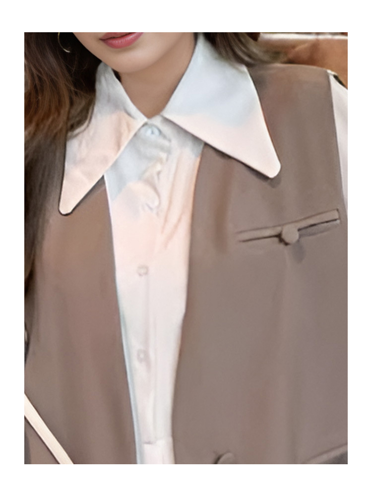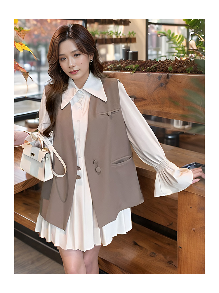 9/6奢姿大码女装2024秋季时尚马甲百褶裙翻领两件套胖妹妹时尚套装9943934053