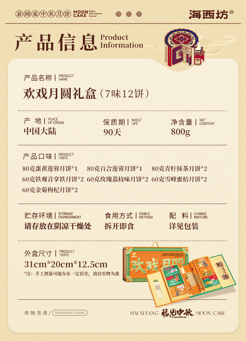 【买10送1】【雅韵中秋】海西坊欢戏月圆800g