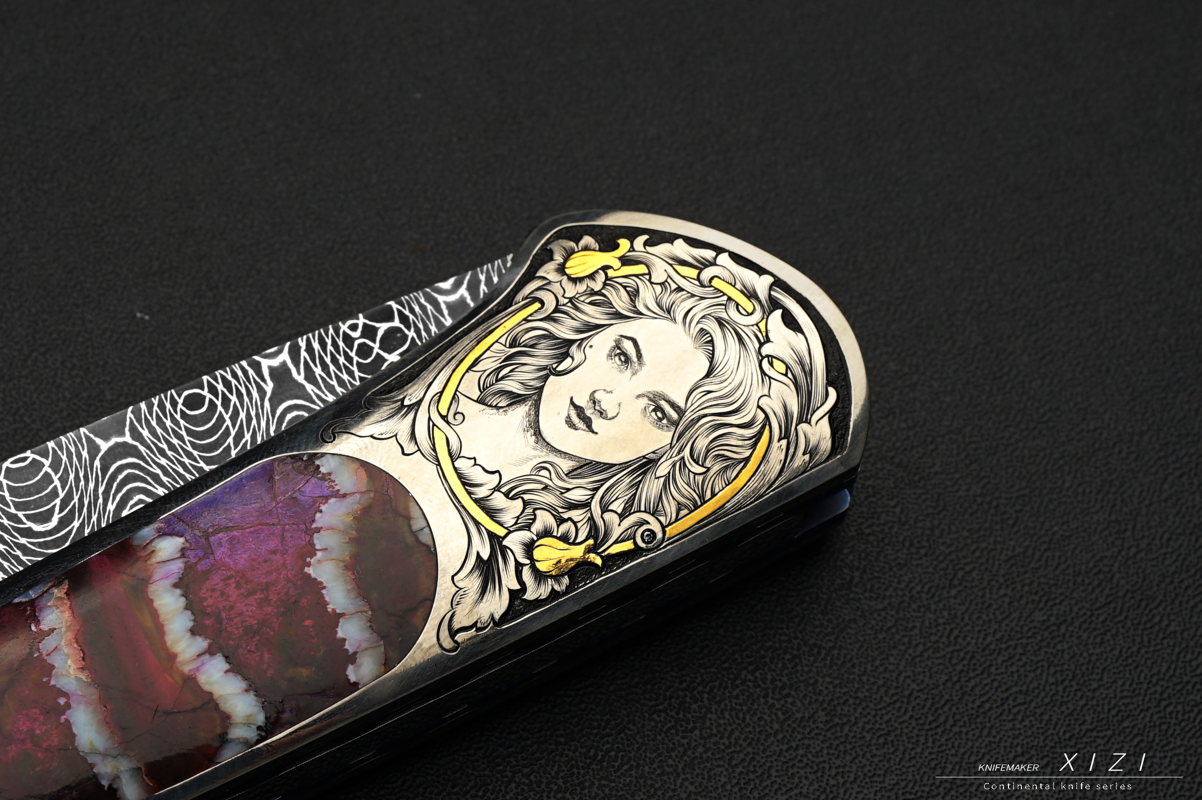 我们经典的欧式典雅小折,以北欧神话中掌管土地和收货的西芙女神为主题,女神的金发象征黄金和麦穗,手工雕刻+24k真金镶嵌