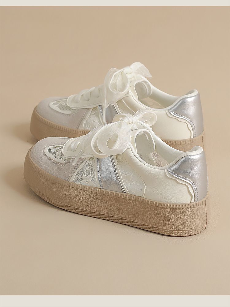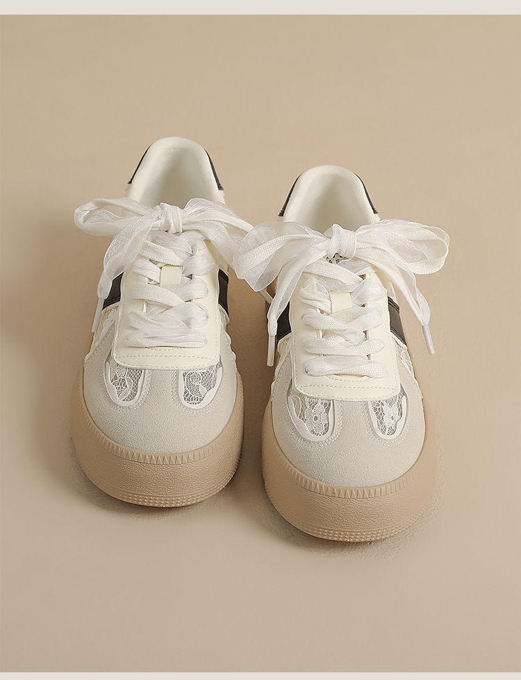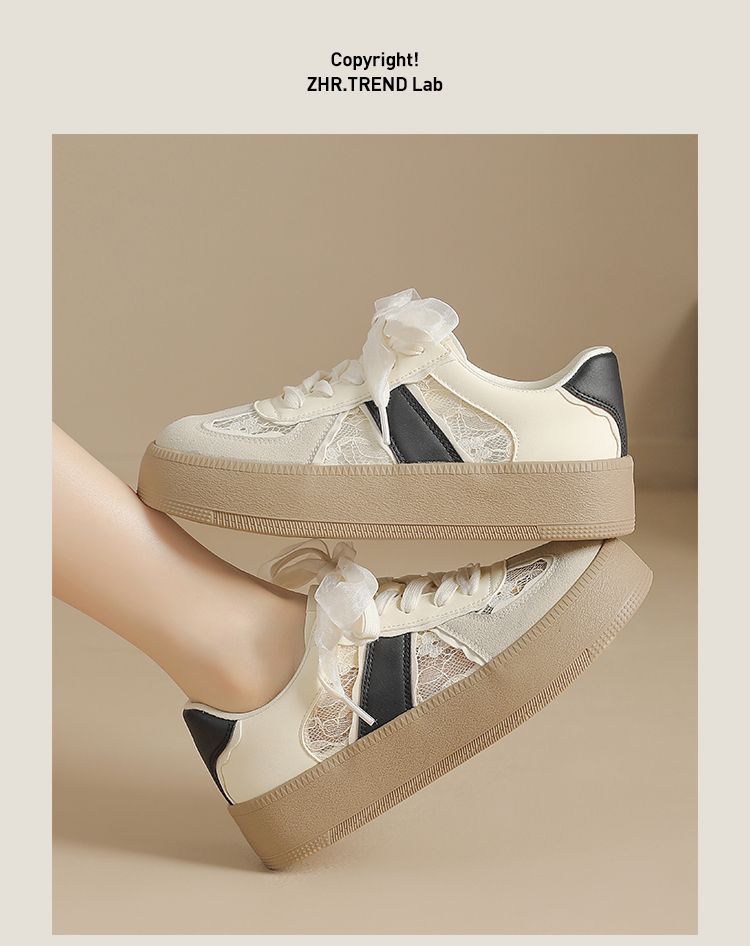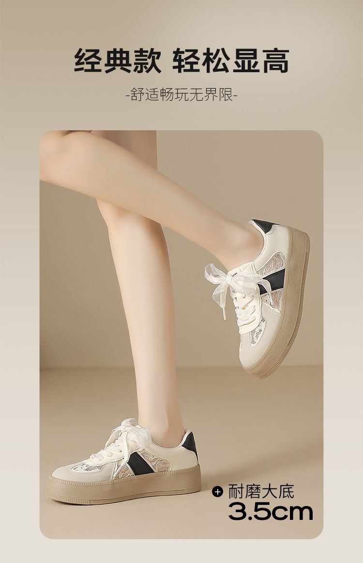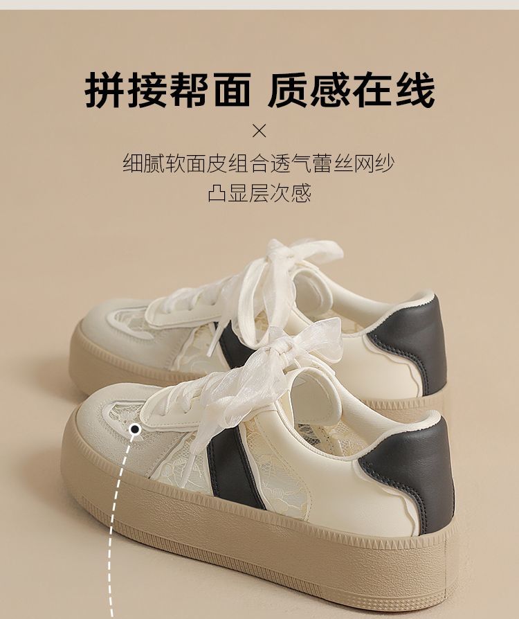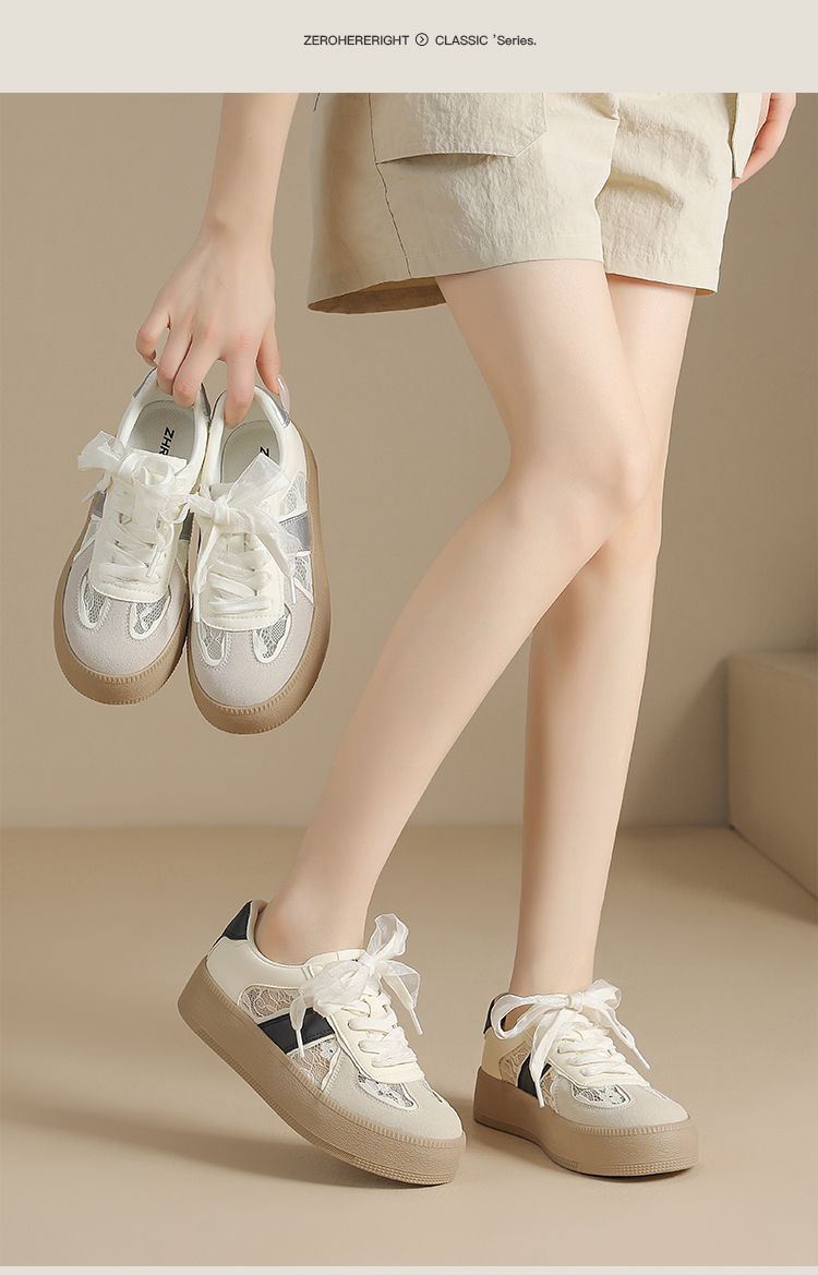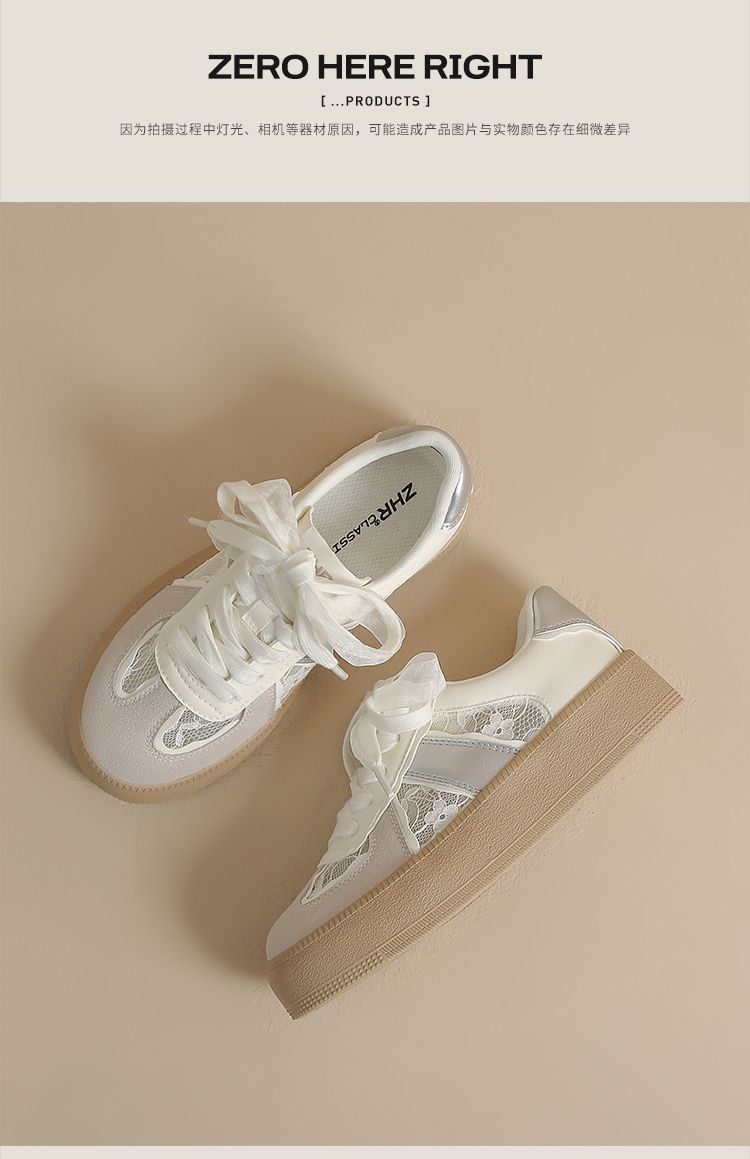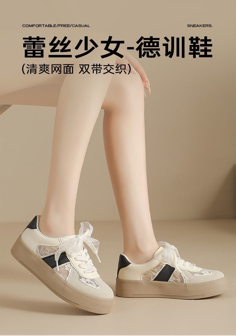 ZHR则则复古芭蕾风德训鞋女夏季蕾丝透气网面休闲鞋百搭小白鞋女
