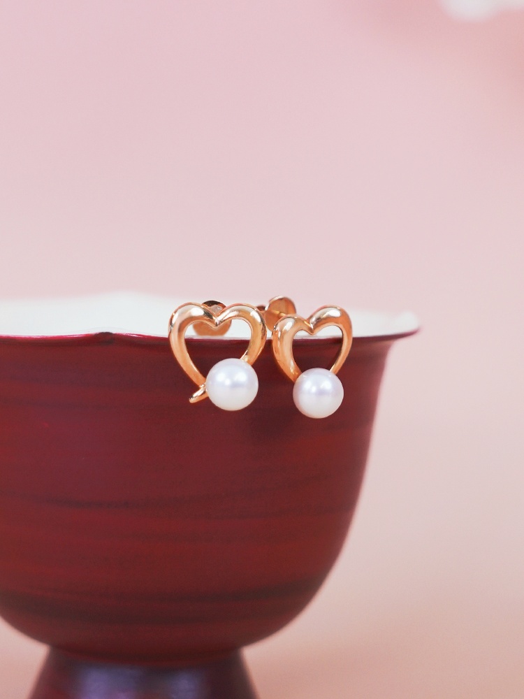 【现货】18K金珍珠耳钉爱心珍珠小众设计款【尺寸5.7mm】 【一物一证书】