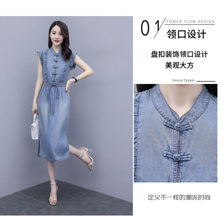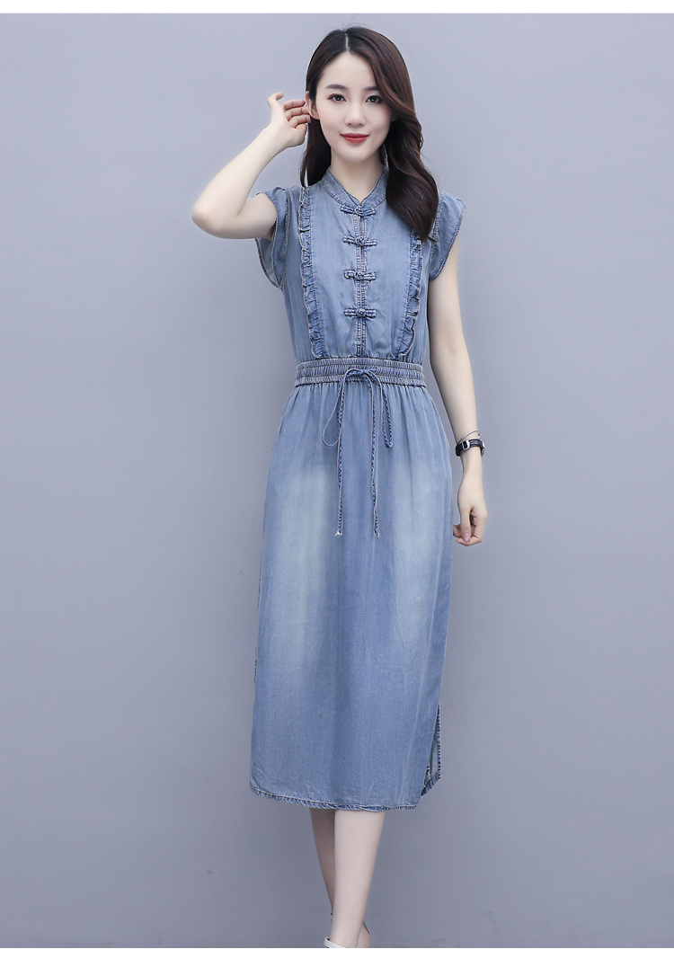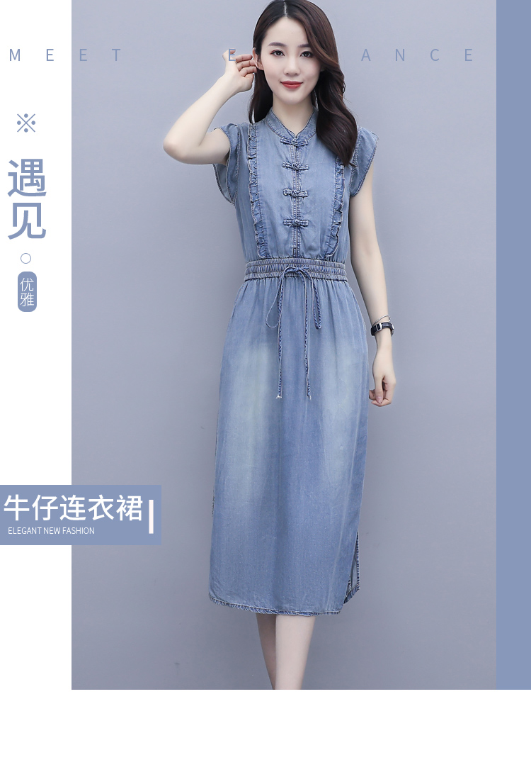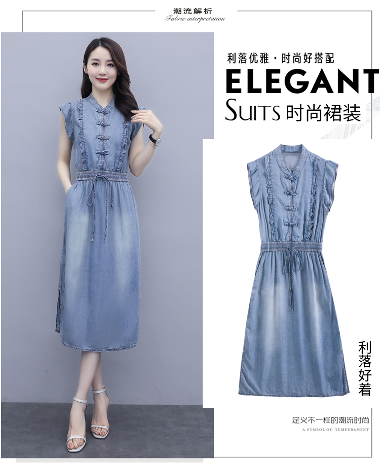 气质修身,新款款裙子夏季盘扣牛仔连衣裙HR-HLGUO831