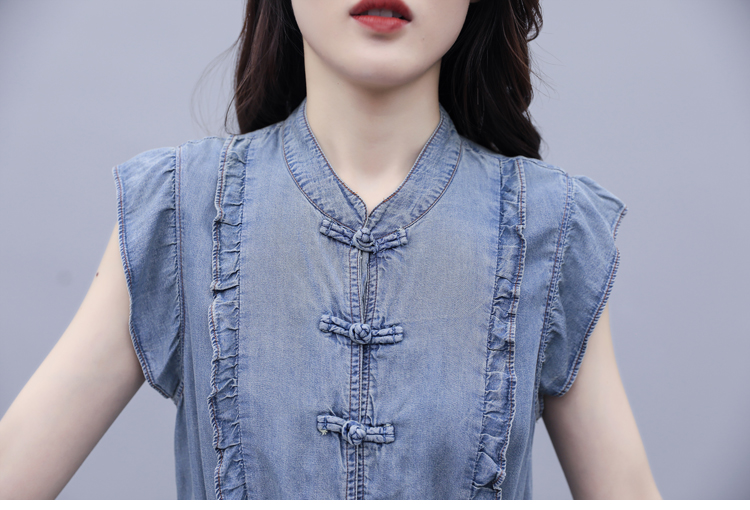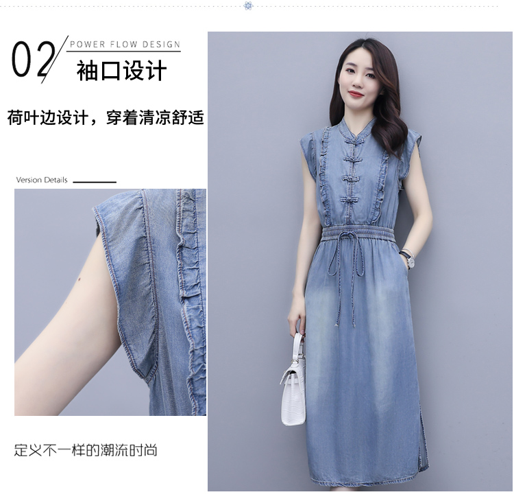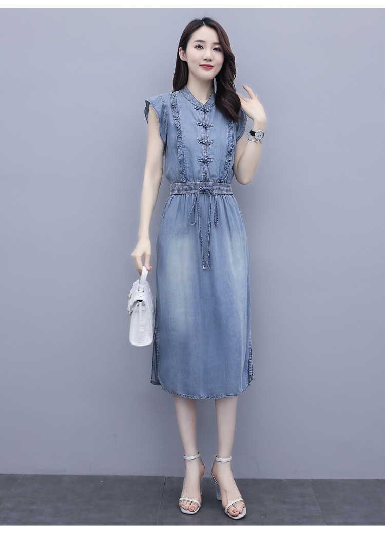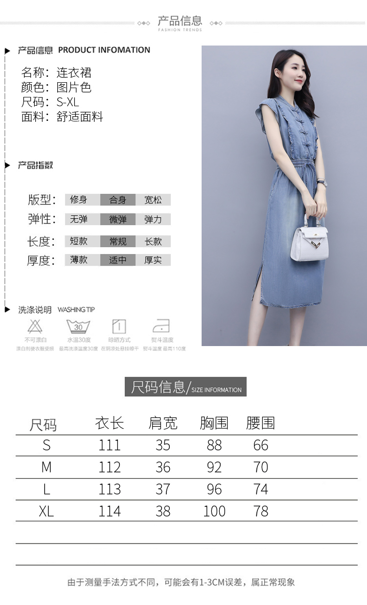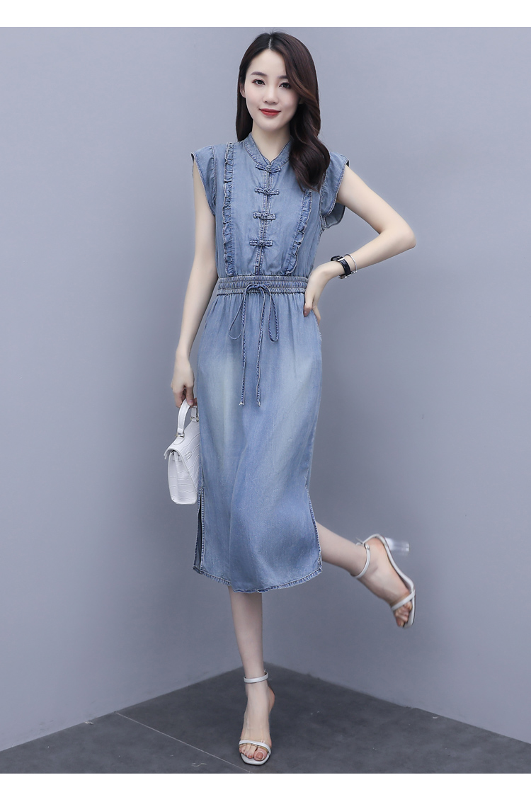 气质修身,新款款裙子夏季盘扣牛仔连衣裙HR-HLGUO831