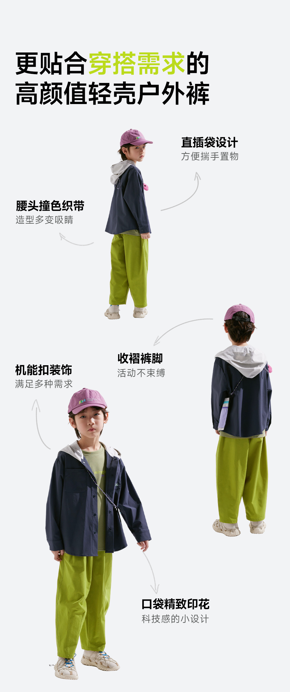【轻量】【咕噜日记】童装儿童登山裤中大童九分裤男女童户外长裤休闲PCK2502