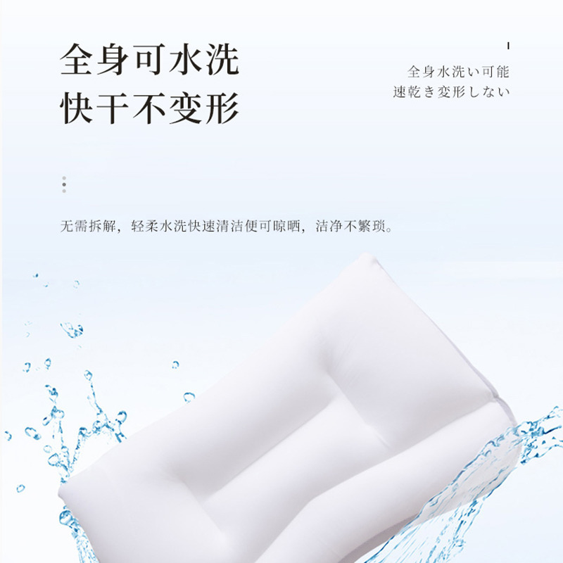 保护颈部承托,贴合生理曲度,高支高密面料,既透气又舒服。全身可水洗,快干不变形,无需拆解,轻柔水洗,快速清洁便可晾晒,洁净不繁琐。