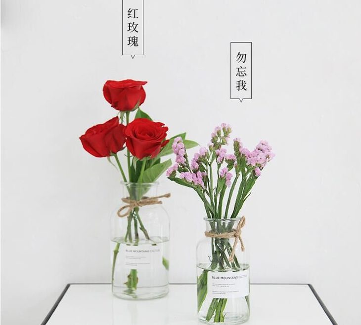 红玫瑰11枝,粉色(或者紫色)勿忘我0.3扎,栀子叶适量搭配