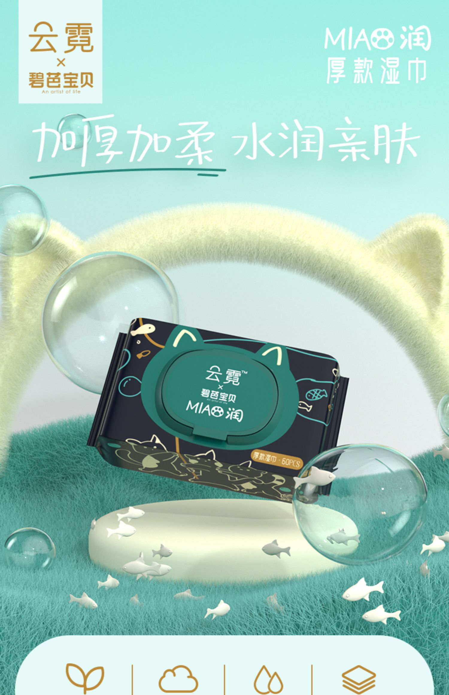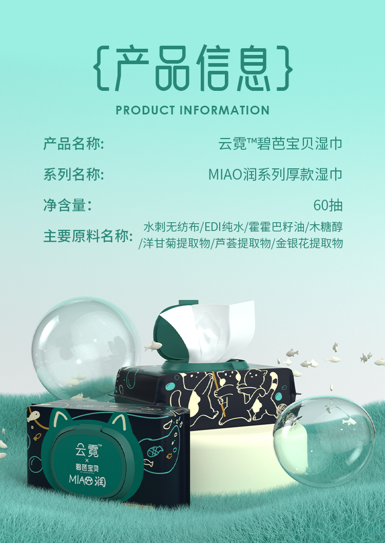 碧芭宝贝云霓MIAO润湿巾清洁加厚抽取湿纸巾60抽3包