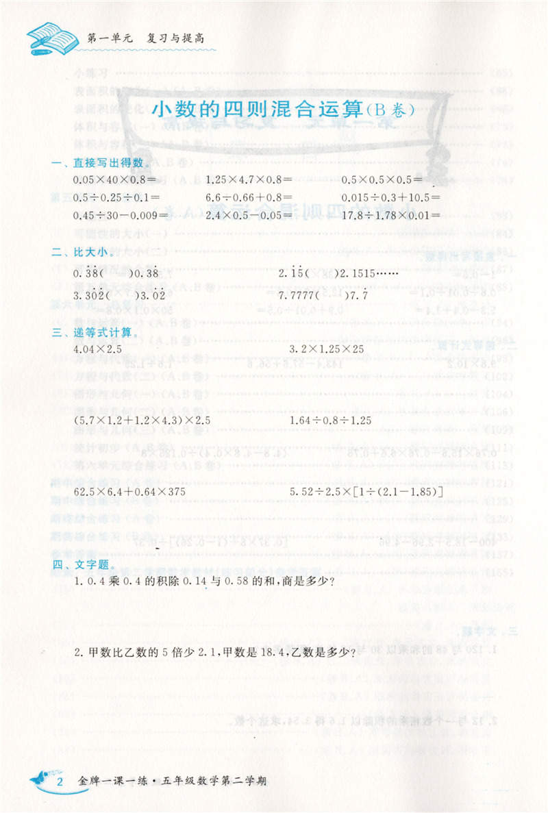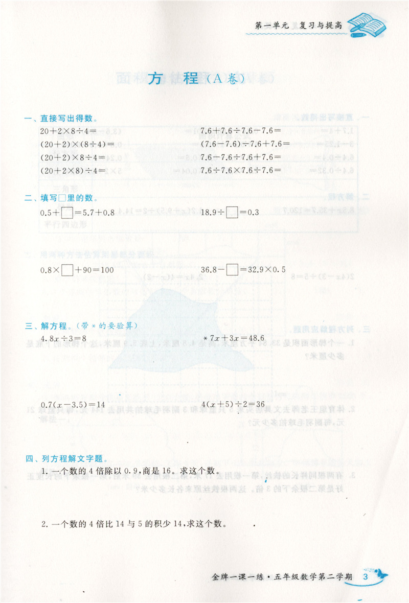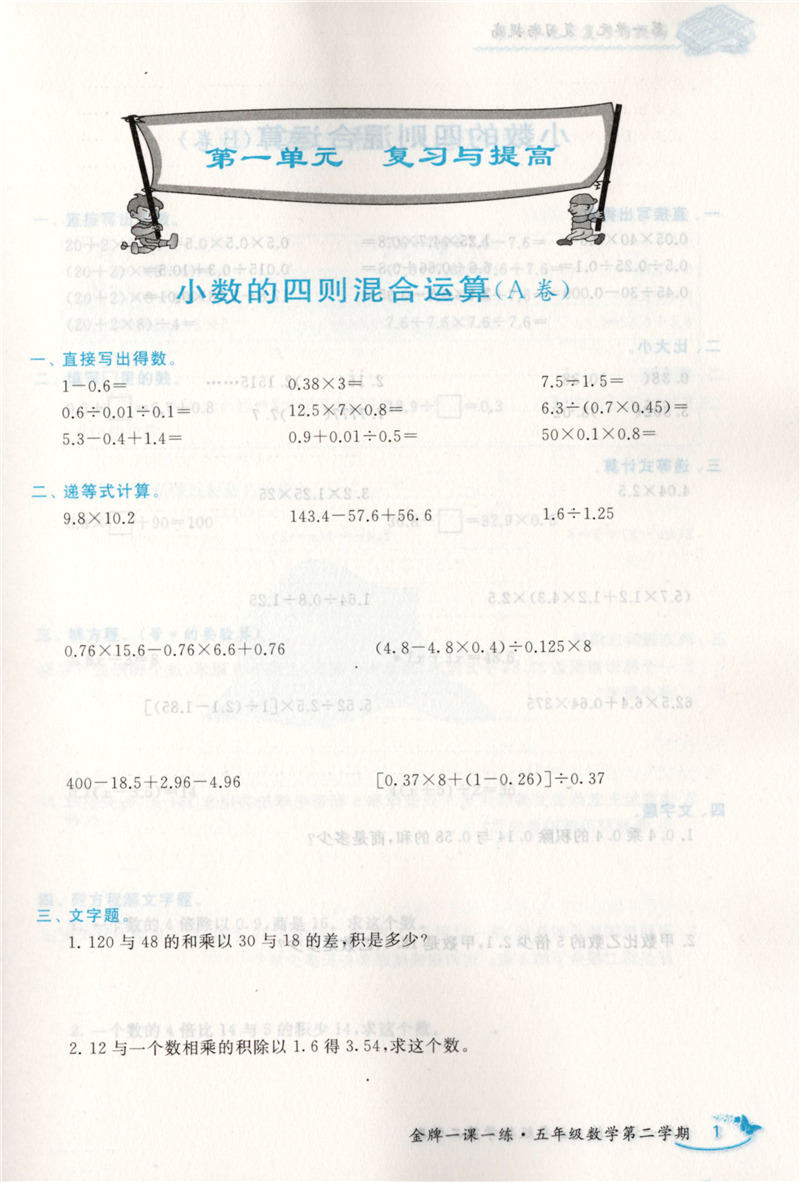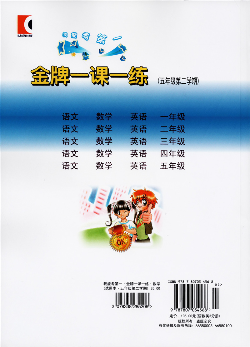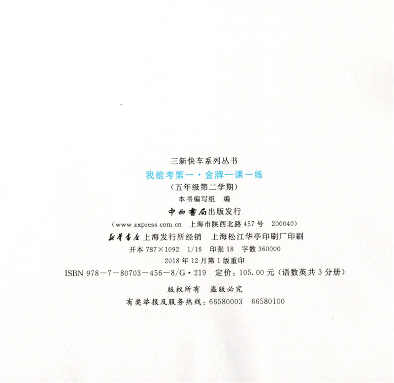 我能考第一 金牌一课一练 数学 试用本·五年级第二学期/5下 上海小学教辅 中西书局