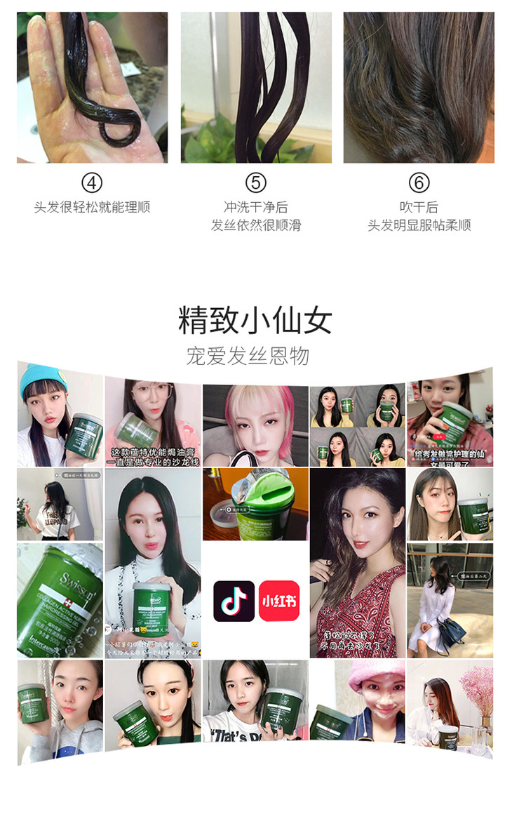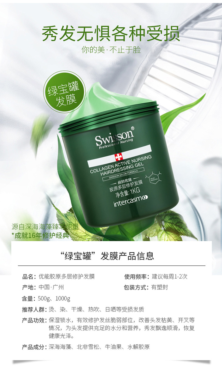 【买赠试用装,多买多赠】养出丝丝水润轻盈发,蕴特优能 绿宝罐发膜,专业沙龙线护发,头发天天看着变好,500g/罐