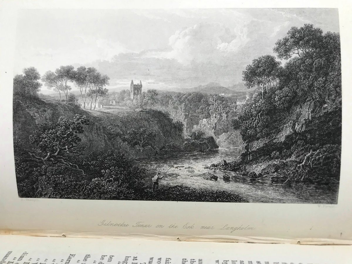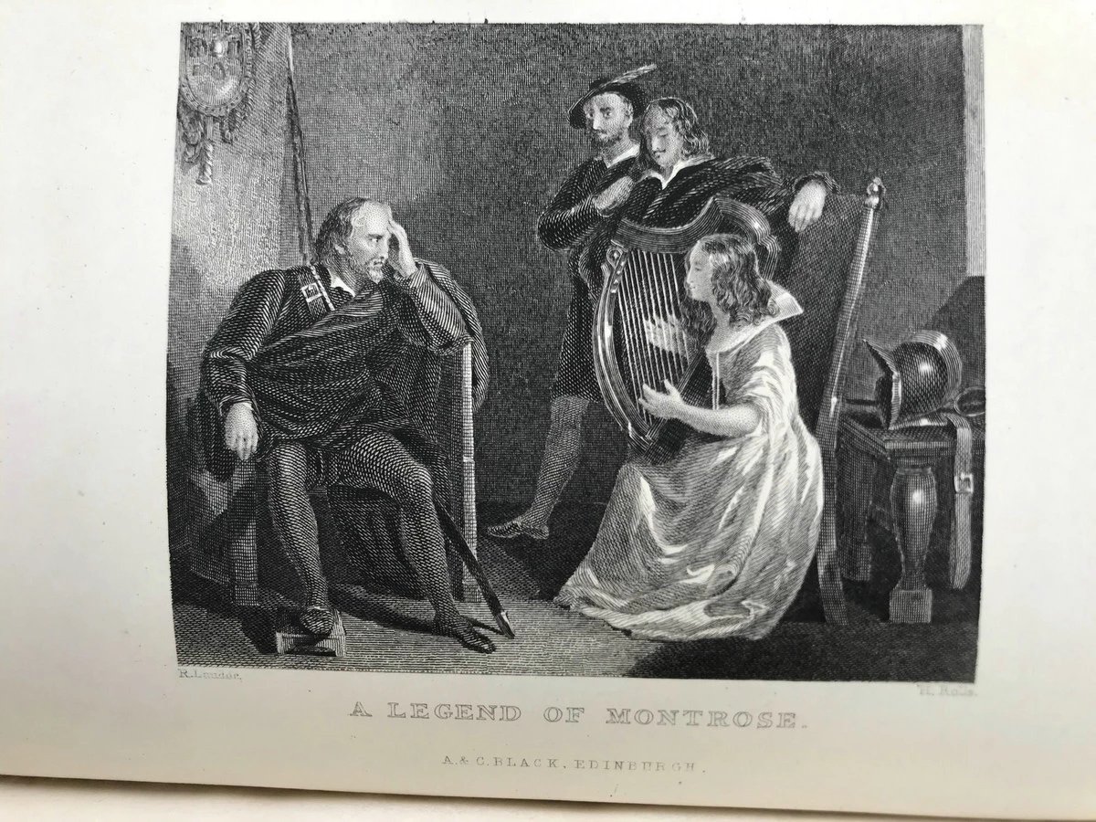 1871年 司各特《蒙特罗斯传奇》 约6幅版画插图 真皮精装32开