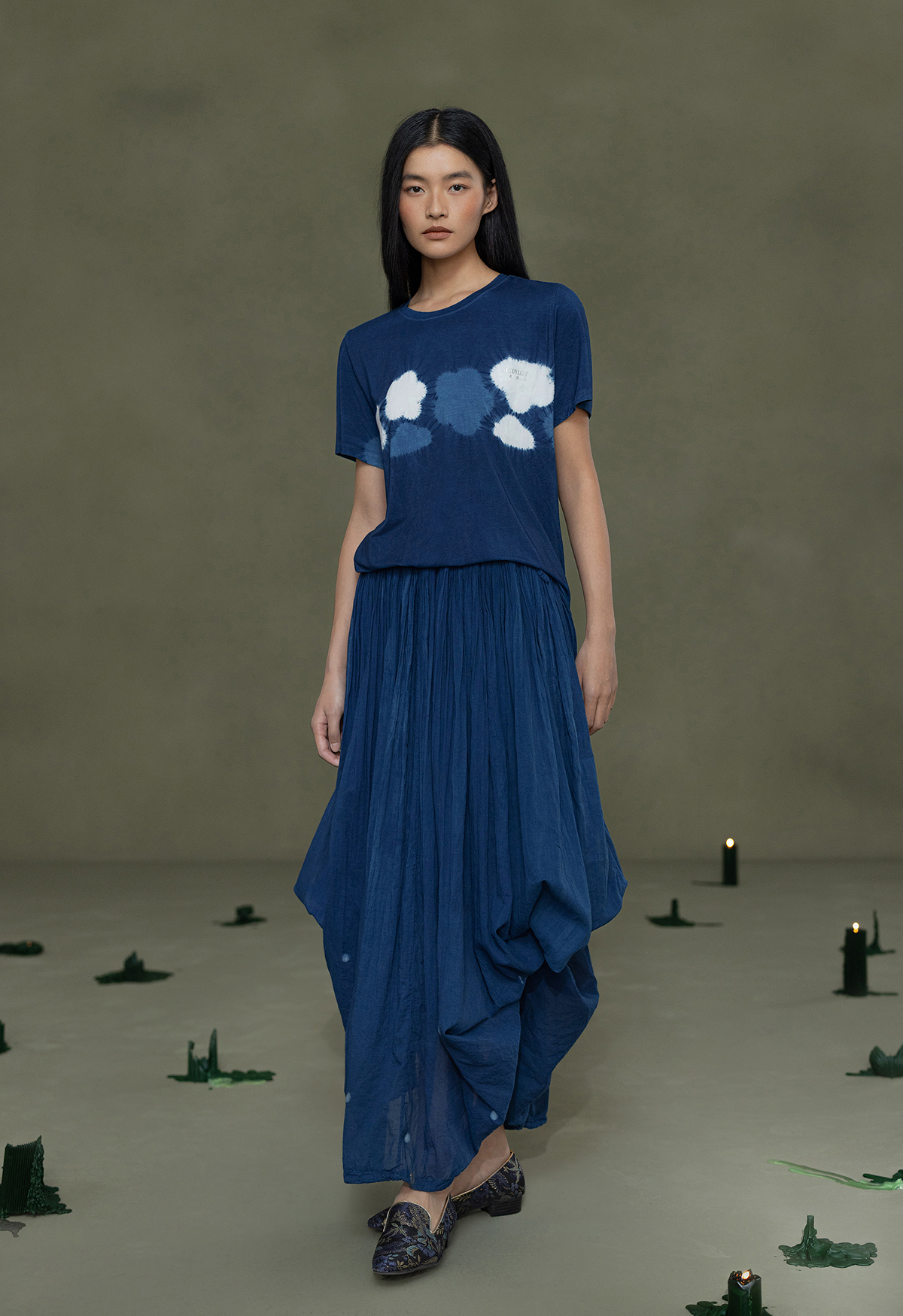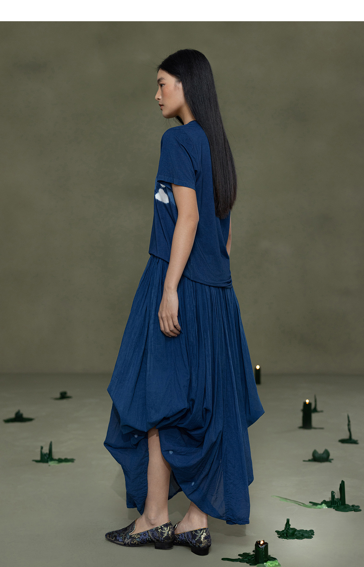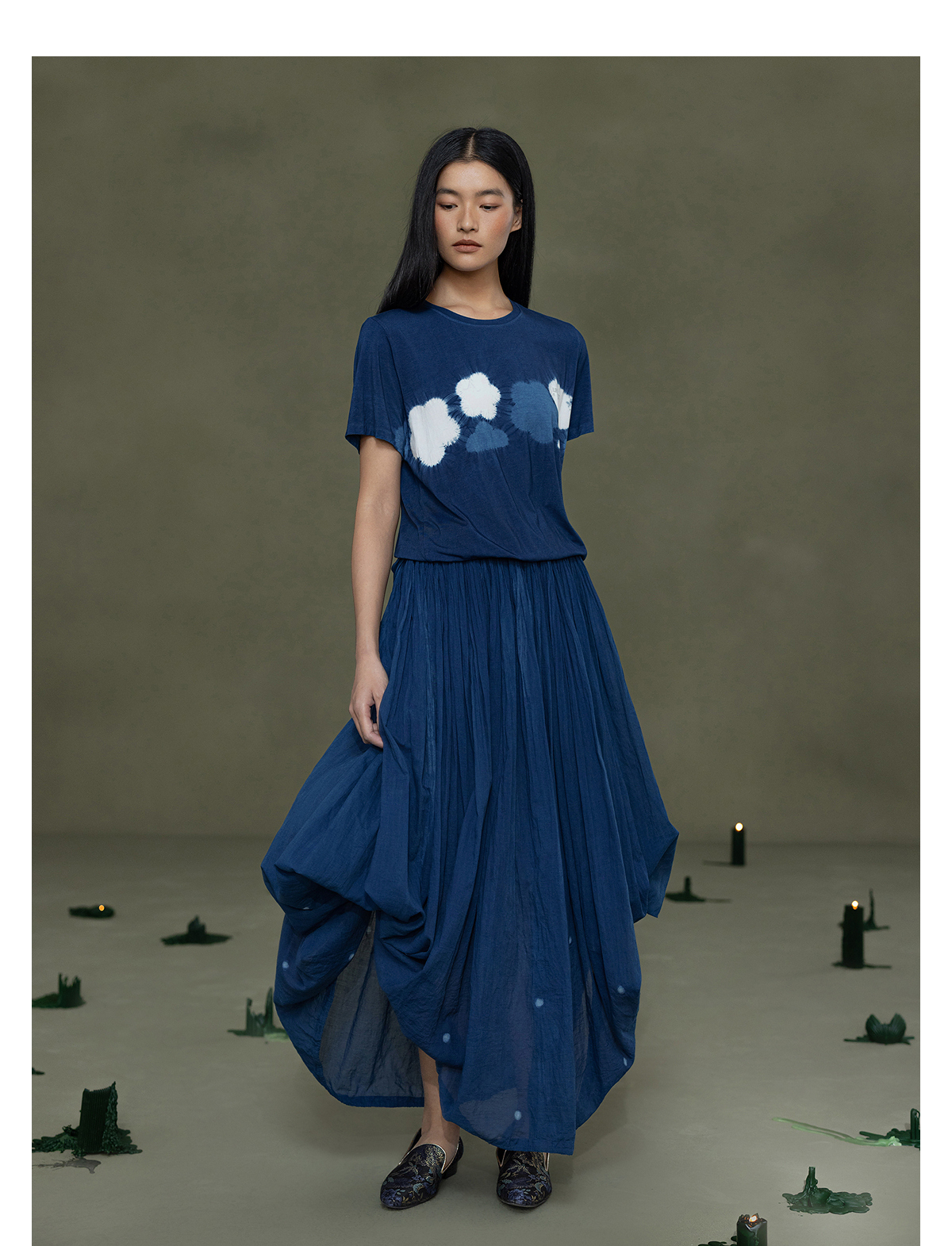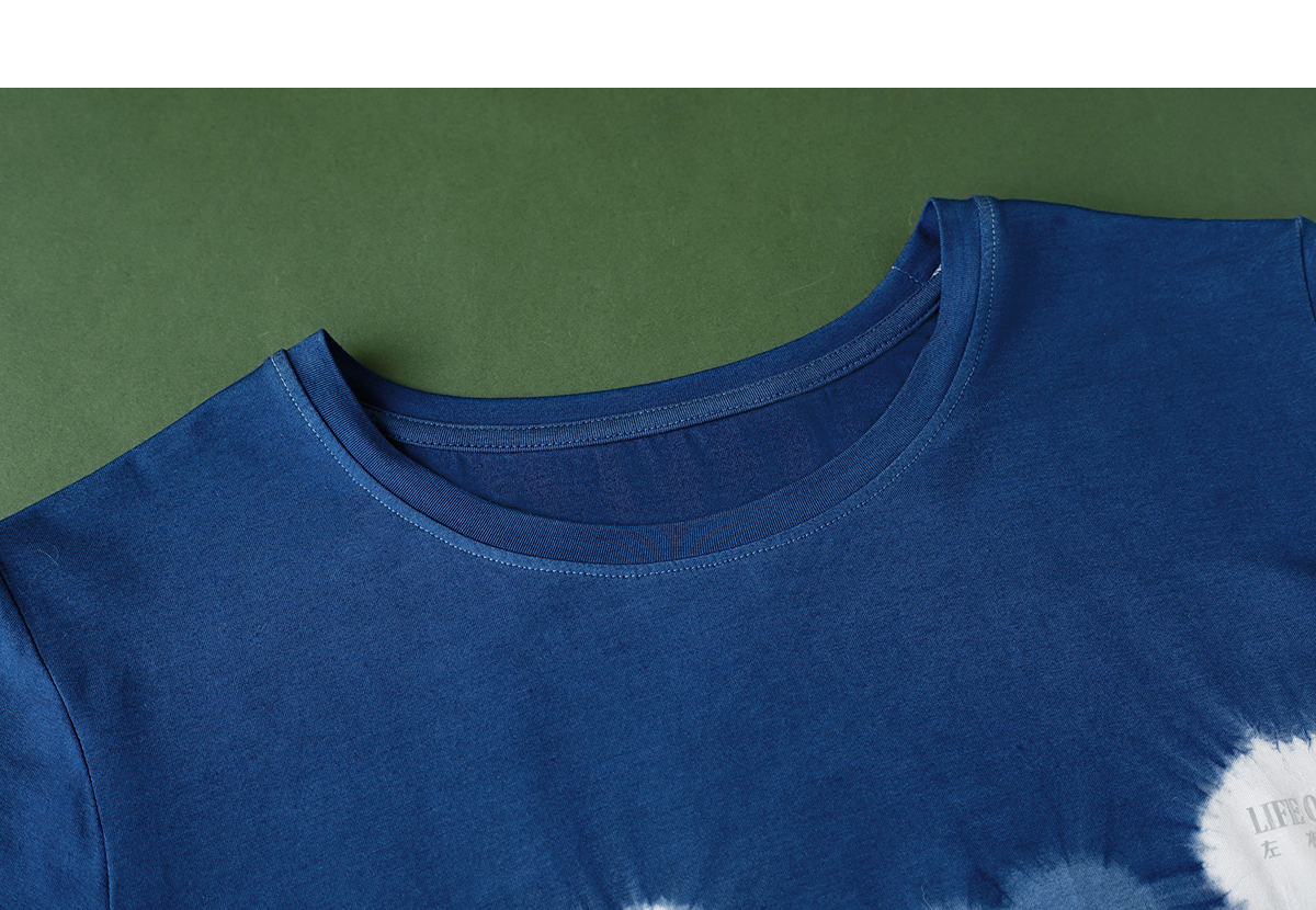【林栖设计小店】植物染色|手工植物蓝优雅百搭气质2026春新款宽松T恤1961168