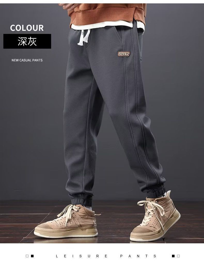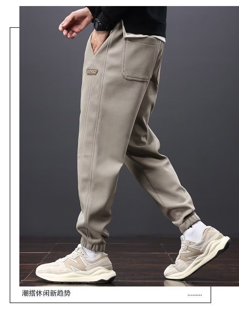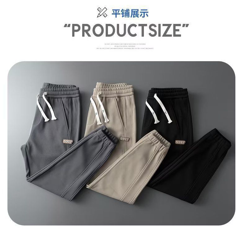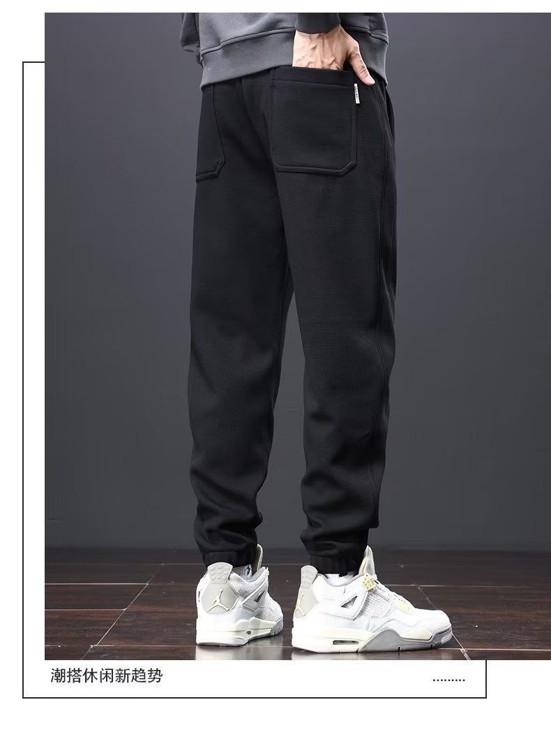 秋款上新!【日系设计,束脚宽松运动!】男士裤子秋冬款 日系束脚宽松运动抽绳卫裤 加绒加厚保暖休闲长裤子-QB