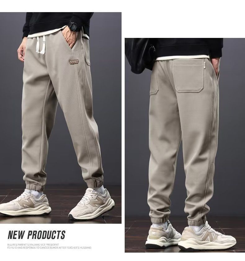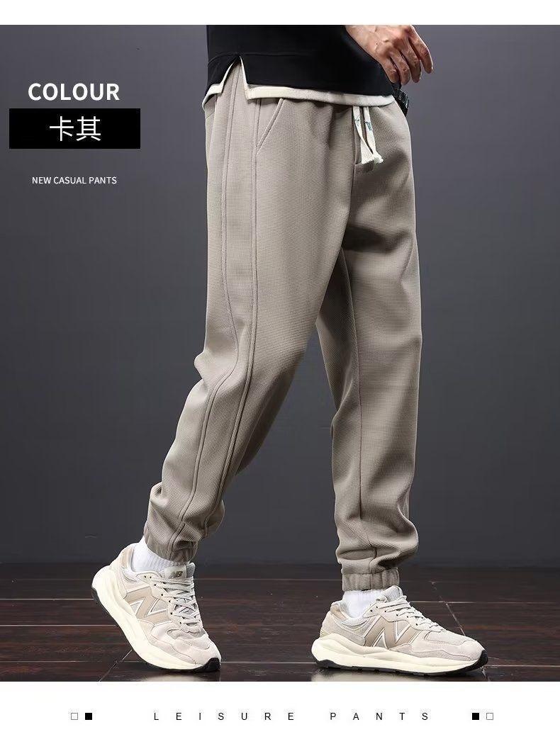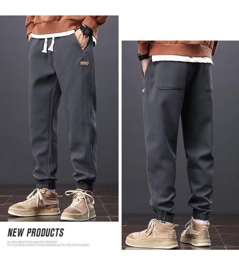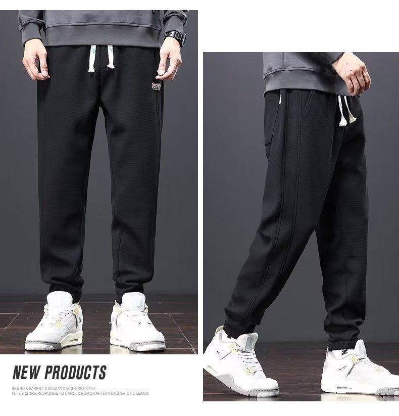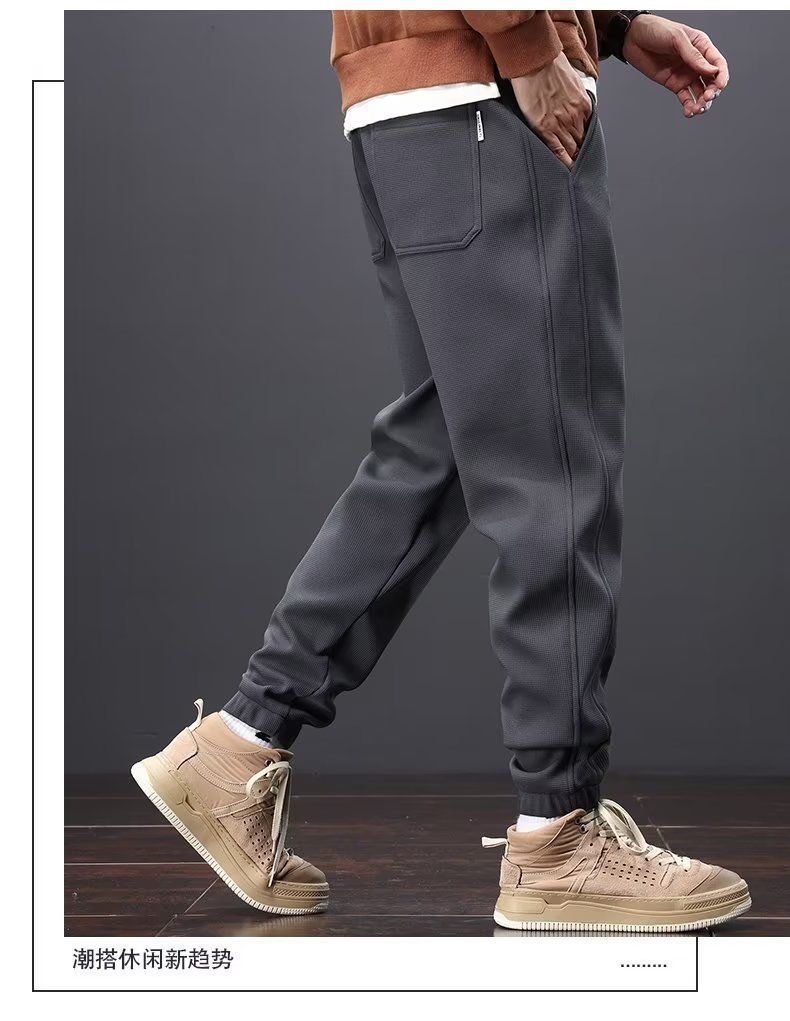 秋款上新!【日系设计,束脚宽松运动!】男士裤子秋冬款 日系束脚宽松运动抽绳卫裤 加绒加厚保暖休闲长裤子-QB