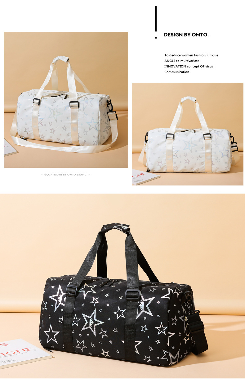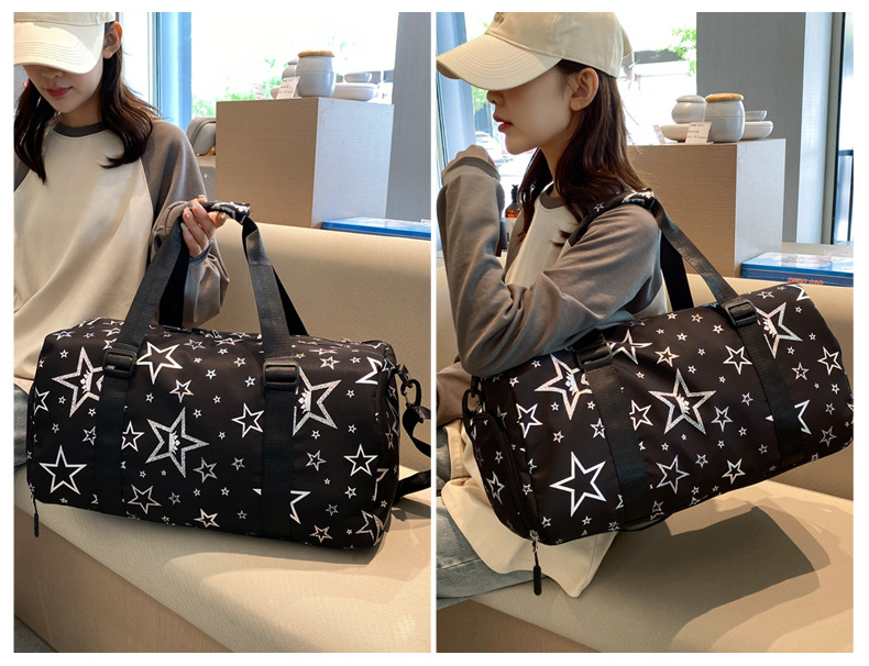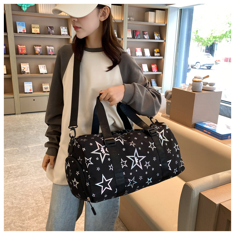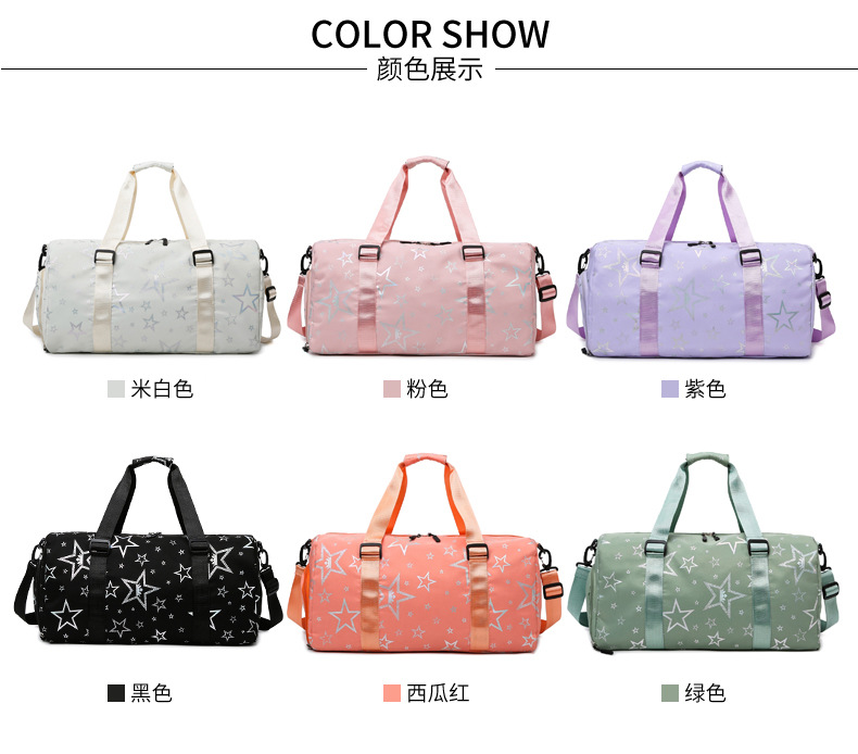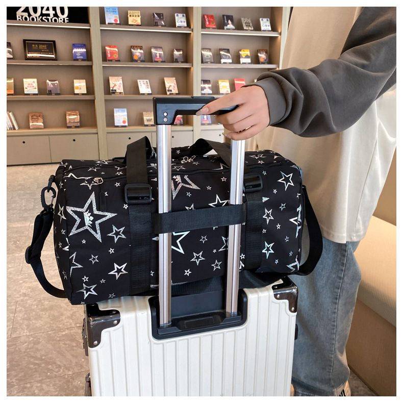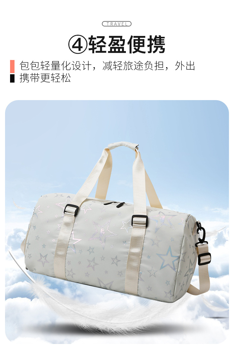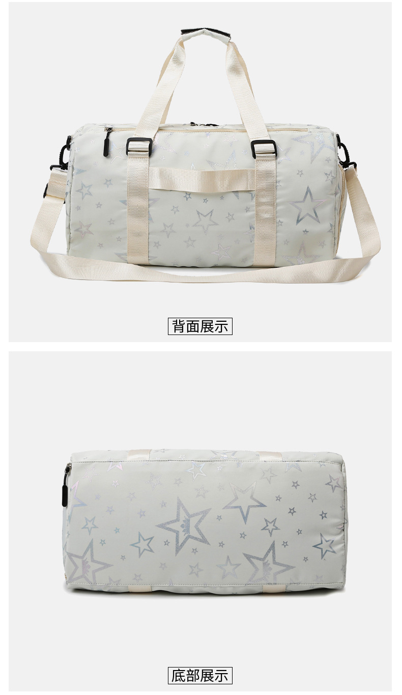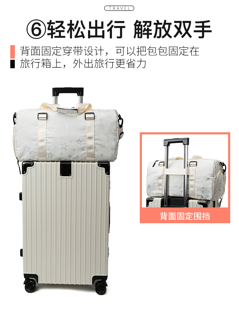 【时尚潮搭,超能装,干湿分离!】单肩手提斜挎多种背法 大容量手提旅行包 可插拉杆箱 时尚五角星短途行李包 多功能干湿分离健身包-QB