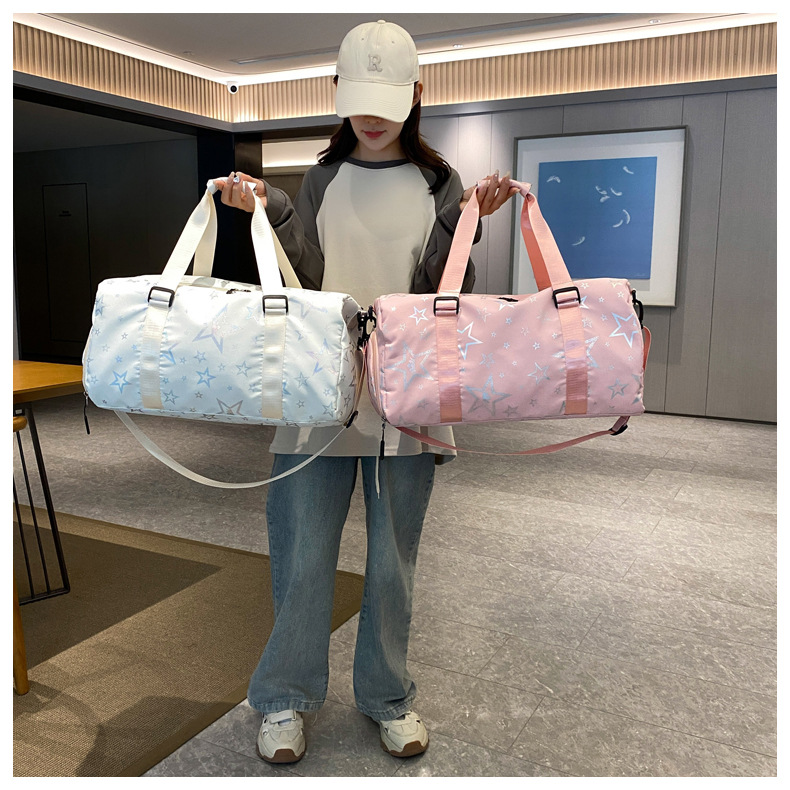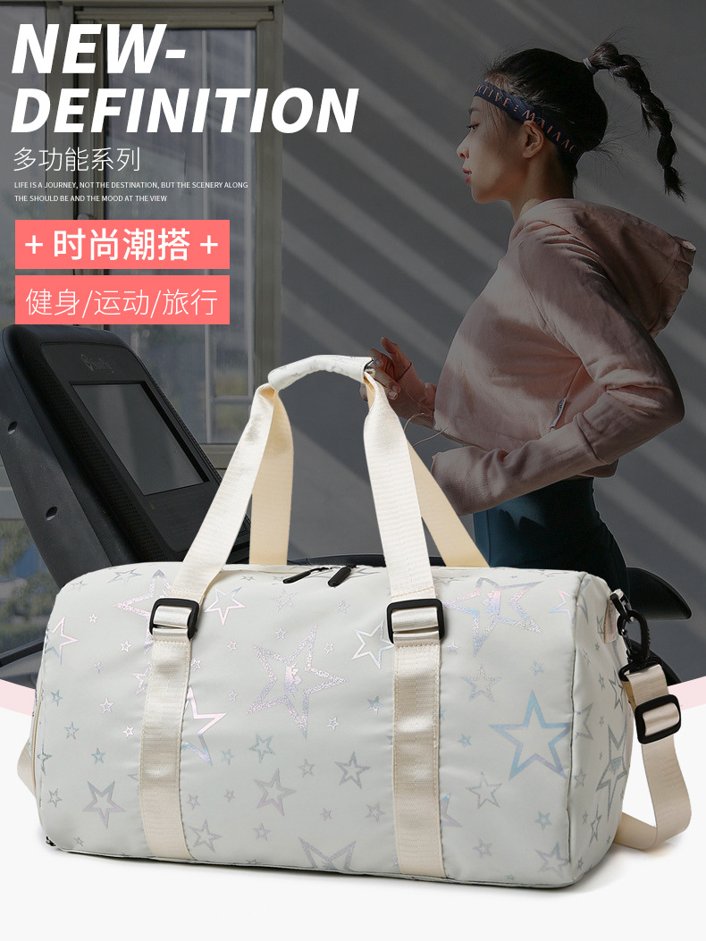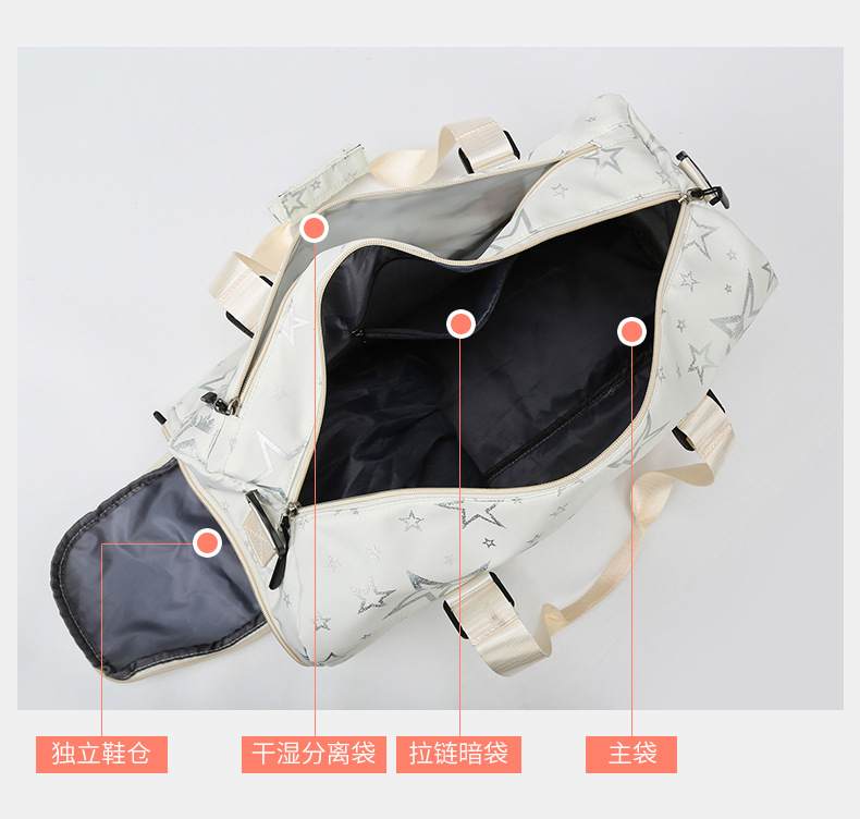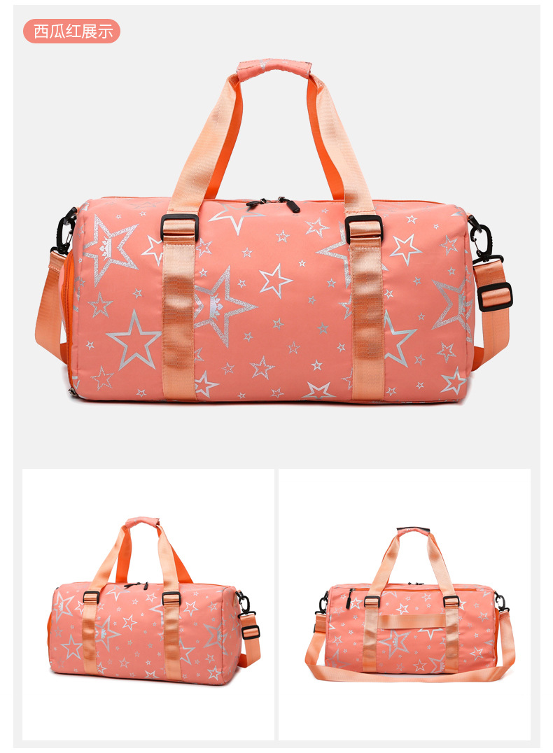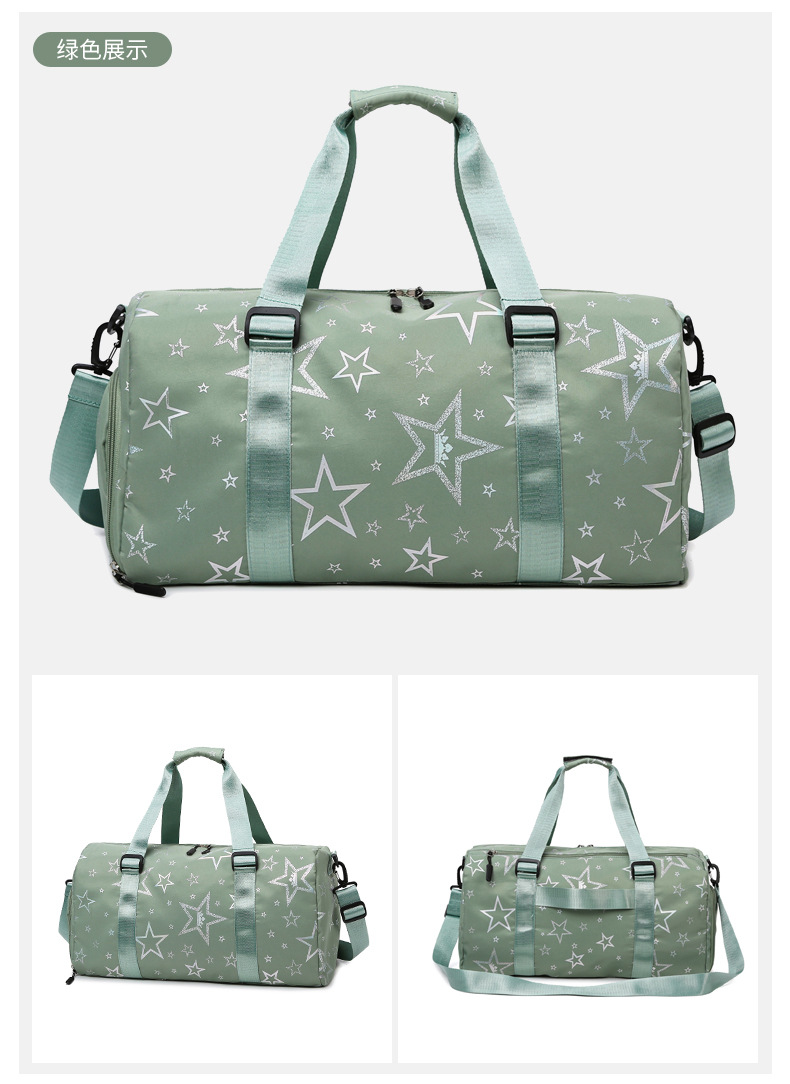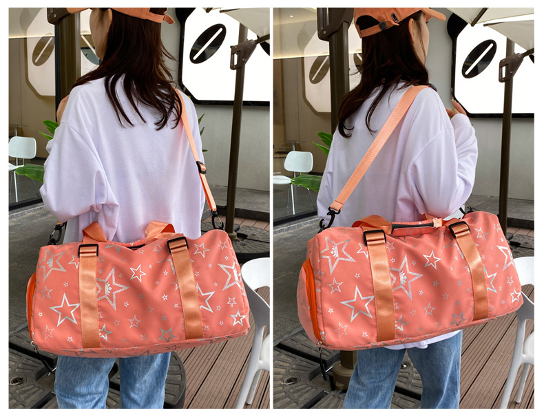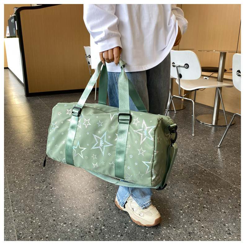 【时尚潮搭,超能装,干湿分离!】单肩手提斜挎多种背法 大容量手提旅行包 可插拉杆箱 时尚五角星短途行李包 多功能干湿分离健身包-QB