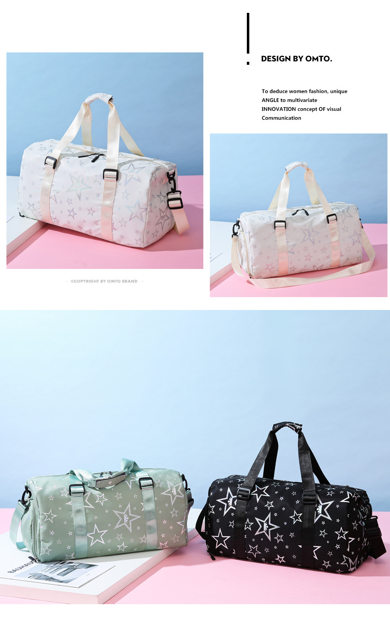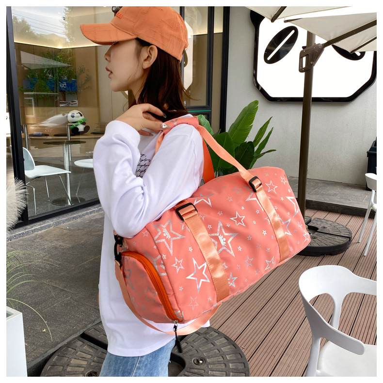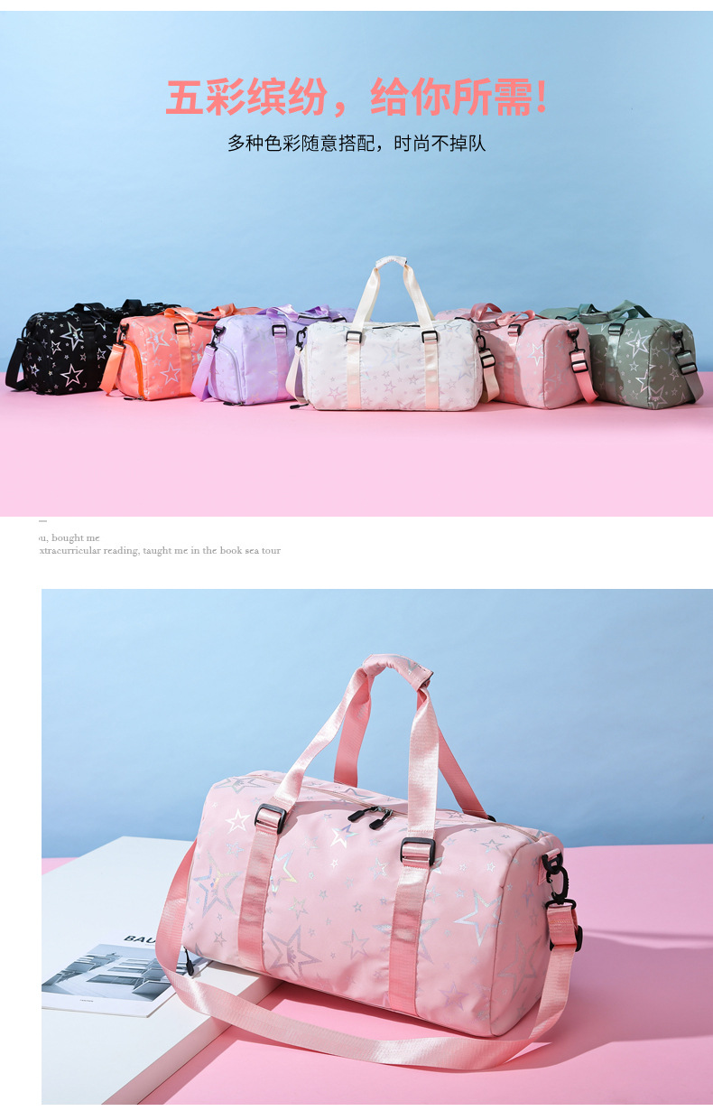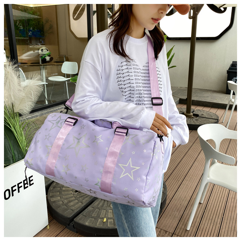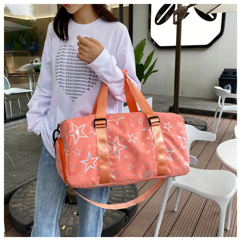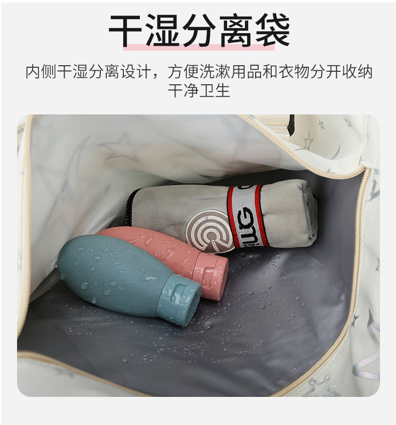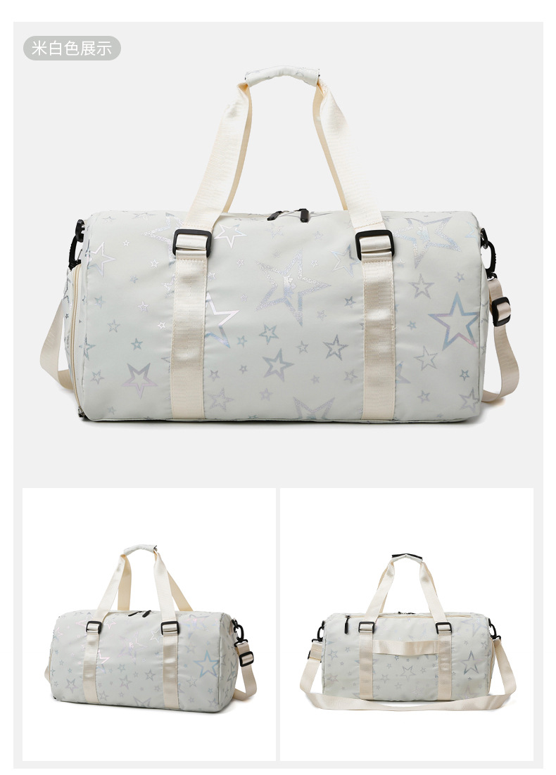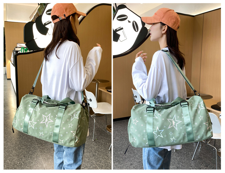 【时尚潮搭,超能装,干湿分离!】单肩手提斜挎多种背法 大容量手提旅行包 可插拉杆箱 时尚五角星短途行李包 多功能干湿分离健身包-QB