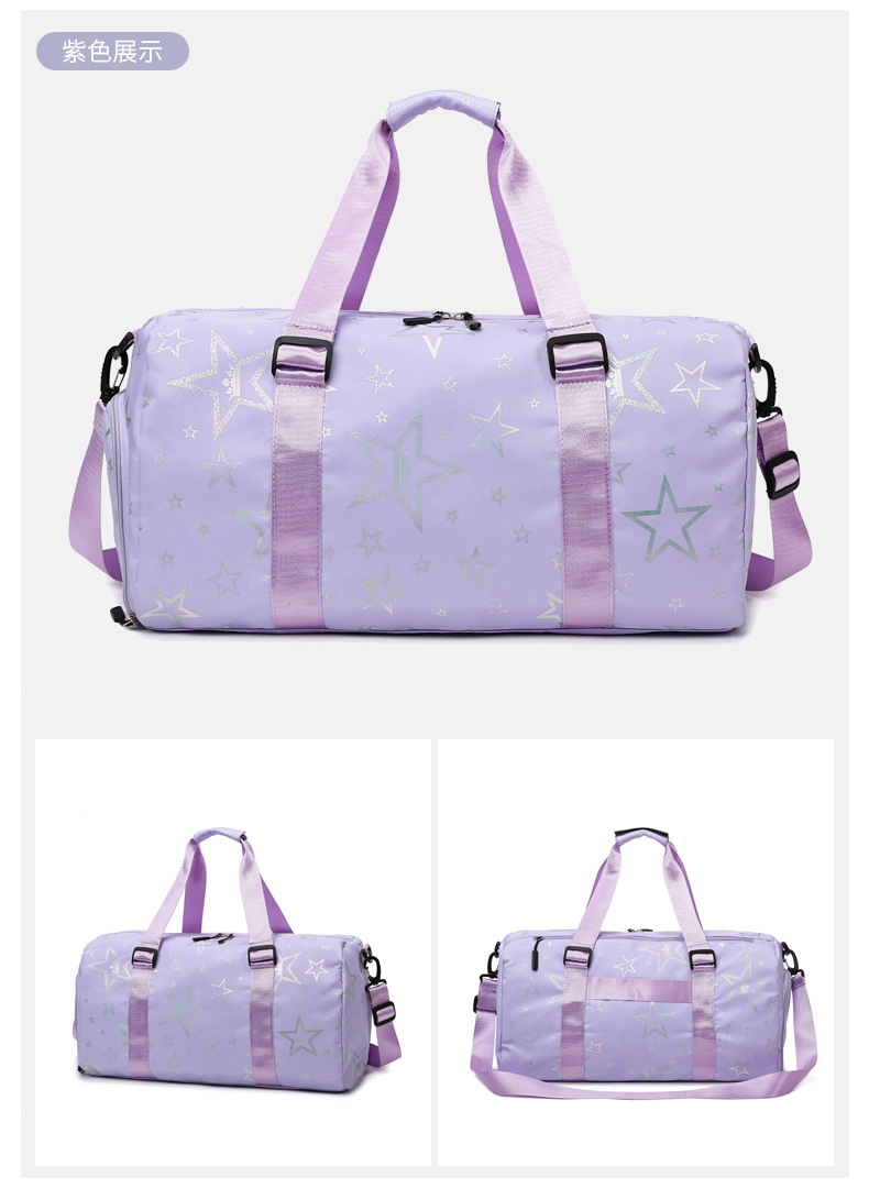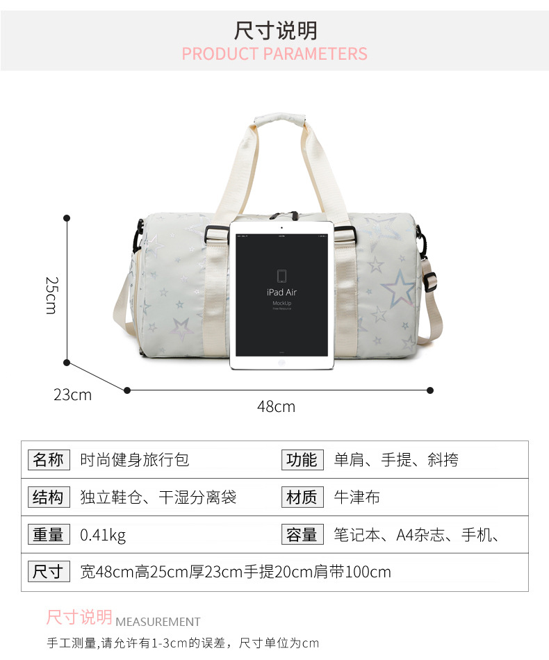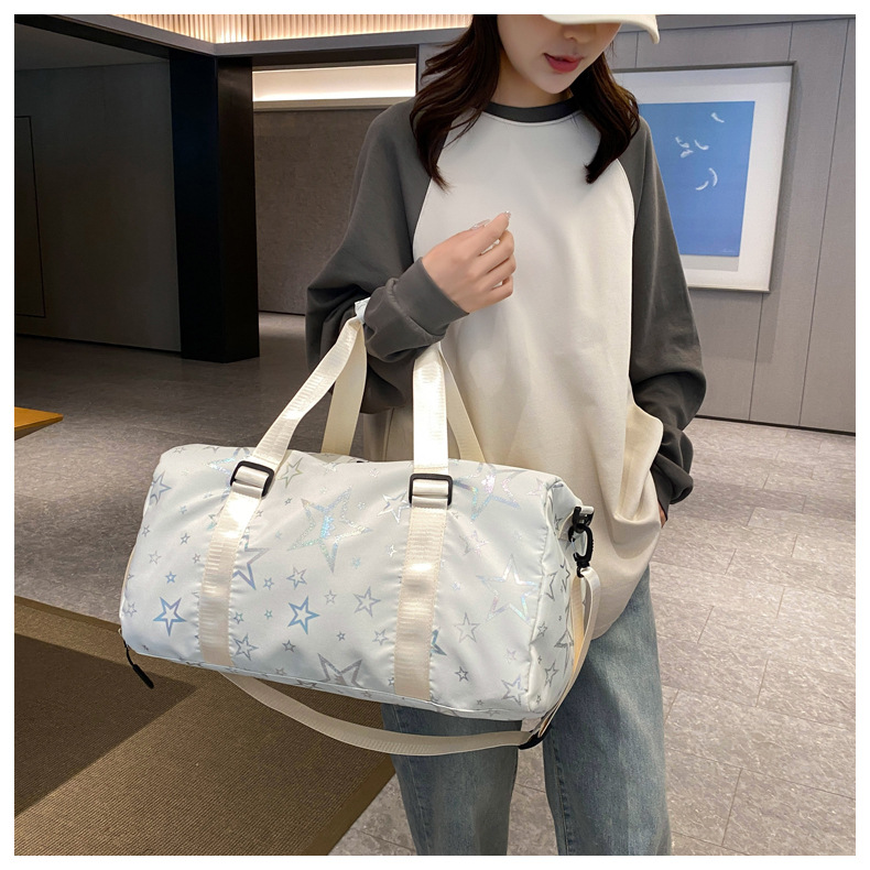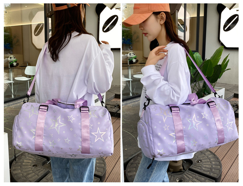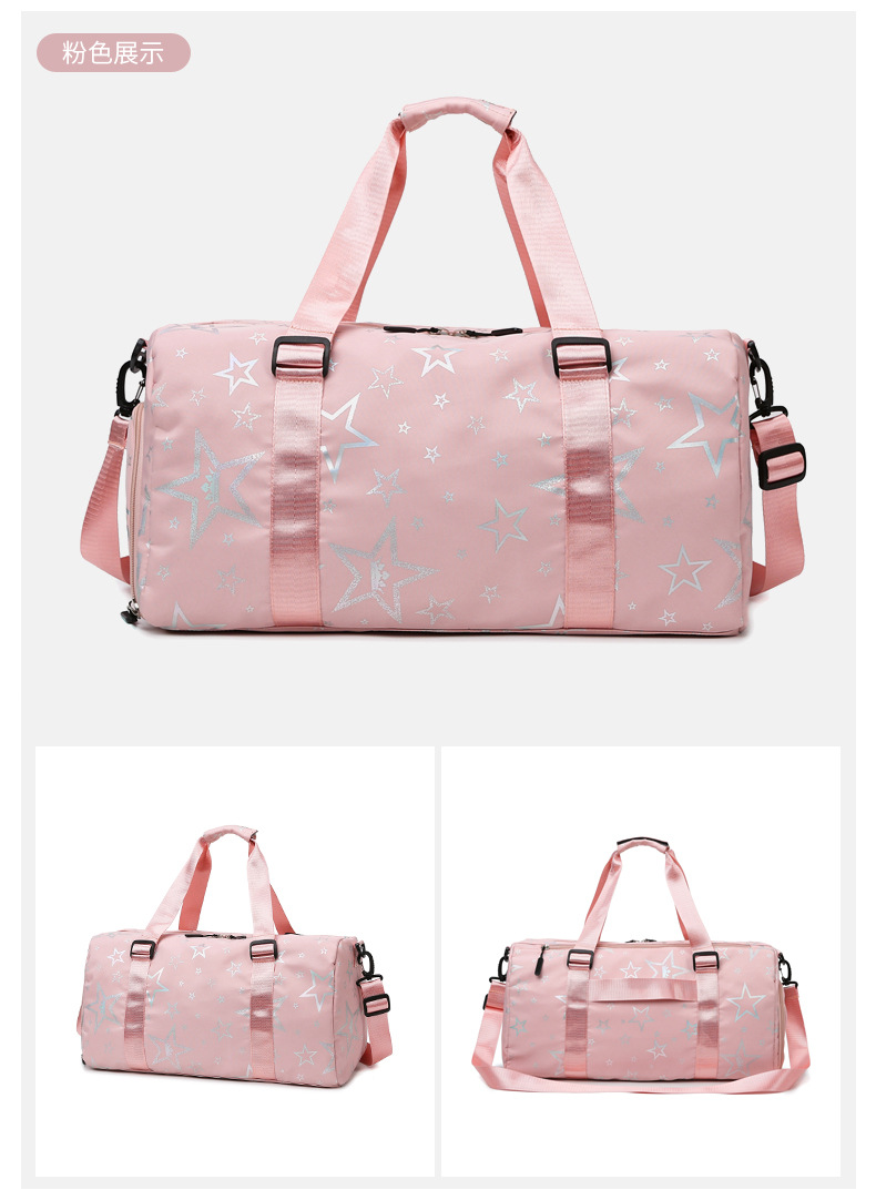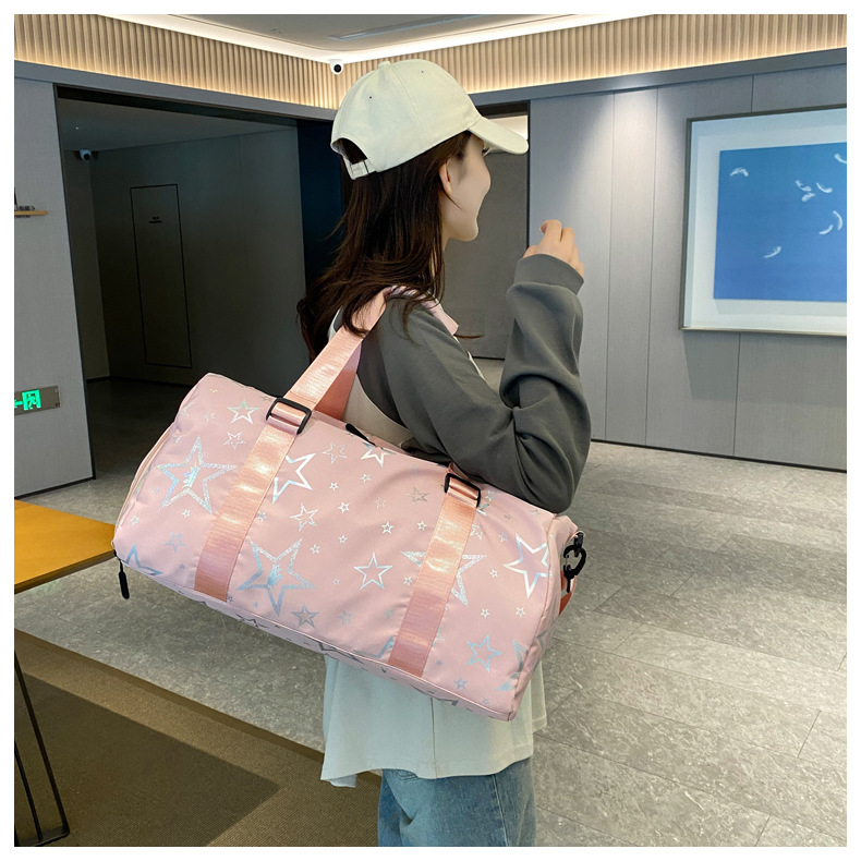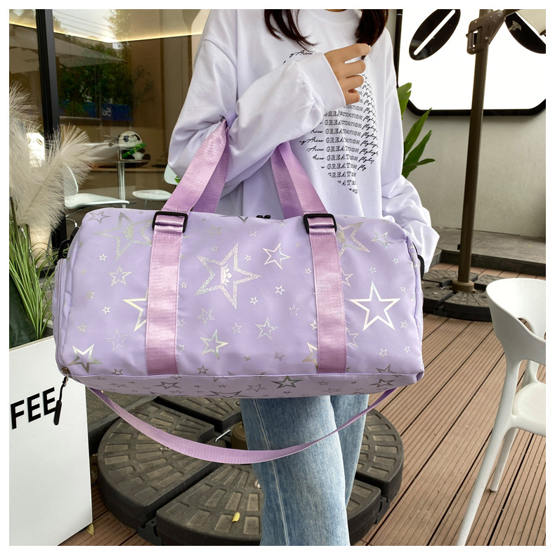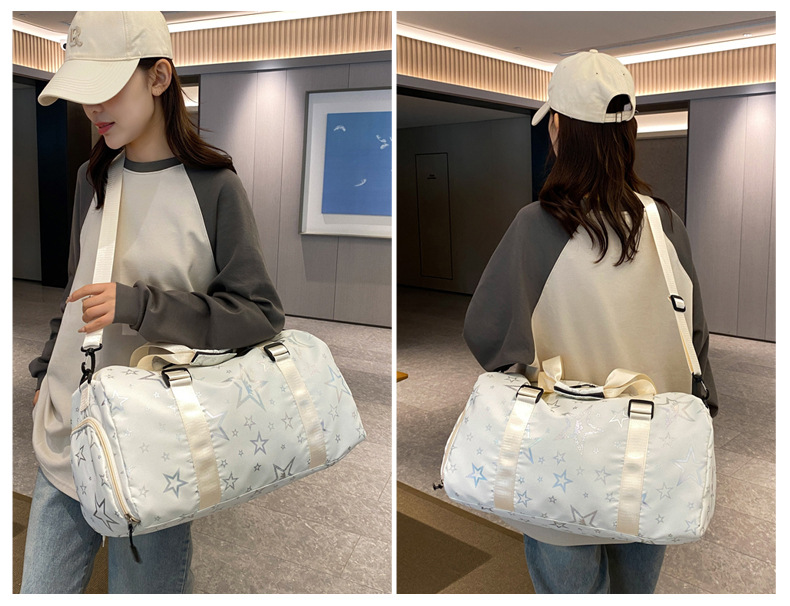 【时尚潮搭,超能装,干湿分离!】单肩手提斜挎多种背法 大容量手提旅行包 可插拉杆箱 时尚五角星短途行李包 多功能干湿分离健身包-QB