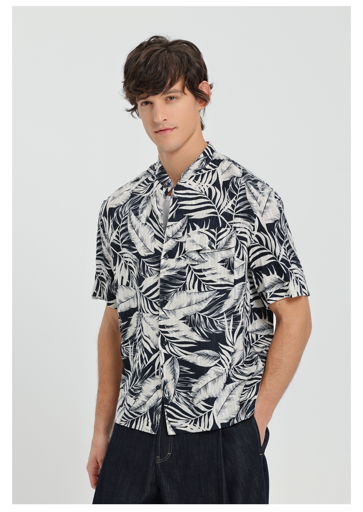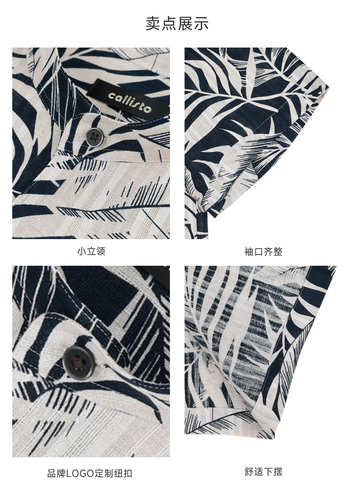 callisto光影花卉天然雨露麻小立领衬衫