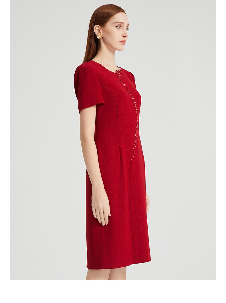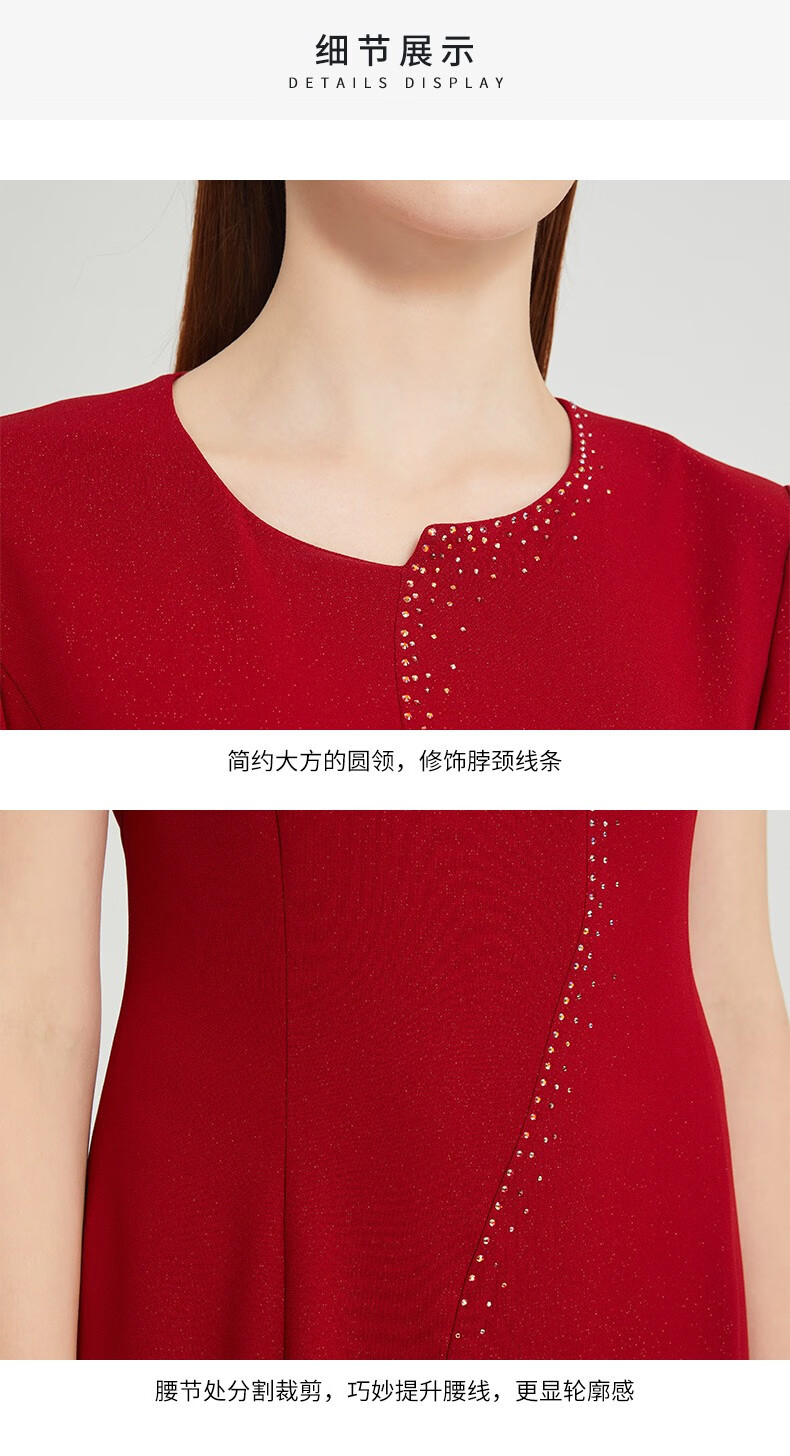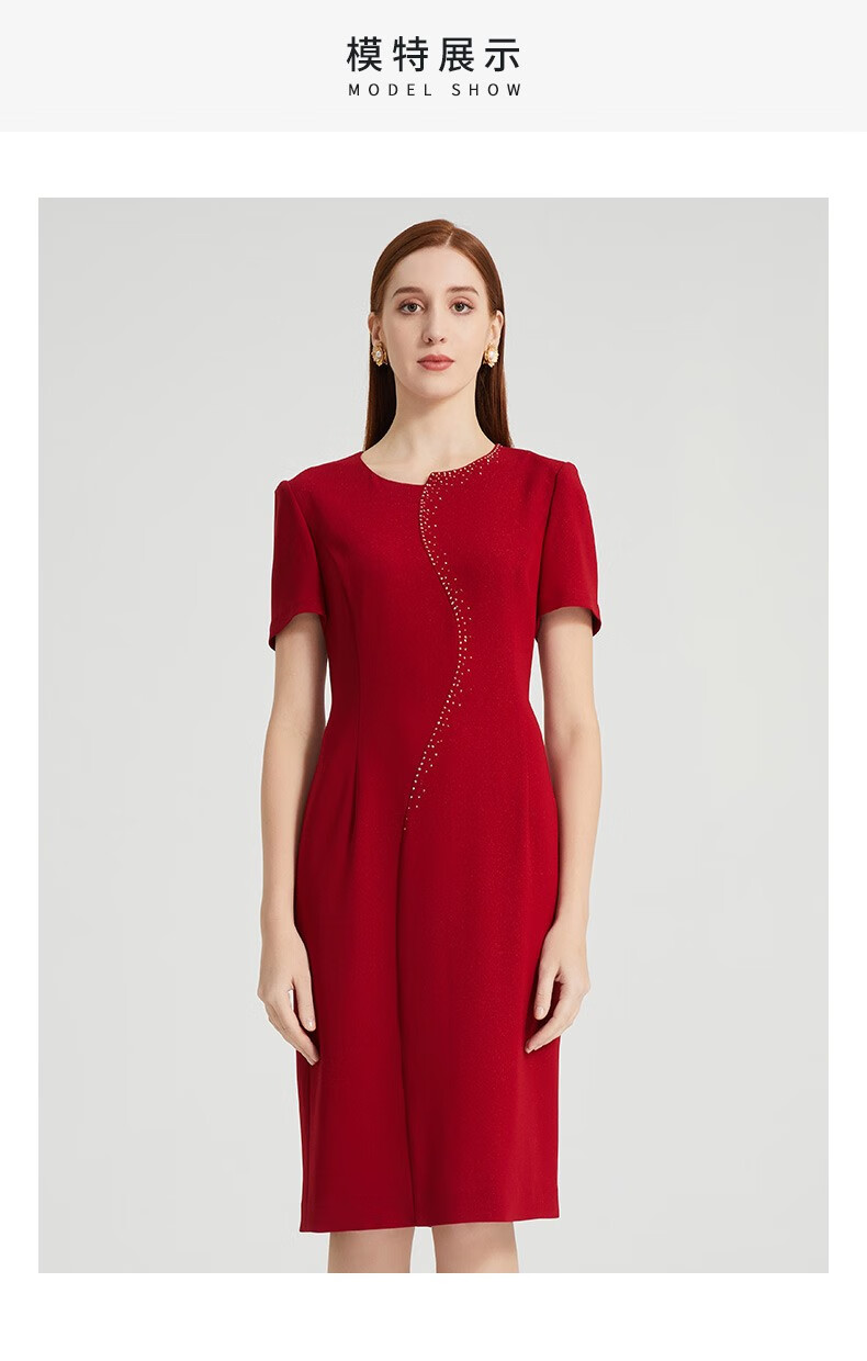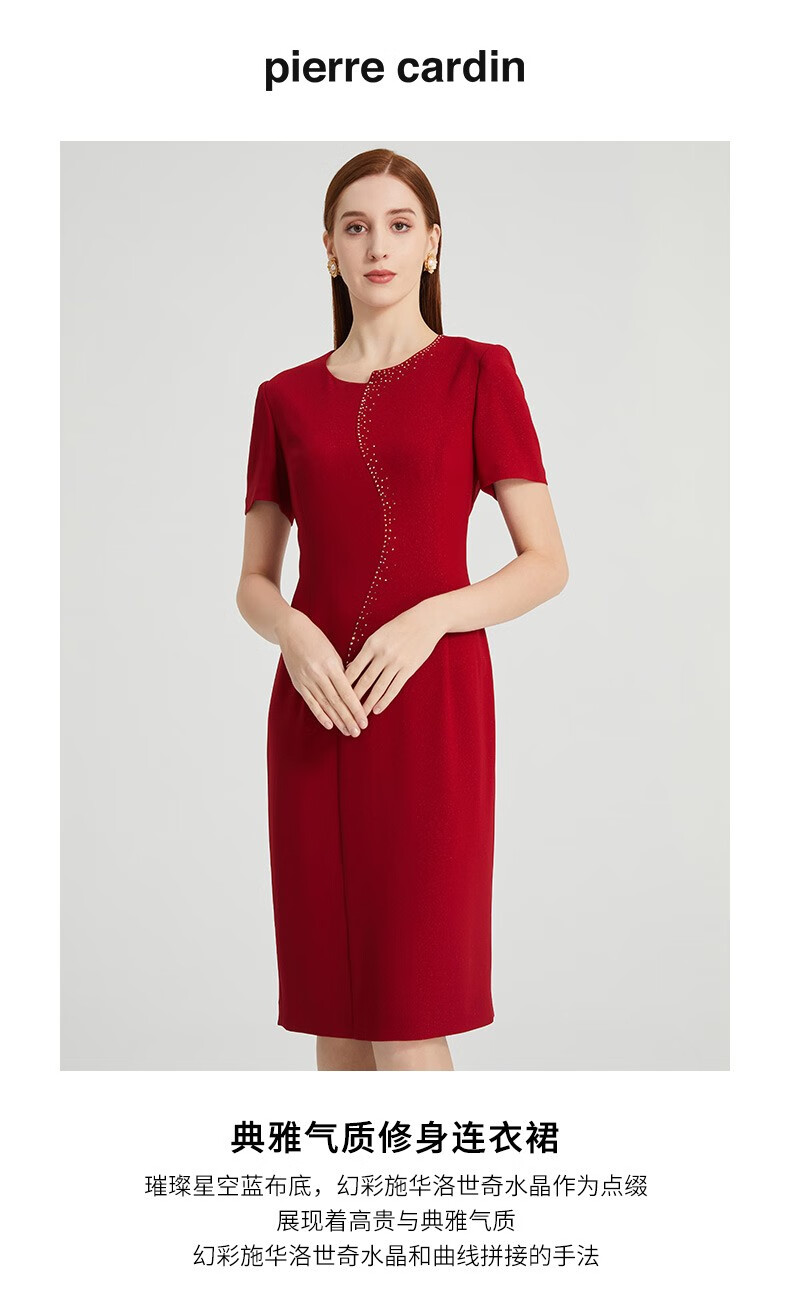 皮尔卡丹女装时尚烫钻圆领显瘦通勤简约礼服连衣裙P2221D2095R0