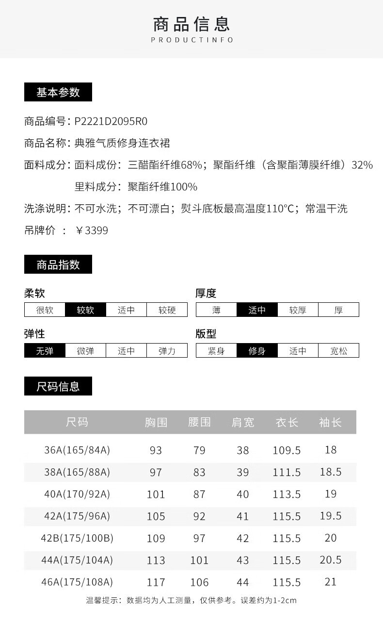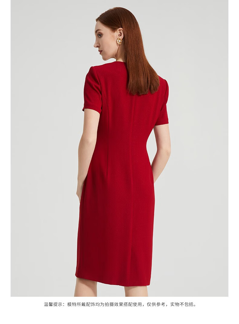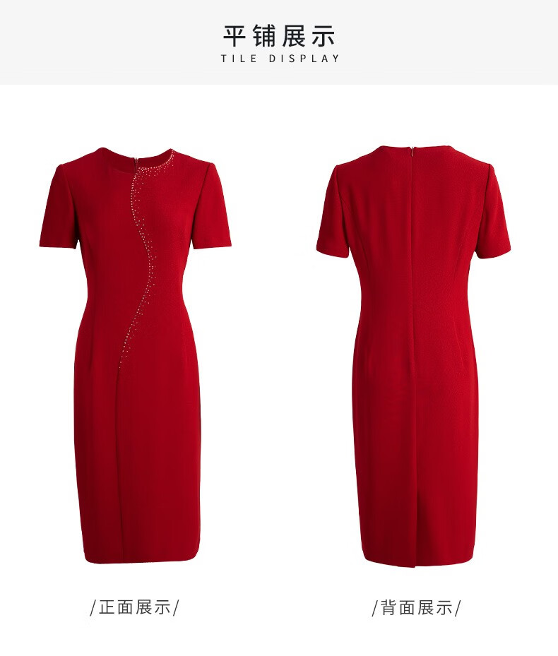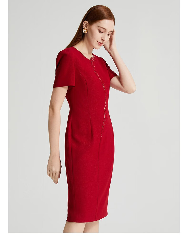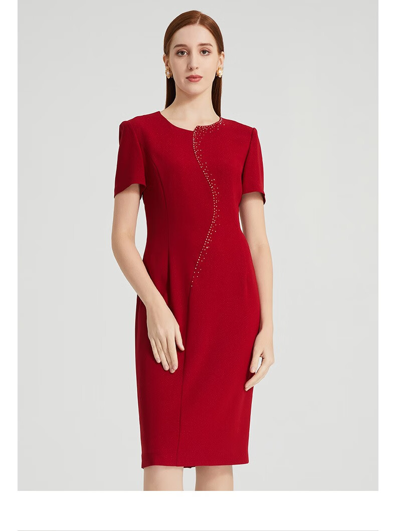皮尔卡丹女装时尚烫钻圆领显瘦通勤简约礼服连衣裙P2221D2095R0