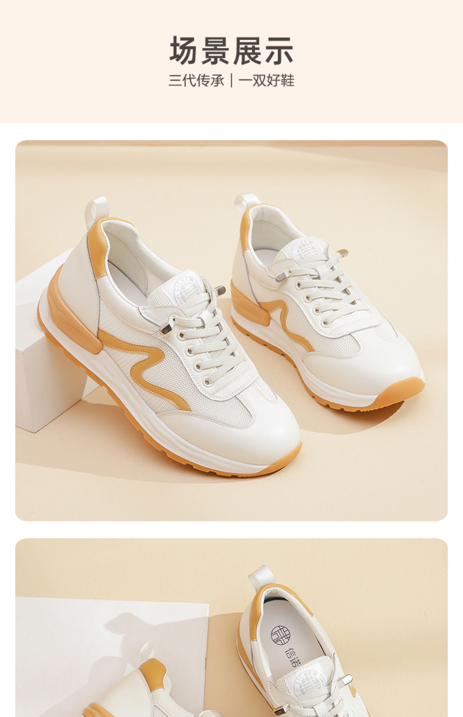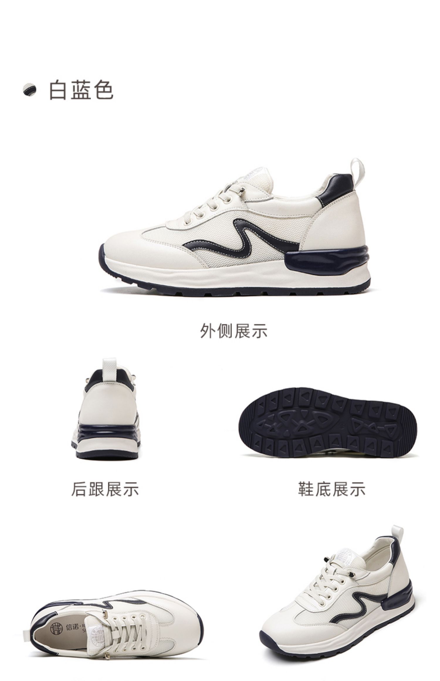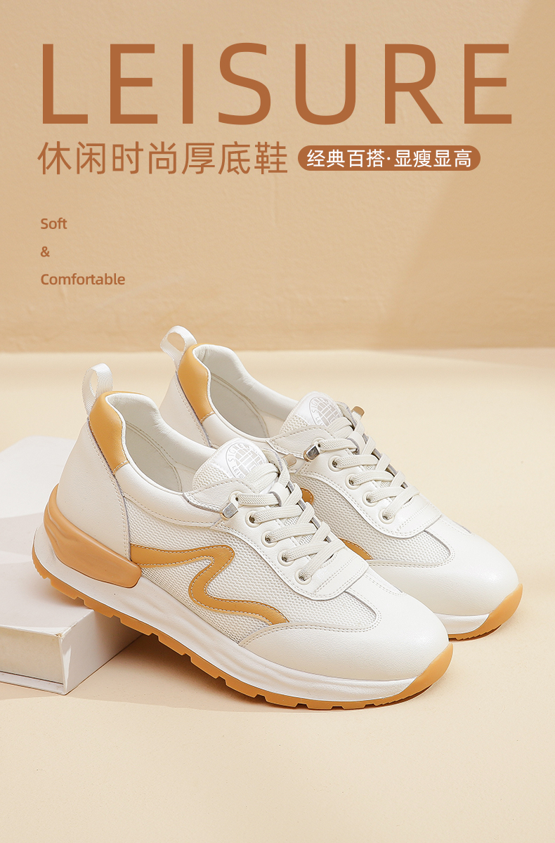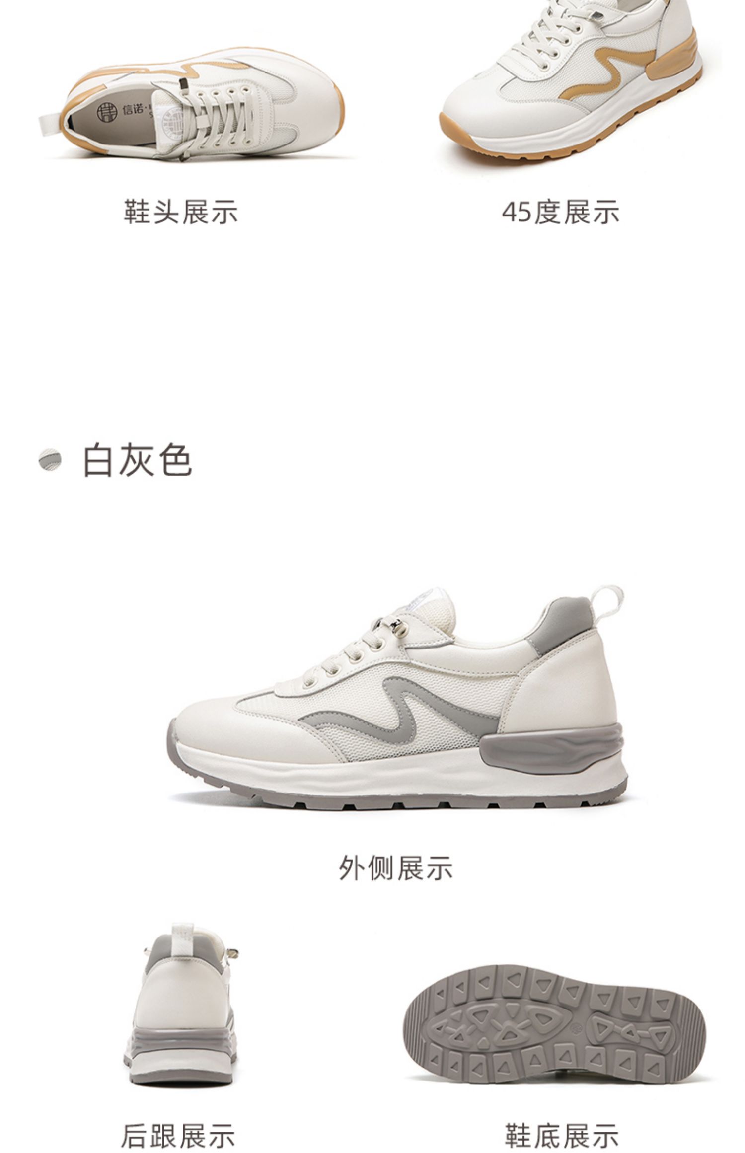 信诺真皮厚底鞋运动休闲鞋2023新款春夏季德训女鞋轻便小白鞋23C5693-7W