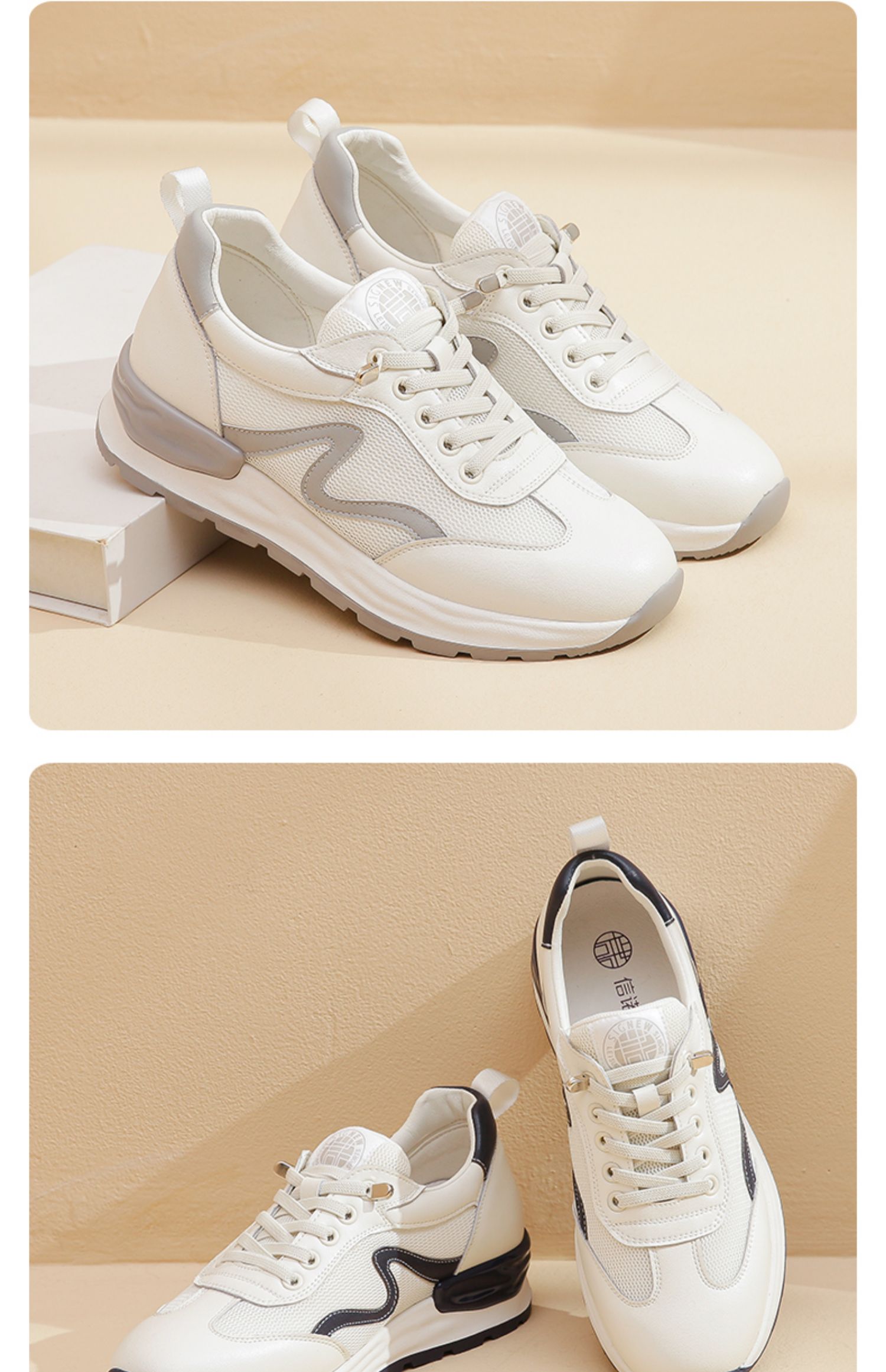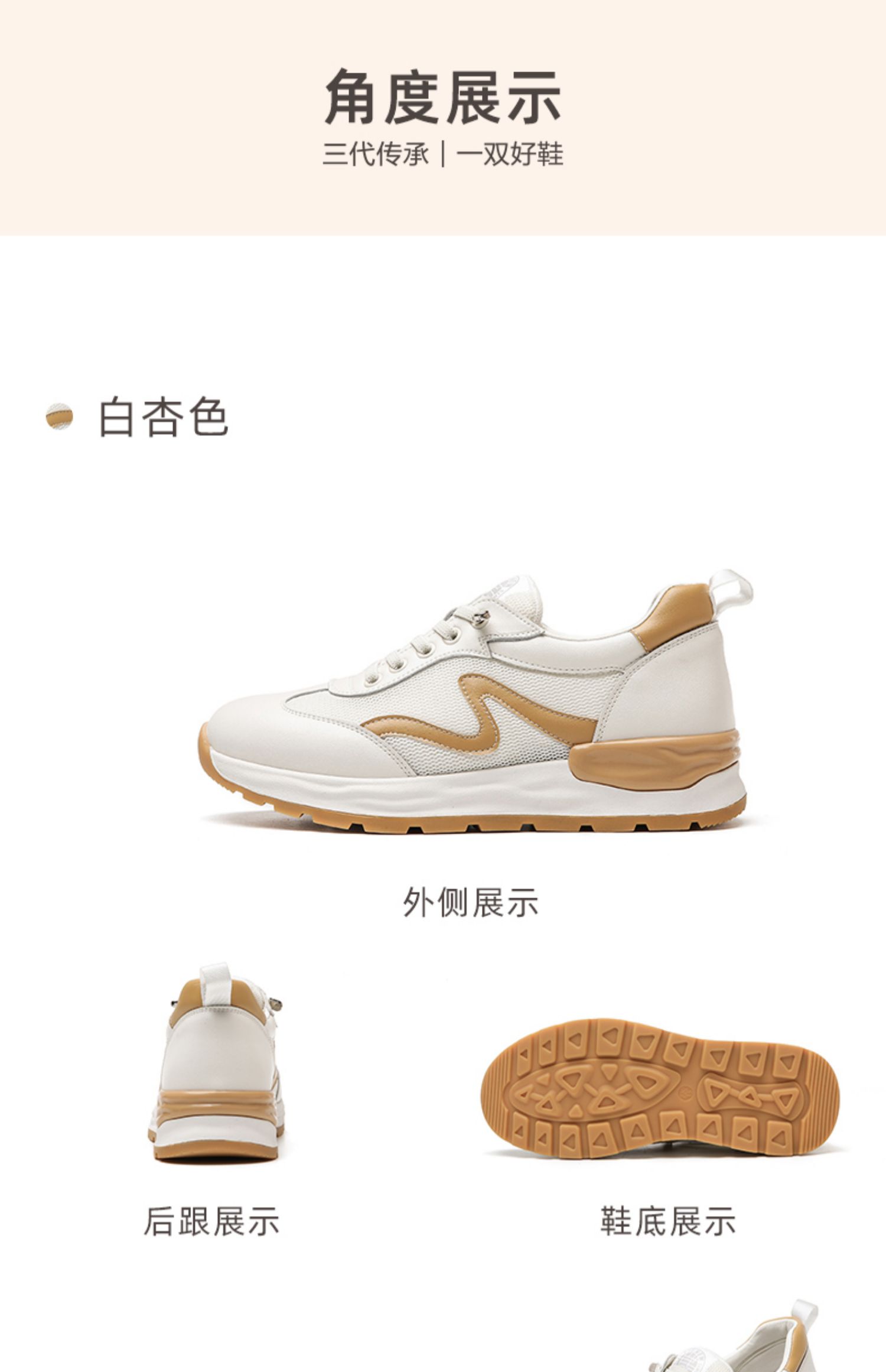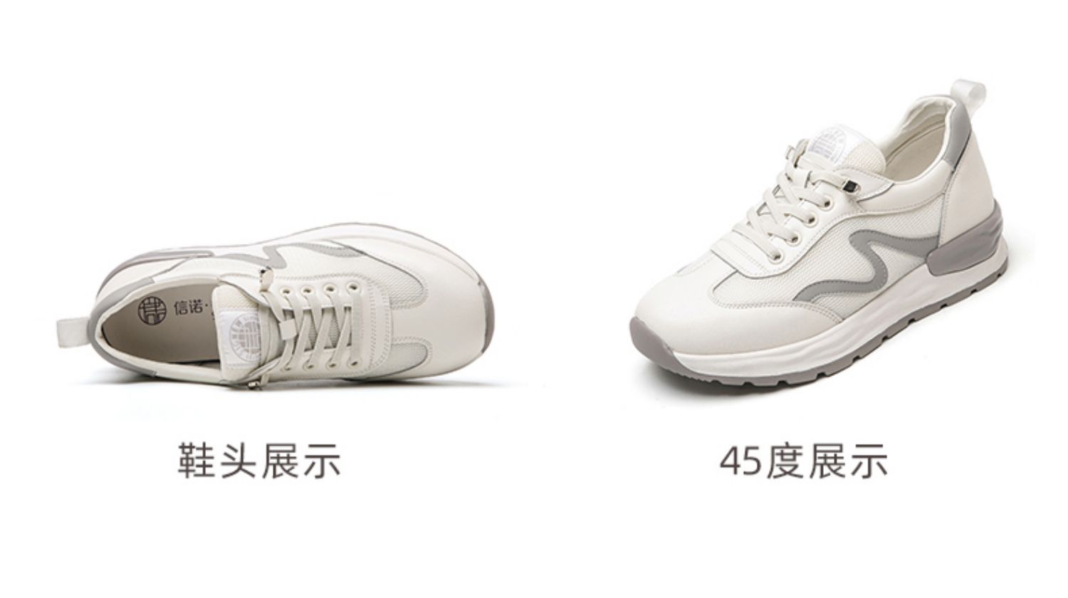 信诺真皮厚底鞋运动休闲鞋2023新款春夏季德训女鞋轻便小白鞋23C5693-7W